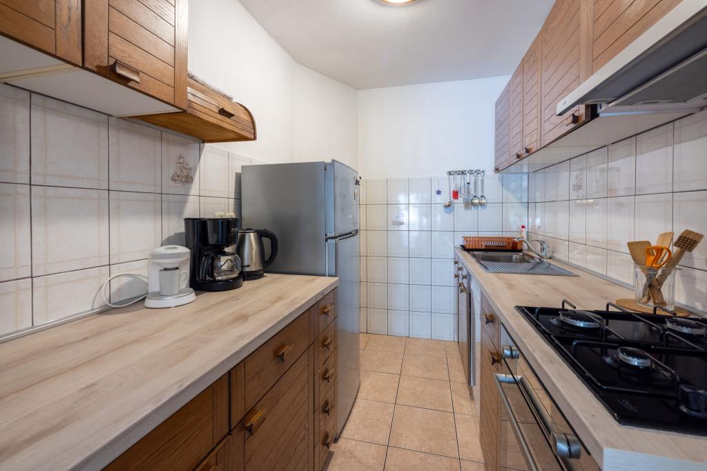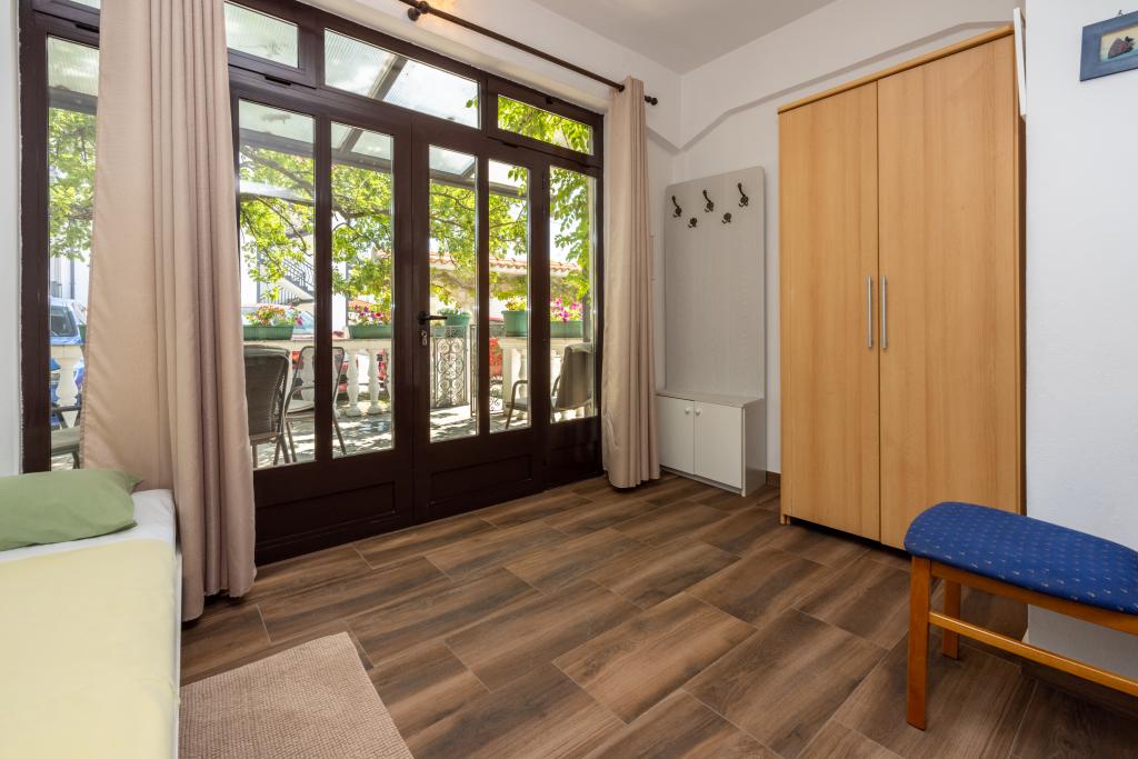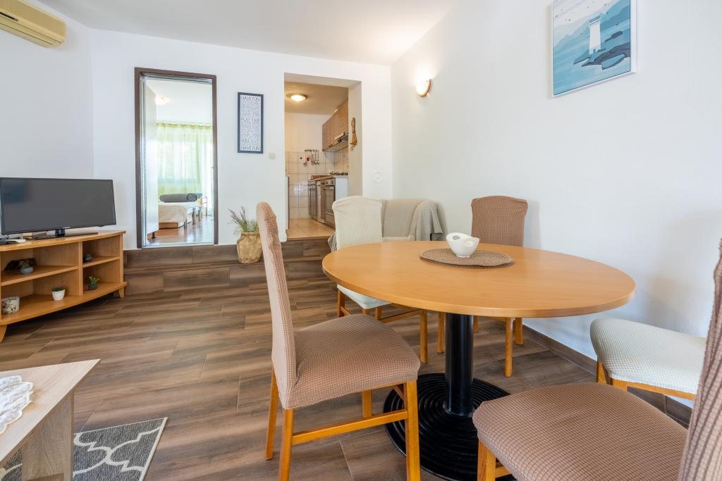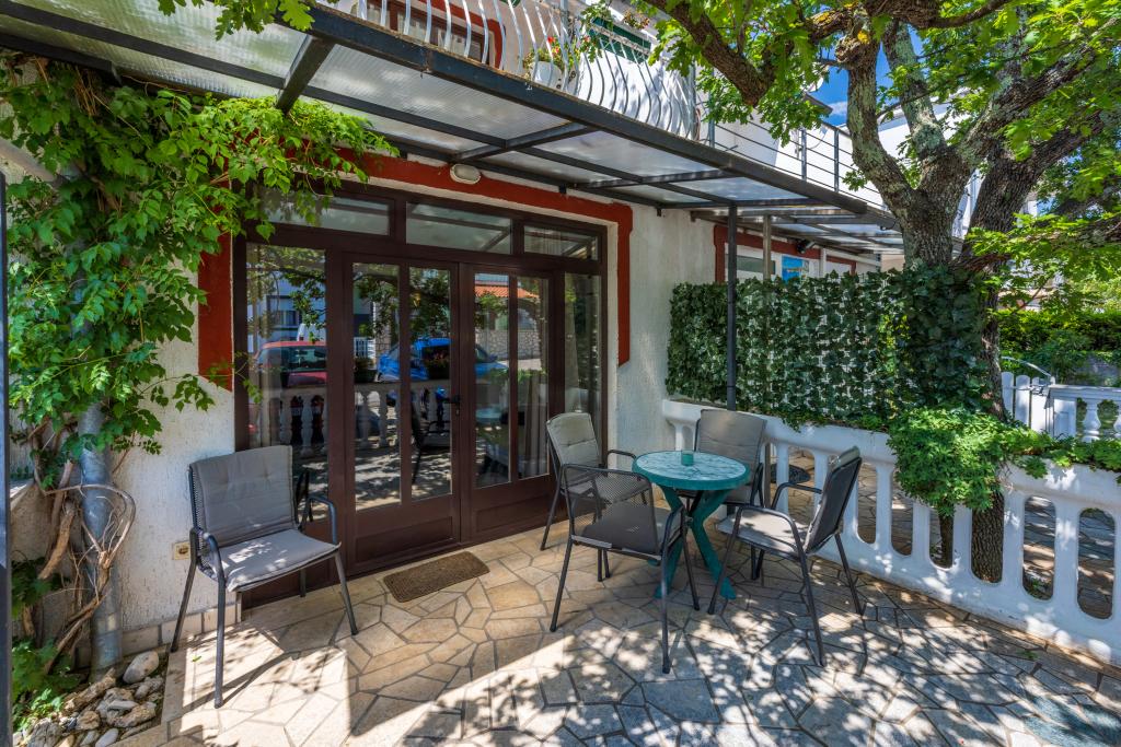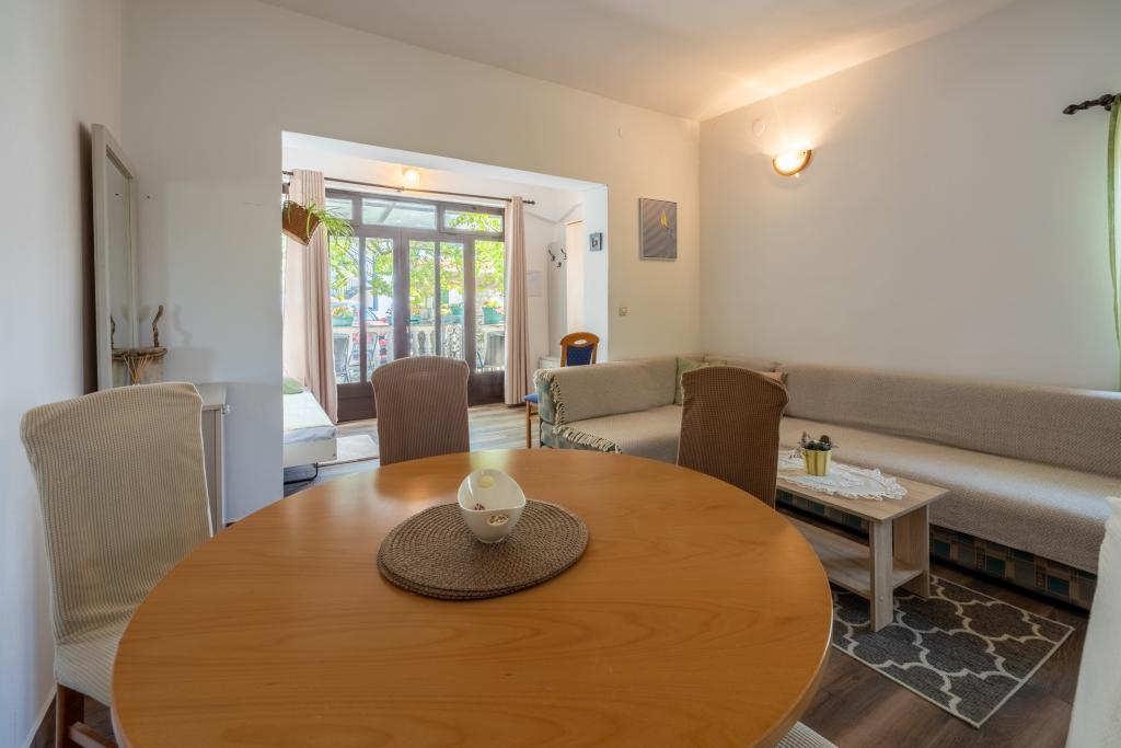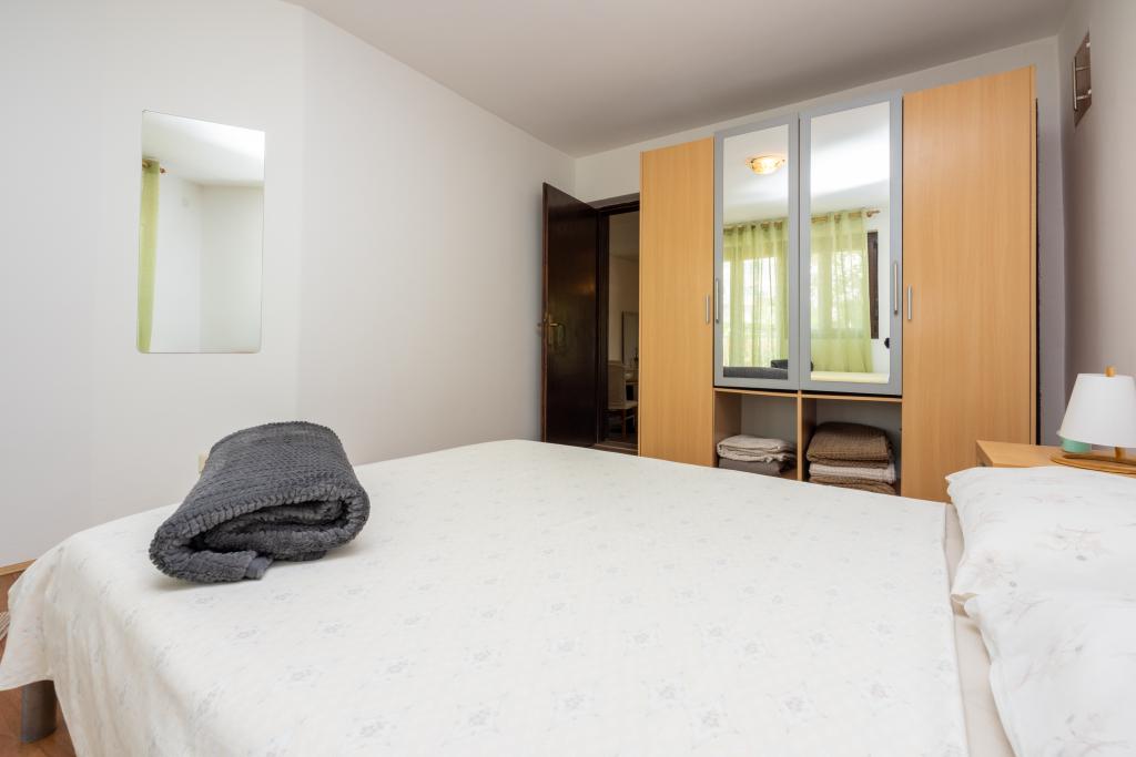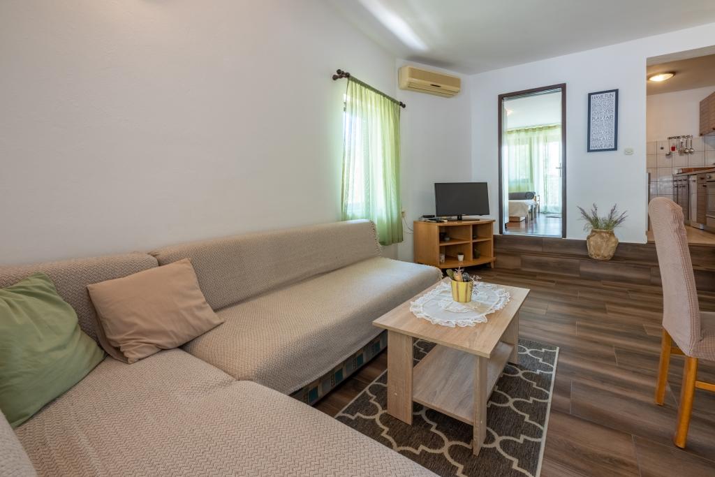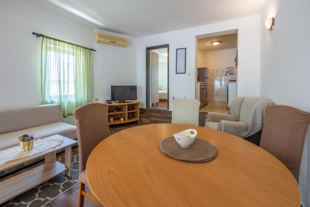 Légkondicionált apartman 2 erkéllyel, egy csendes, félreeső utcában, egy kis Jadranovo halászfalu közelében. Az apartman kerttel, grillezővel, valamint WI FI-vel és parkolóval rendelkezik. Az apartman két erkéllyel vagy terasszal rendelkezik, 1 hálószobával, nappalival, konyhával és WC-vel. 10 perc sétára van a legközelebbi strandtól és 15 perc sétát a másiktól. A második strand autóval is megközelíthető 2 perc alatt, és közvetlenül a tengerparton parkolhat.