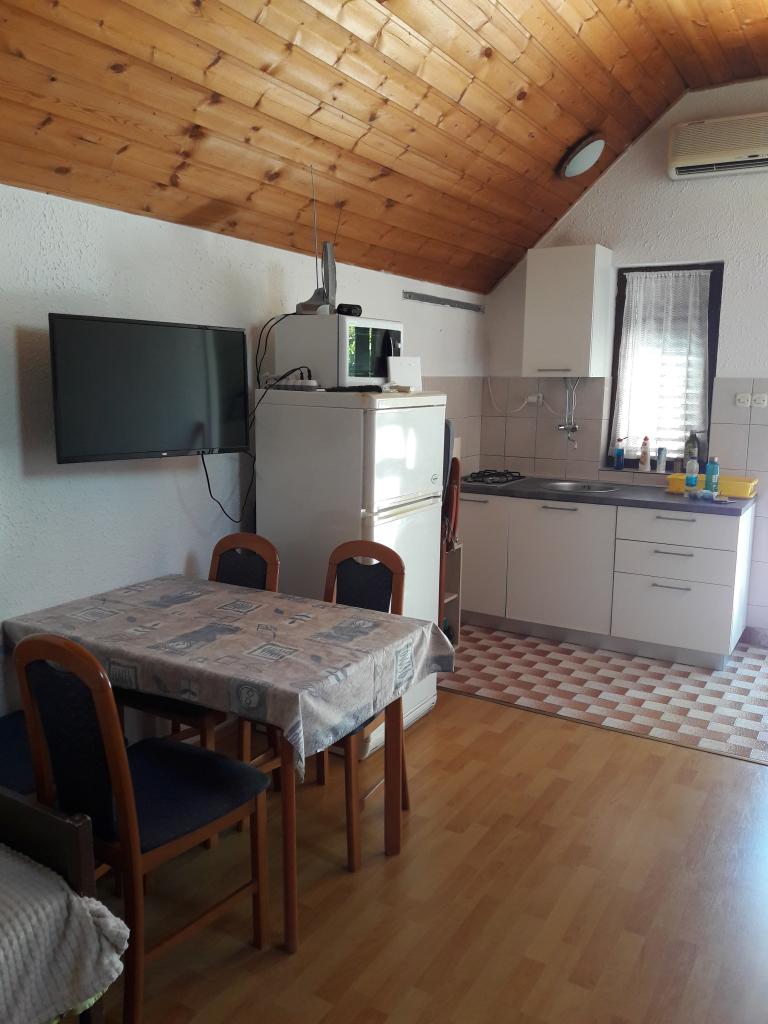A stúdióapartman leírása: - apartman alapterülete 30 m2 + tengerre néző erkély + 10 m2 terasz - franciaágy + egy pótágy - asztal négy székkel és ruhásszekrény - konyha (gáztűzhely 2 égővel, hűtőszekrény) - fürdőszoba zuhanyzóval - TV - internet - légkondicionáló - edények ételek és italok elkészítéséhez és tálalásához - evőeszközök megfelelő mennyiségben - ágynemű és törölközők a fürdőszobában benne foglaltatnak - tengertől való távolság 15 m. Az apartman leírása A3+1 - apartman alapterülete 40 m2 + terasz 30 m2 - szoba franciaággyal - szoba egyszemélyes ággyal - konyha (indukciós főzőlap, mosogatógép, hűtőszekrény) nappalival - fürdőszoba zuhanyzóval és mosógéppel - TV - internet - légkondicionáló - edények ételek és italok elkészítéséhez és tálalásához - evőeszközök megfelelő mennyiségben - ágynemű és törölközők a fürdőszobában benne foglaltatnak - tengertől való távolság 15 m.