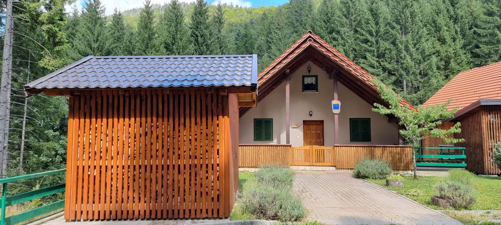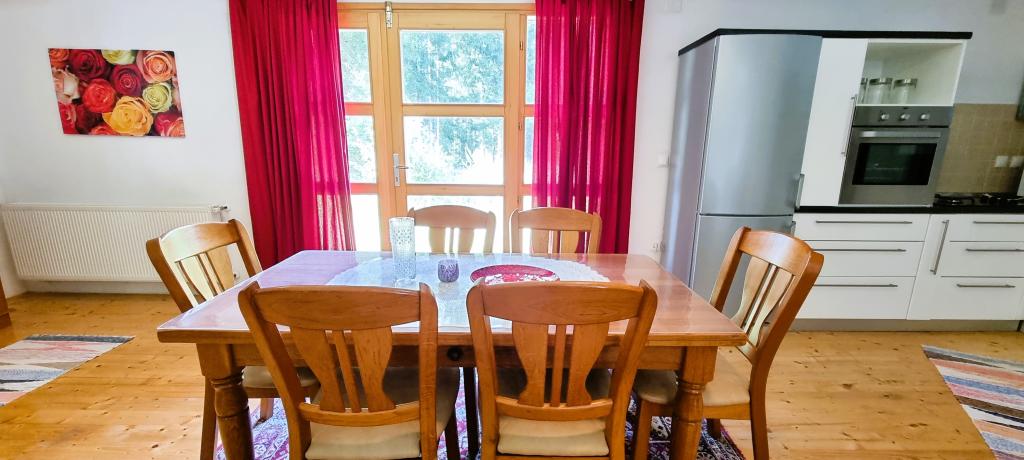 Gyönyörű természeti környezetben, közvetlenül az erdő mellett, kényelmes lakás azoknak, akik a nyüzsgés elől szeretnének elszabadulni és a természetben pihenni. Fedett grillező asztallal és székekkel, valamint fahinták állnak a vendégek rendelkezésére.