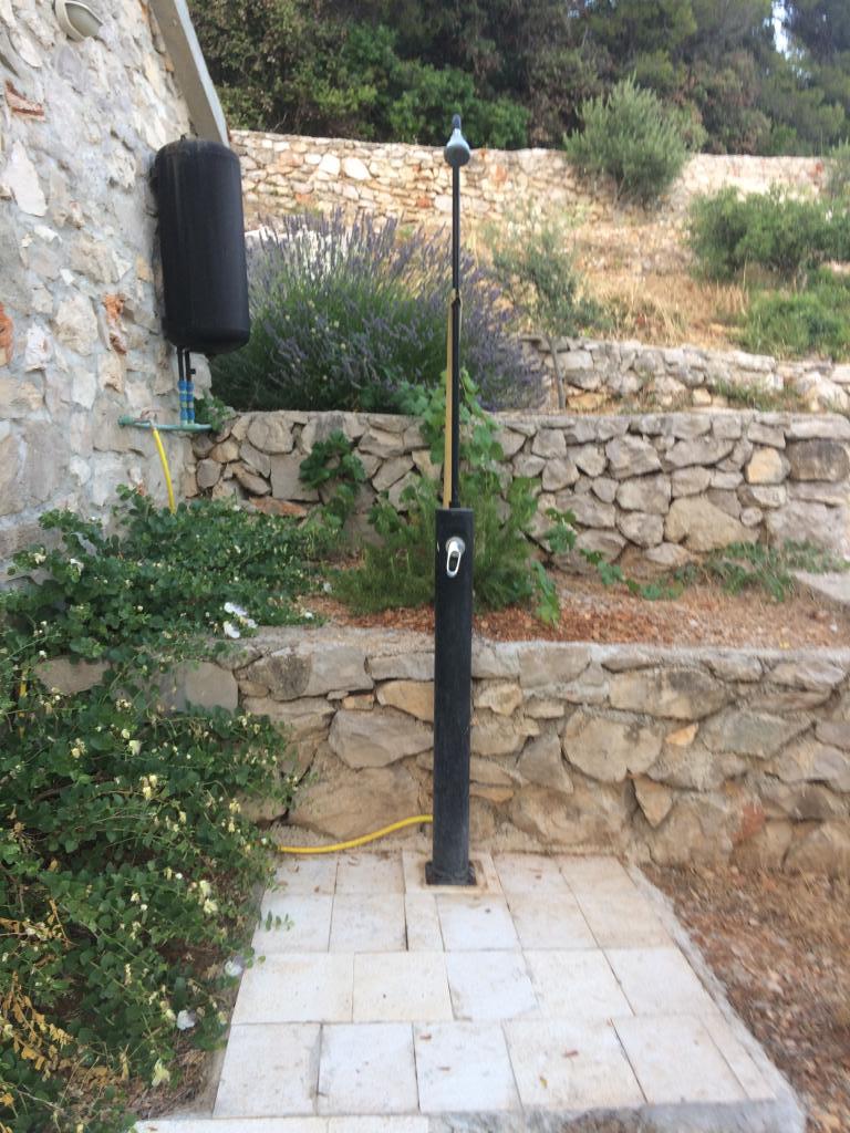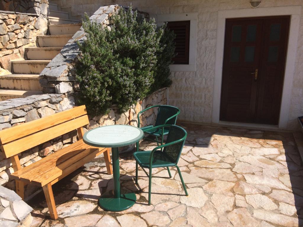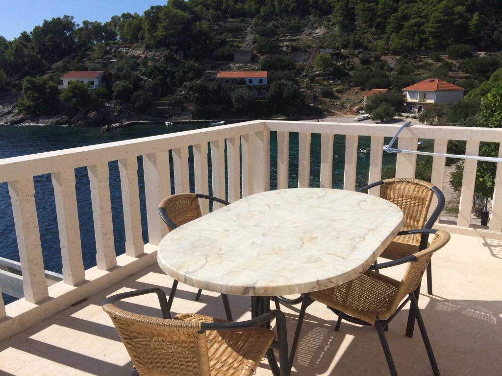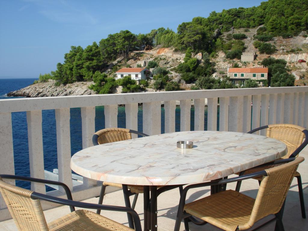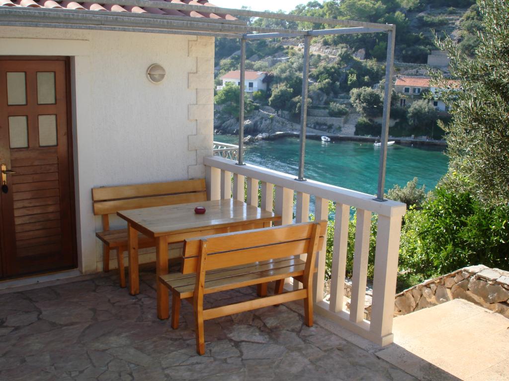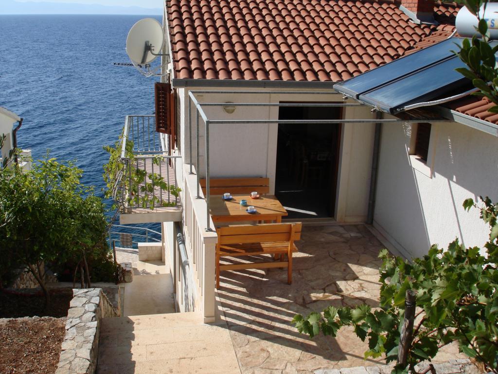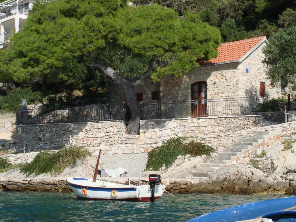 Modern apartmanok Gdinj faluban, Torac-öbölben. Ház a tengerparton, egy csendes öbölben, mindössze 50 méterre a kavicsos strandtól. A ház mellett van egy betoncsónak dokkoló, amely úszásra és napozásra is használható. A lakások napenergia-forrásból és melegvízből készülnek. A vendégek használhatják a közös grillt is fa és faszén számára. Egy kis élelmiszerbolt alapvető élelmiszerekkel és italokkal, valamint egy kisebb étterem a szomszédos öbölben található, mindössze 300 méterre. Három öbölnél tovább, körülbelül 2 km-re található egy hal étterem. A falu központjába, ahol kicsit nagyobb üzlet található, és az étterem kb. 4 km-re fekszik. A legközelebbi gyógyszertár, gyógyszertár és szupermarket Jelsában található, kb. 25 km-re.