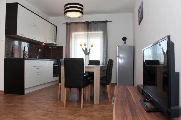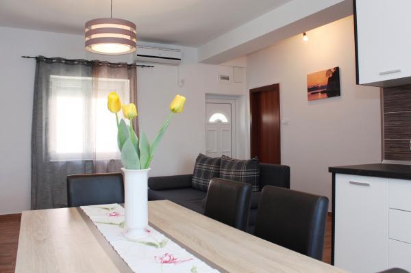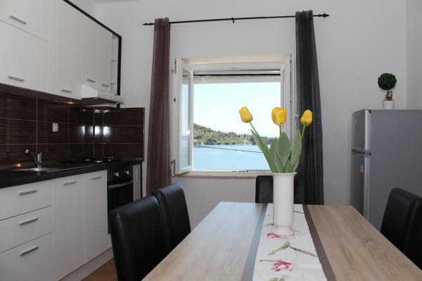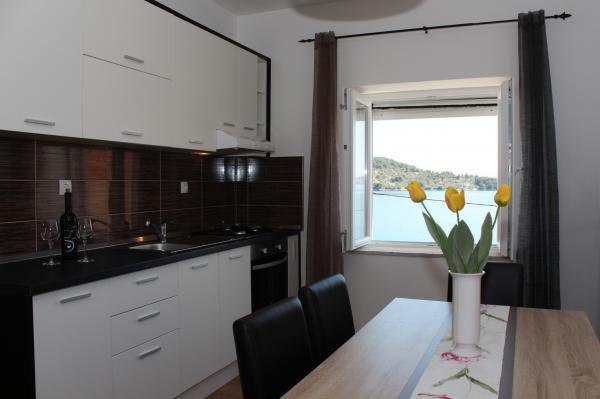 Teljesen felszerelt apartman Kali csendes falujában, az első sorban a tengertől, 15 perc sétára Preko városától. Prekóban van egy kompkikötő, ahonnan Gaženica kikötőjébe komppal 25 perc alatt, a gyorshajóval pedig (kb. 15 perc) lehet eljutni az óvárosba. A lakás belső tere (étkező, 2 hálószoba és fürdőszoba) 50 m2-es, ezen felül 2 erkéllyel rendelkezik. A fő erkély 25 m2-es, tengerre néző kilátással. A kisebb erkély 11 m2-es. Minden szoba saját légkondicionálóval rendelkezik. A lakás alatt grillező és parkolóhely található.