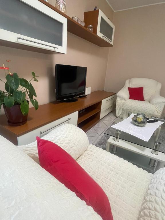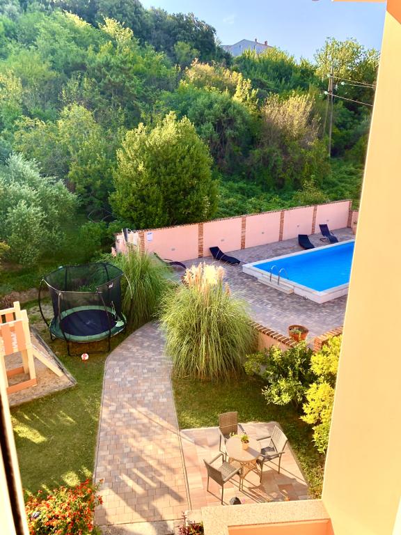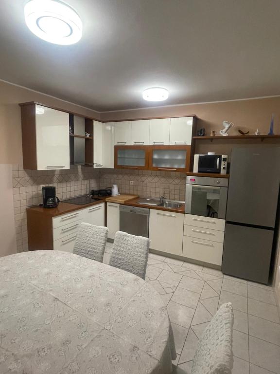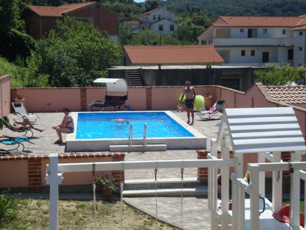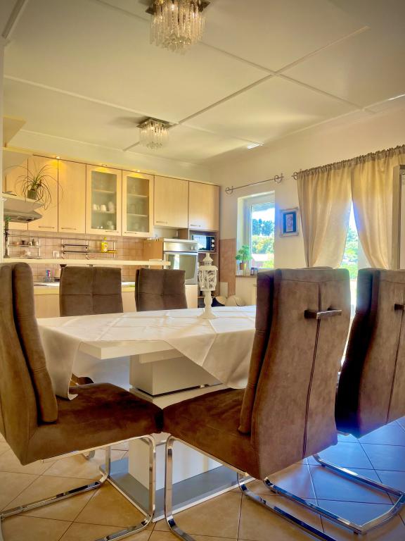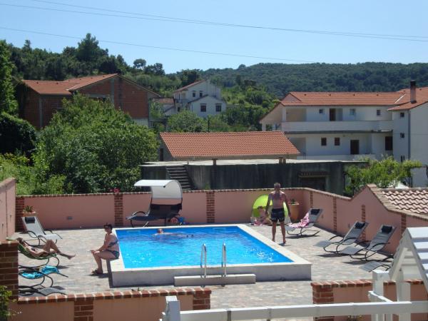 Ezen a nyáron körülbelül 3 hetet töltöttünk több családdal az egész házban. Ez volt az első utunk Rab szigetére, és nagyon izgatottak vagyunk! Marija és családja meleg fogadtatásban részesített minket, és mindig nagyon barátságosak voltak, szívesen beszélgettünk mindenkivel. Friss törölközővel és ágyneművel is kiszolgáljuk. Kérésre akár mosógépüket is használhatja. Ha akarja, akár csónakot is bérelhet fiától, Mariotól, vagy elviheti magát kis öblökbe. A ház nagyon jól karbantartott, minden nap tisztán tartanak. A ház hátul eldugott, de még mindig bejön a tengeri levegő. Minden apartmanban a nappaliban van klíma, a kisebb lakásoknál a légkondi elegendő és felső. Az 1. emeleti 6 fős lakás klímaberendezése sajnos csak a nappalit hűti, a hálószobákba már nincs hűvös levegő. Nyaralásunk elején nem volt szükség klímára, mert éjszaka hűvös levegő jött be a szobákba, ha éjszaka nem hűlt le, akkor már nagyon meleg volt. A szállások felszereltsége nagyon jó volt, minden bőséges volt, ha kell valami, kérdezd meg Mariját és megkaptad. A medence területe is nagyon szép volt, de nincsenek árnyékos részek (ernyőt vittünk magunkkal), kora reggel vagy késő délután használtuk a medencét. Volt egy csodálatos fedett grillező is, előtte megkérdeztük Mariját, hogy lehet-e grillezni, hogy a házban mindenkinek legyen lehetősége használni. Pár méterre a tengertől, kikötőtől, kávézóktól, boltoktól, hogy otthagyhassuk az autót. Tökéletes nyaralás volt, visszatérünk. Köszönöm ezt a szép időt