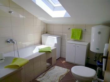 Családi ház teljesen felszerelt, három hálószobás apartmannal a második emeleten. Gyönyörű panorámás kilátás a tengerre. A lakáshoz fedett terasz tartozik, amely a nappaliból nyílik, és ugyanazon az emeleten található még két hálószoba saját fürdőszobával (bejárat a hálószobából). Az emeleten, a tetőtérben található a harmadik hálószoba, ahonnan egy fedetlen teraszra lehet kijutni, szintén tengerre néző kilátással. A szoba mellett egy különálló fürdőszoba mosógéppel. Az első strand 5 perc sétára található a háztól, a többi strand 100-200 méterre vagy még messzebb van. A háztól nem messze található egy tengerparti sétány, játszótér, teniszpálya, kosárlabdapálya, tekepálya, csónakbérlés, kerékpárok, robogók. Élelmiszerbolt, kávézó, pénzváltó, masszázsszalon, étterem, pizzéria, kis kikötő. Családi ház nyugodt és szép nyaralást kínál.