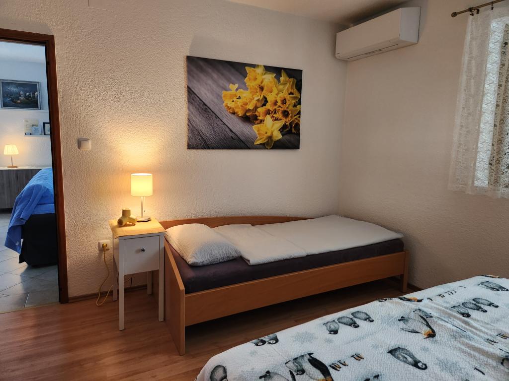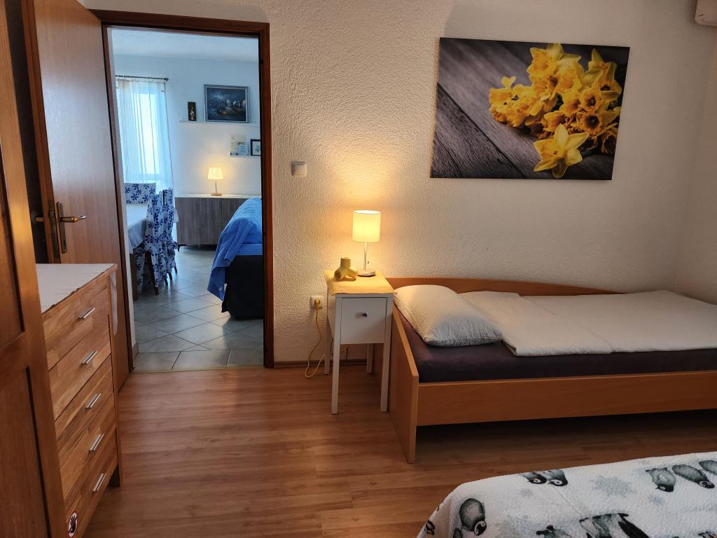 Két apartmanunk csoportok, családok, barátok stb. számára készült, akik jól ismerik egymást. A kisvárosban nincs tömegturizmus. A teraszról gyönyörű kilátás nyílik a tengerre, pihenésre és feltöltődésre csábít. A tulajdonosok a ház tetőterében laknak. Parkolási lehetőség az utcán, a saját telkükön található. Akár három autó is elfér. Kulcs a helyszínen. A strand gyalogosan körülbelül 10 perc alatt elérhető. A helyben minden megtalálható, amire a mindennapi élethez szüksége van. Karlobagból gyönyörű kirándulásokat tehet, mint például a Plitvicei-tavak, Rab és Pag szigete, Zadar városa, a Krka-vízesés, a Paklenica-barlangok, túrázás a Velebitben és még sok más. A faluban mindent megvásárolhat, amire szüksége van a napi szükségleteihez. Pékség, szupermarket, ATM stb.