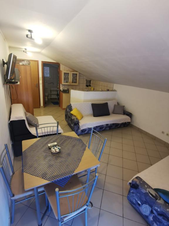 Apartmanok Sofia kínál 1 STUDIO apartman 4 fő részére és 1 APARTMAN külön hálószobával 4 fő részére. Az apartmanok teljesen berendezettek és felszereltek. Minden apartman saját terasszal, ingyenes WIFI-vel és légkondicionálóval rendelkezik. Az udvaron grillező található, melyet a vendégek ingyenesen használhatnak. A ház egy kis faluban, RIBARICA KARLOBAG közelében található. A hely kis családi strandokkal rendelkezik tömeg nélkül. Az apartmanok 30 méterre vannak a strandtól és a tengertől. A közelben egy étterem, pizzéria és Tatinja strandbár található. Alkalmas allergiások és asztmás betegek számára. Kellemes fogadtatást kívánunk!