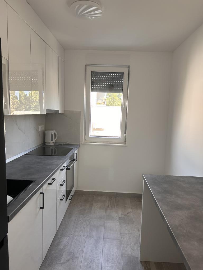 Új lakás, lakóházban található, ezért csak nyugodt, nyugodt környezetet kedvelő családoknak adják ki. A lakóépület földszintjén üzlet és kávézó található, a városközpont és a strand kb. 200 m-re található. A lakás 6 fős (4+2 fős), egy egészben használatos, egy stúdióra (2 fő) és egy 2+2 fős apartmanra osztható, mert az apartmanban két konyha és két fürdőszoba található két pár vagy olyan ember, aki szereti a magánéletet. 1.11-15.05 közötti időszakban Ár kérésre.