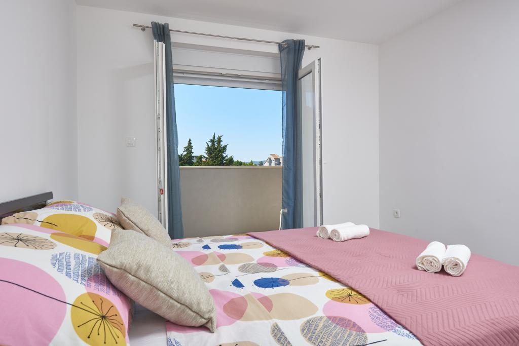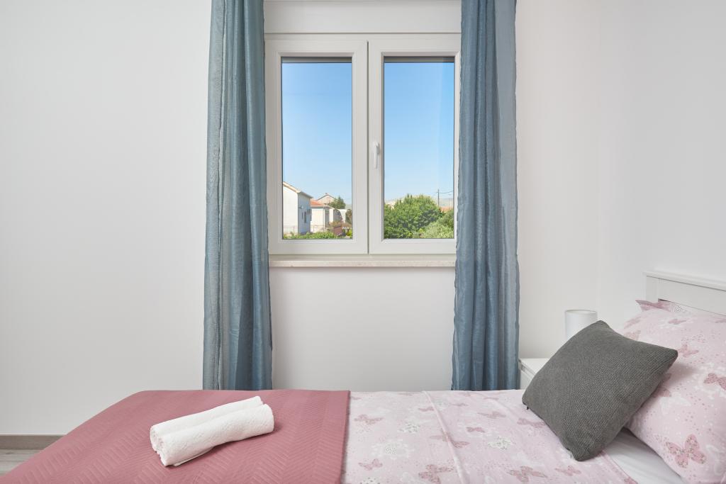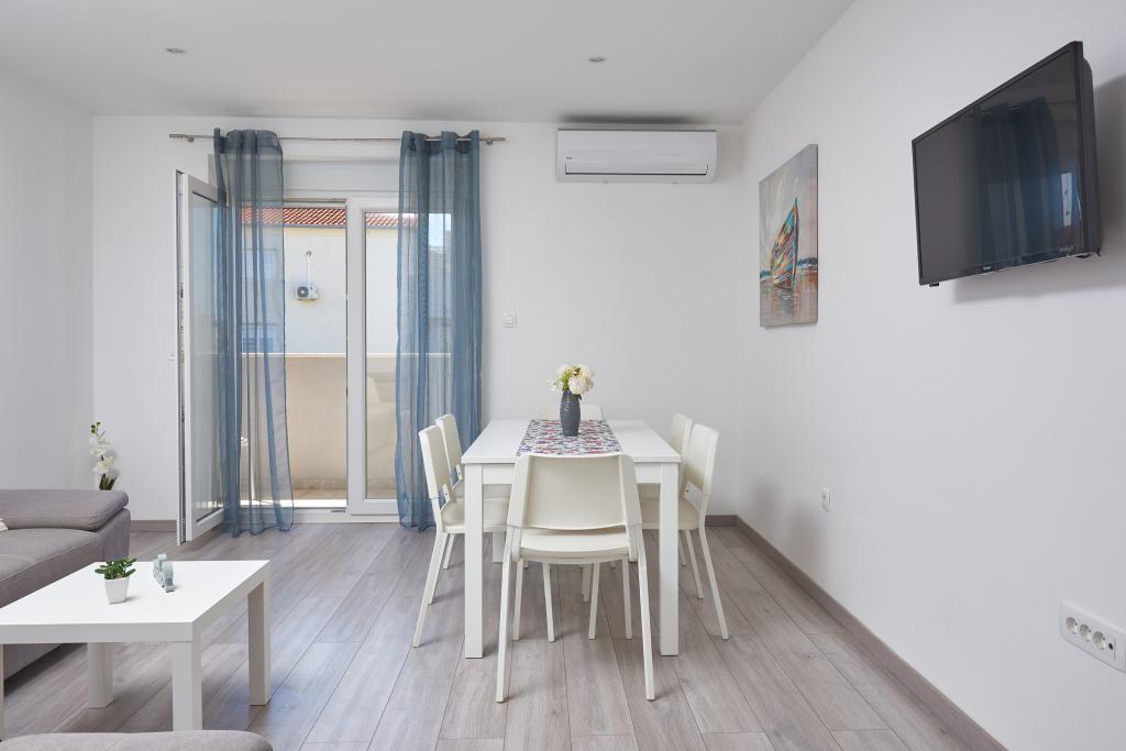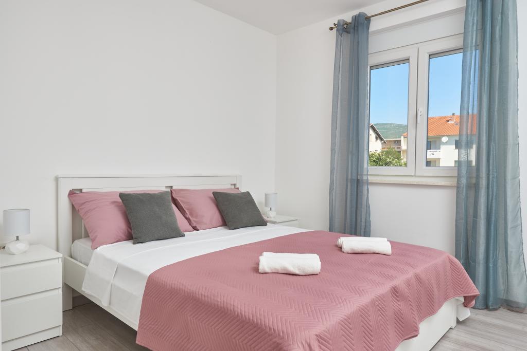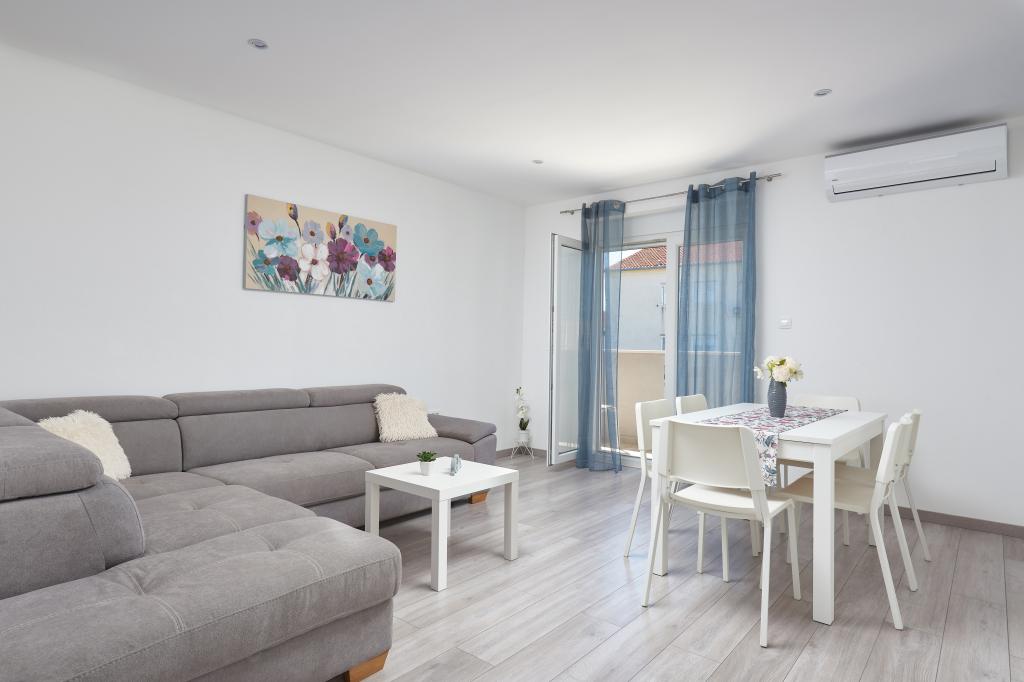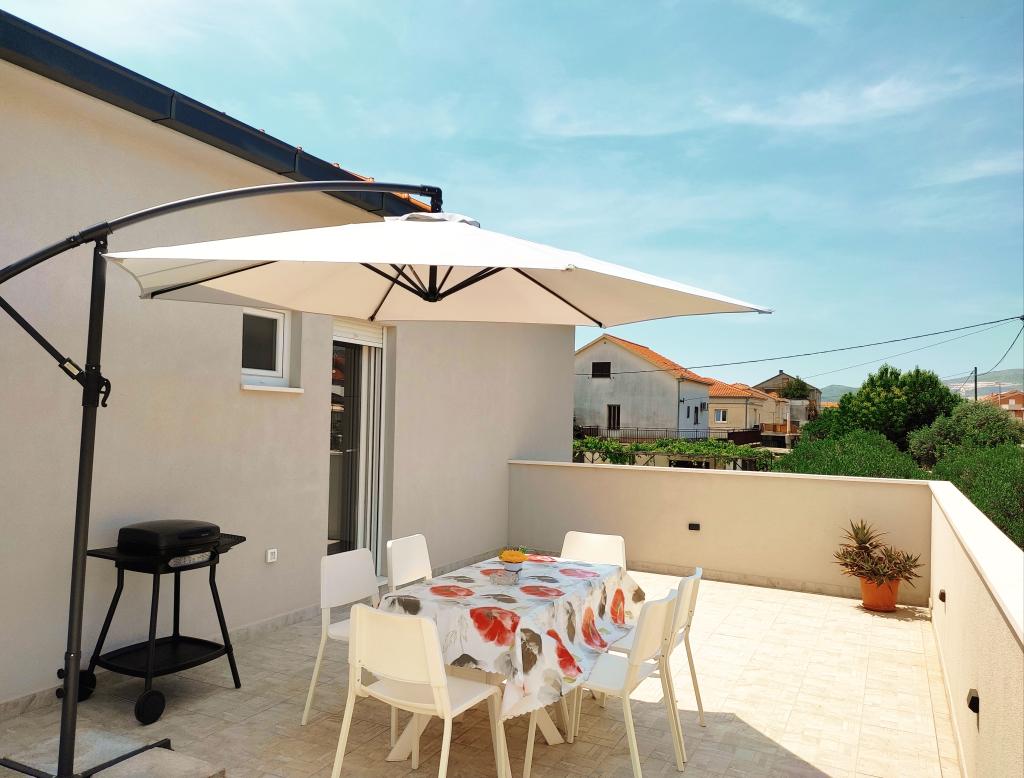 Frissen felújított lakás nagy terasszal és erkéllyel. Kaštel Štafilićben található, egy kicsi, csendes helyen, közel az UNESCO által védett Trogir és Split városokhoz. Ideális hely egy családi nyaraláshoz. Az apartmanban egy teljesen felszerelt konyha, egy nappali, három hálószoba franciaággyal és egy fürdőszoba található. A lakás légkondicionált, 4 parkolóhellyel, WiFi-vel, TV-vel és elektromos grillel rendelkezik. Kérésre babaülés és kiságy is rendelkezésre áll. A kávézóval, pizzériával és játszótérrel rendelkező strand 5 perces sétával elérhető. Az apartmantól 200 méteren belül üzletek, kávézók, étterem, hentes, halpiac, bankautomata, gyógyszertár található. A legközelebbi bevásárlóközpont 5 perces autóútra található.