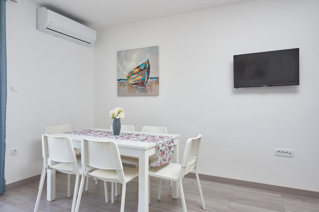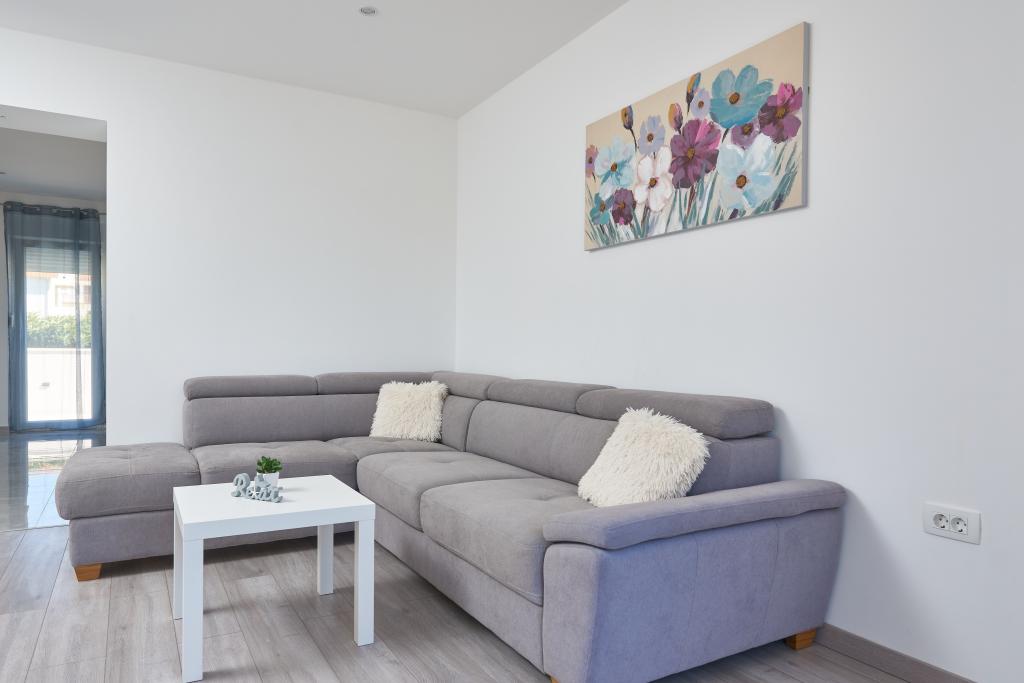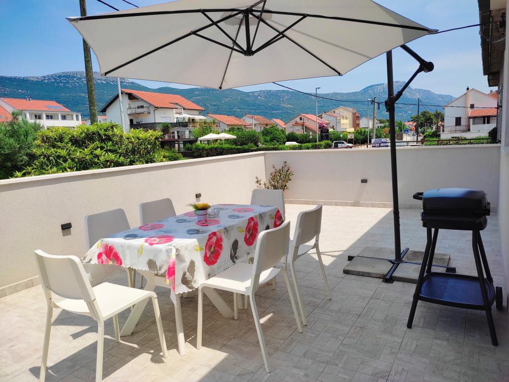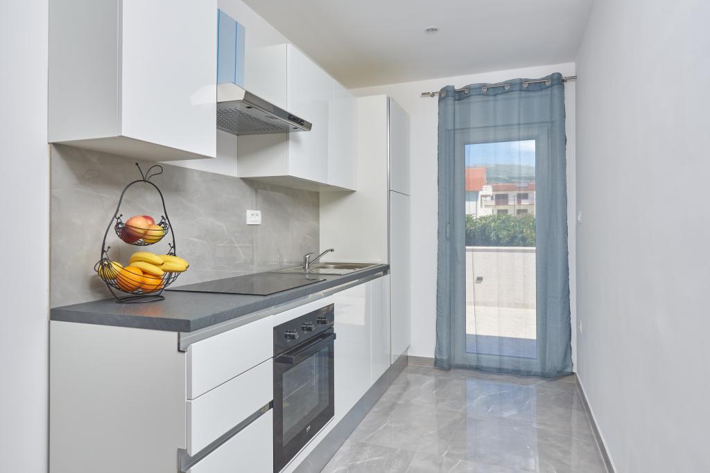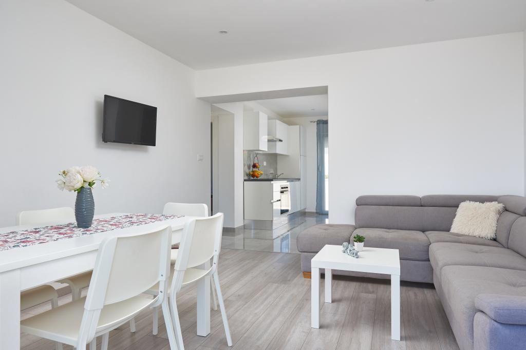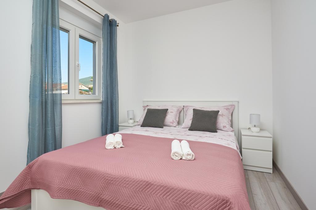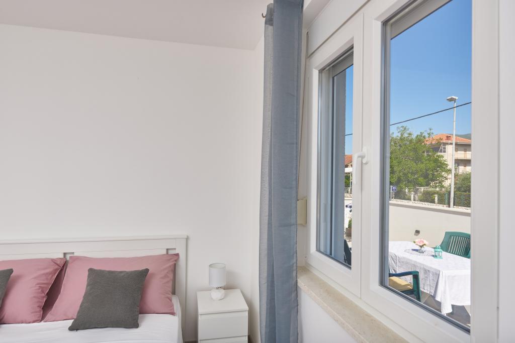 Frissen felújított lakás nagy terasszal és erkéllyel. Kaštel Štafilićben található, egy kicsi, csendes helyen, közel az UNESCO által védett Trogir és Split városokhoz. Ideális hely egy családi nyaraláshoz. Az apartmanban egy teljesen felszerelt konyha, egy nappali, három hálószoba franciaággyal és egy fürdőszoba található. A lakás légkondicionált, 4 parkolóhellyel, WiFi-vel, TV-vel és elektromos grillel rendelkezik. Kérésre babaülés és kiságy is rendelkezésre áll. A kávézóval, pizzériával és játszótérrel rendelkező strand 5 perces sétával elérhető. Az apartmantól 200 méteren belül üzletek, kávézók, étterem, hentes, halpiac, bankautomata, gyógyszertár található. A legközelebbi bevásárlóközpont 5 perces autóútra található.