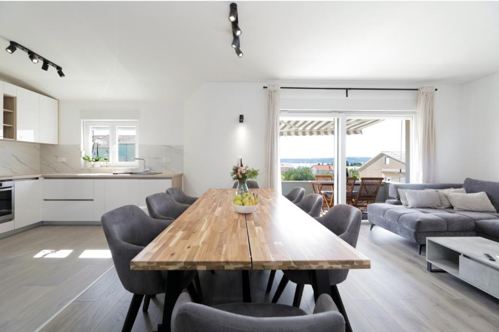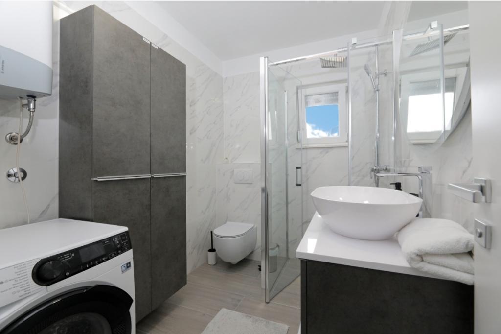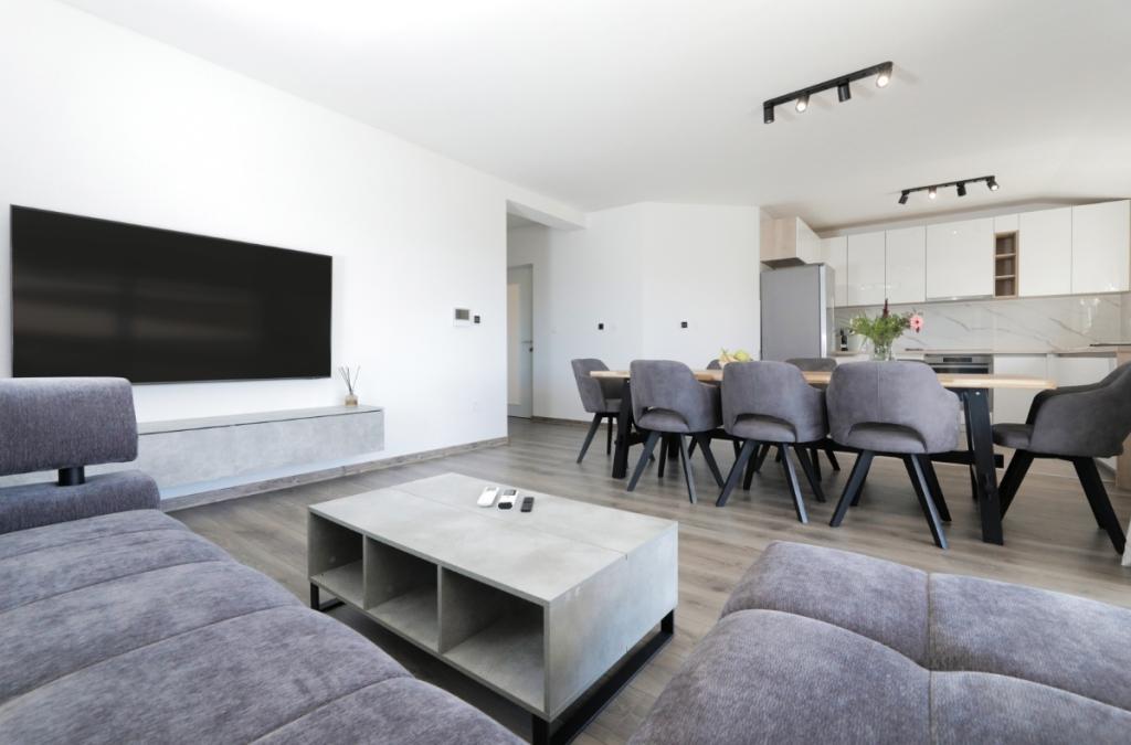 Új, kényelmes és modern lakás; gyors Wi-Fi; Kastela központja; 250 méterre a tengertől és a legközelebbi strandtól, 3 km-re a Marina Kaštela és 5 km-re a spliti repülőtértől; 15 percnyi autóútra Split városa és Trogir. Tágas luxus "Matić apartman" tökéletes menekülési hely családok és barátok számára. Teljesen felszerelt konyha minden géppel (mikrohullámú sütő, kenyérpirító, hűtőszekrény, mosogatógép, tűzhely...), étkezőasztal 8 székkel, tágas és kényelmes nappali nagy lapos plazma TV-vel. A ház előtt egy szép terasz található, ahol grillezési lehetőség van hagyományos dalmát grillezővel. 3 hálószoba 3 king méretű ággyal, valamint 2 fürdőszoba WC-vel, zuhanyzóval és egy mosó- és szárítógéppel. 2 db klímája van. A bérelt hely teljesen szabad, kijárattal az előkertbe és a grillezőbe.