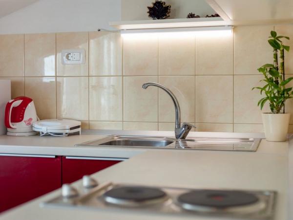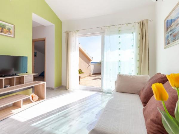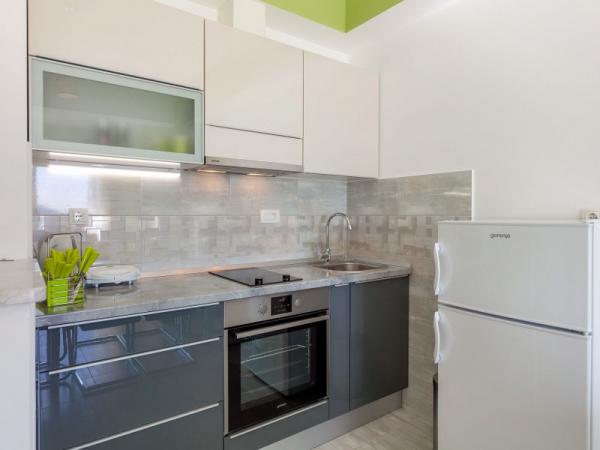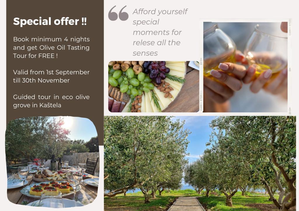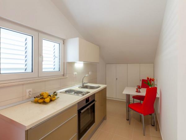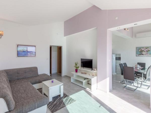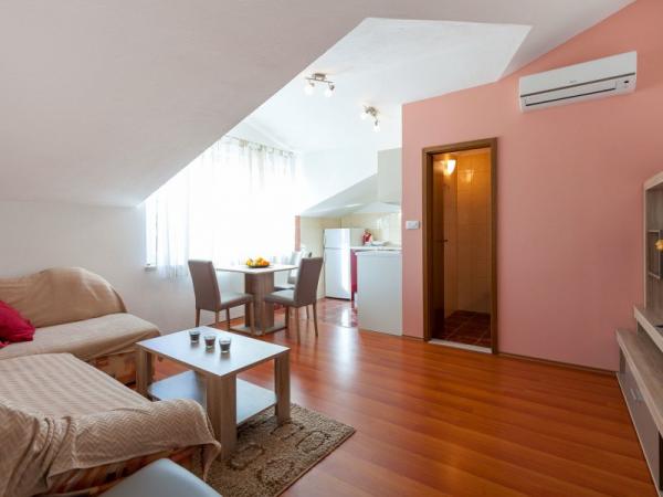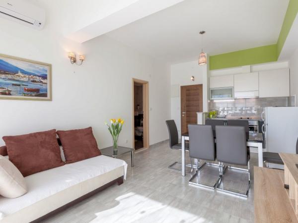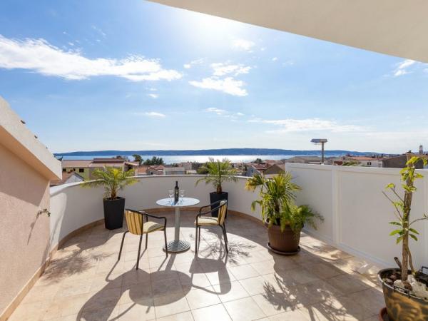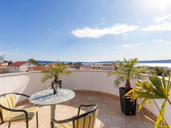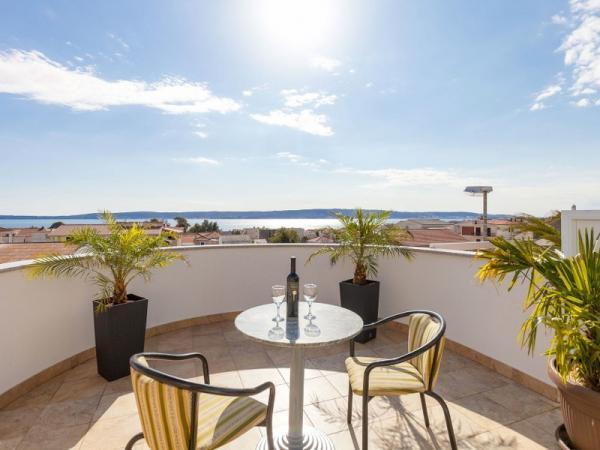Egy új, teljesen felszerelt apartman található szívében a vár. A földszinten van egy nagy szupermarket egy hentest és egy pékség. Az apartmanok mindössze 5 percre a strandtól, bárok, éttermek. Buszmegálló található 50 méterre a cél, és a mentők és a gyógyszertár. Kastela között helyezkedik el két UNESCO város, Split és Trogir, amely található mintegy 10 km-re.
