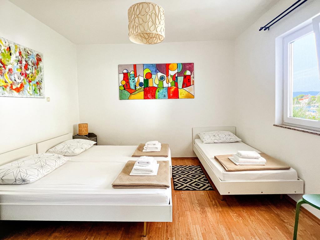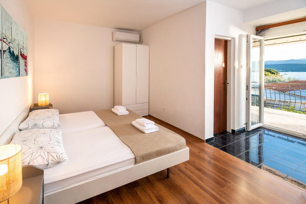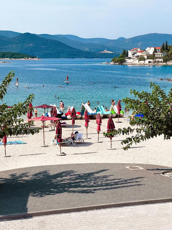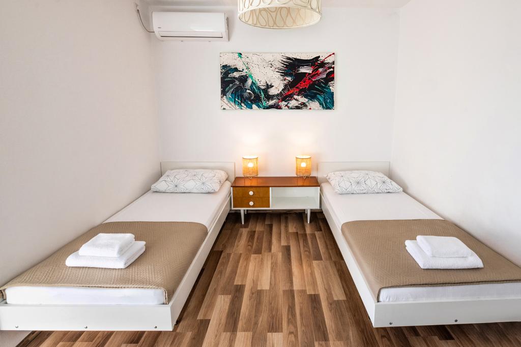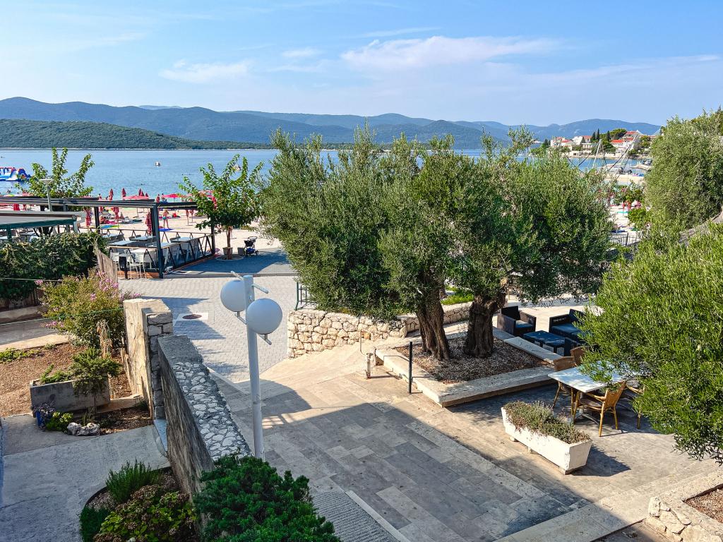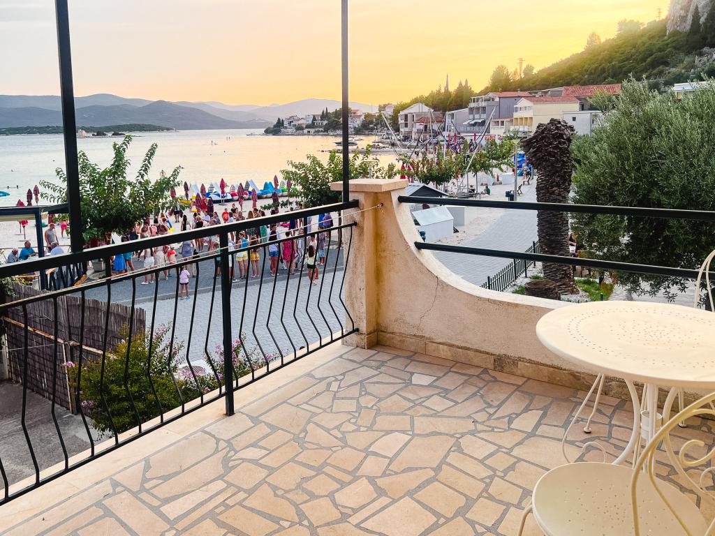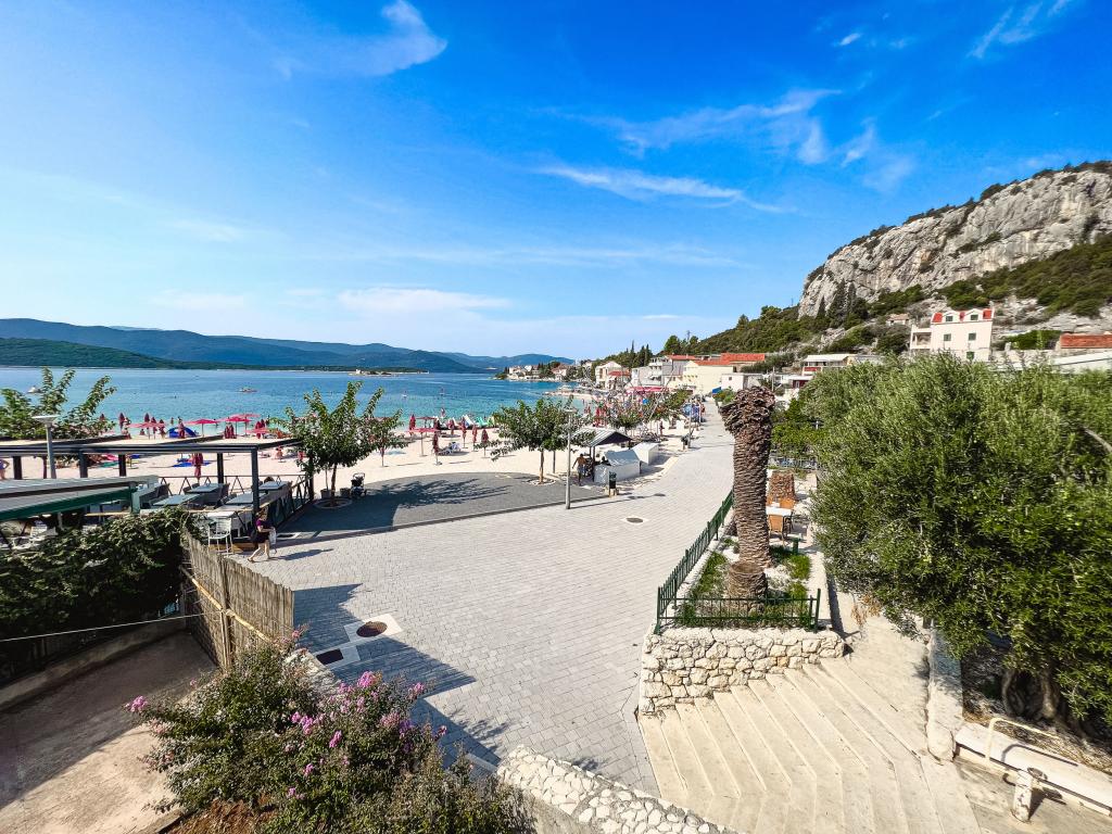 Az egyik legjobb szállásunk Horvátországban. A házigazdák nagyon kedvesek és vendégszeretők. Az apartmanok gyönyörűek, tengerre néző kilátással. Parkolás a ház udvarában (hárman voltunk, 6 felnőtt + 9 gyerek). Nagy árnyékolt pergola kandallóval grillezéshez és szabadtéri főzéshez. Mellette van még egy mosogató csapvízzel, a szobák teljesen felszereltek ágyneművel, törölközőkkel, edényekkel, mosogatógéppel, mosógéppel, kávéfőzővel. Közvetlenül a ház mellett és alatt két étterem található, ahonnan ételt tudunk vinni a lakásba. A ház mellett az udvaron strandszékek és felfújható napernyők tárolására is van lehetőség. Igazán remek szállás gyermekes családok számára, akik 50 métert egyedül tudnak elsétálni a strandig.