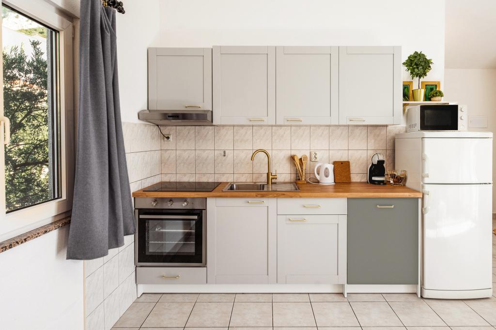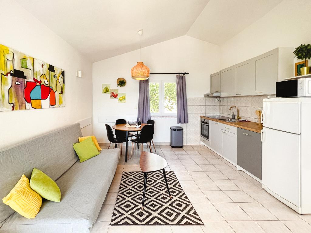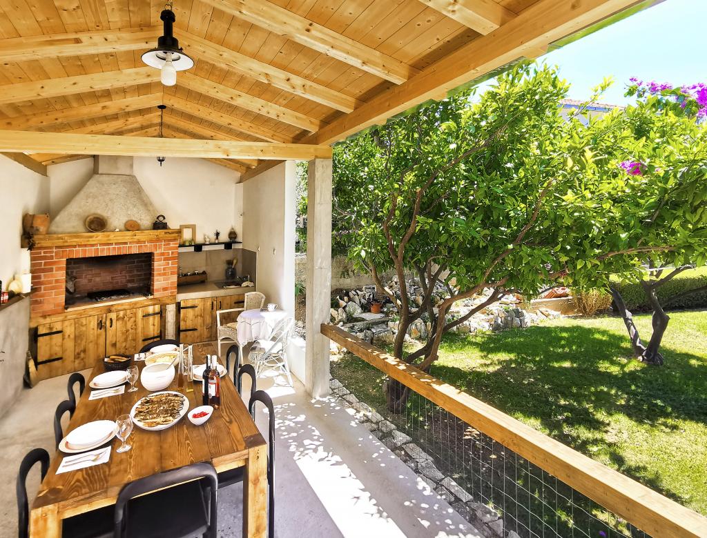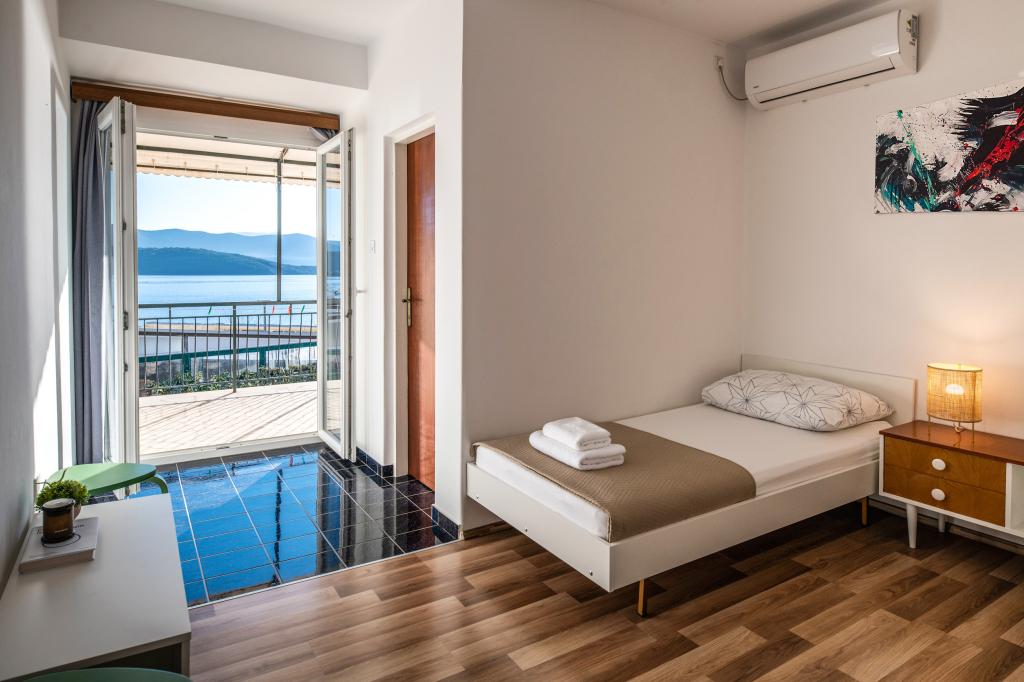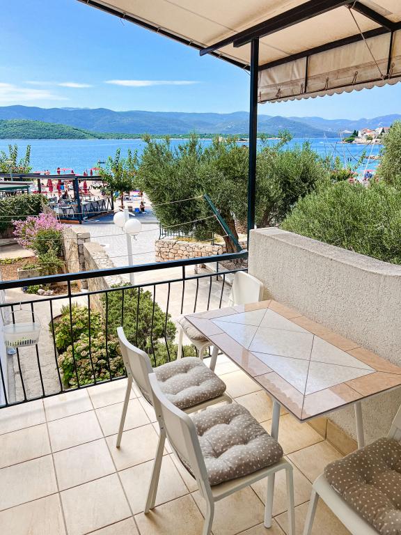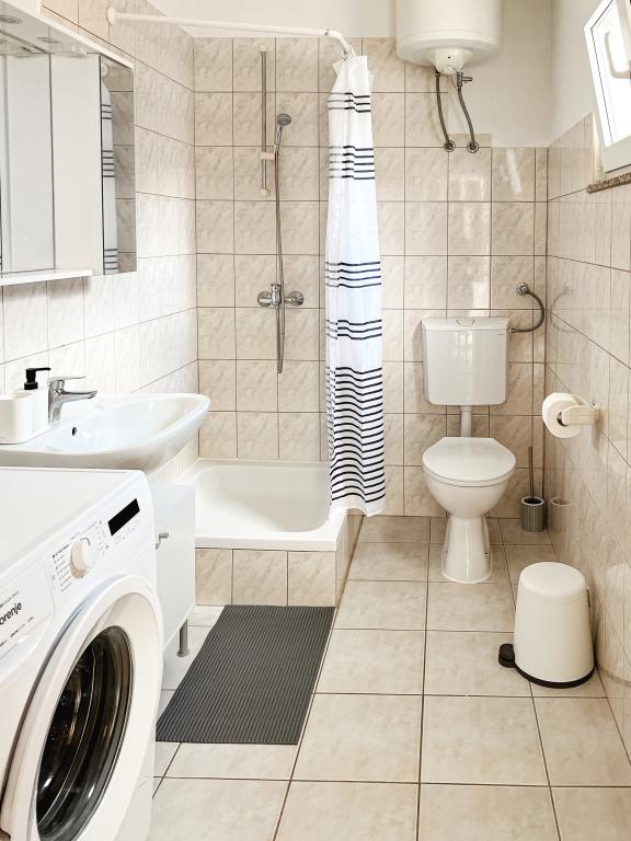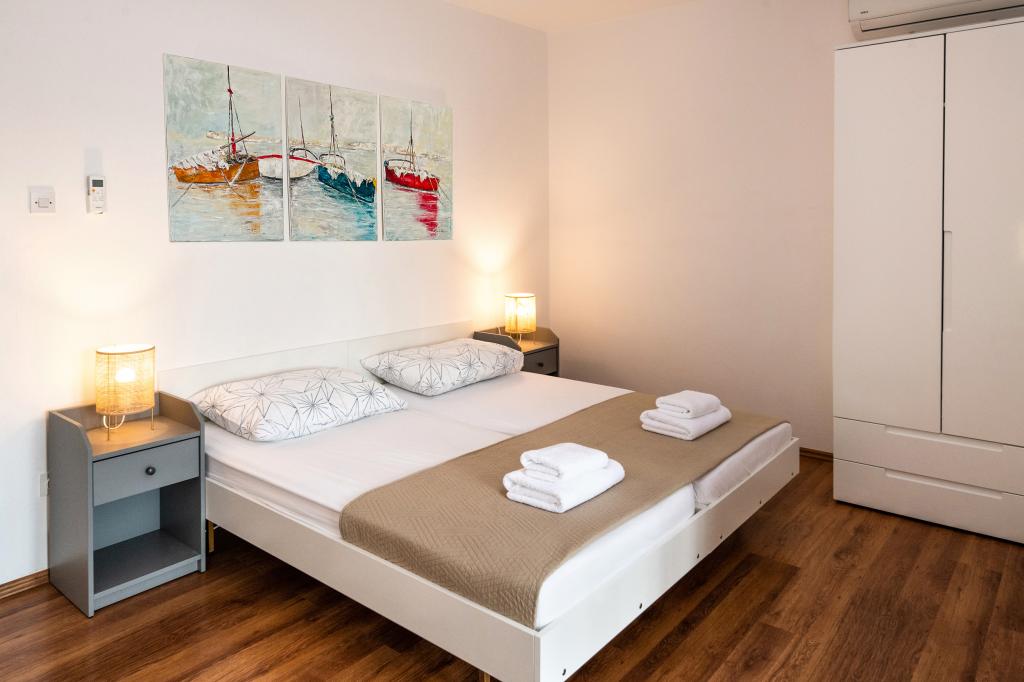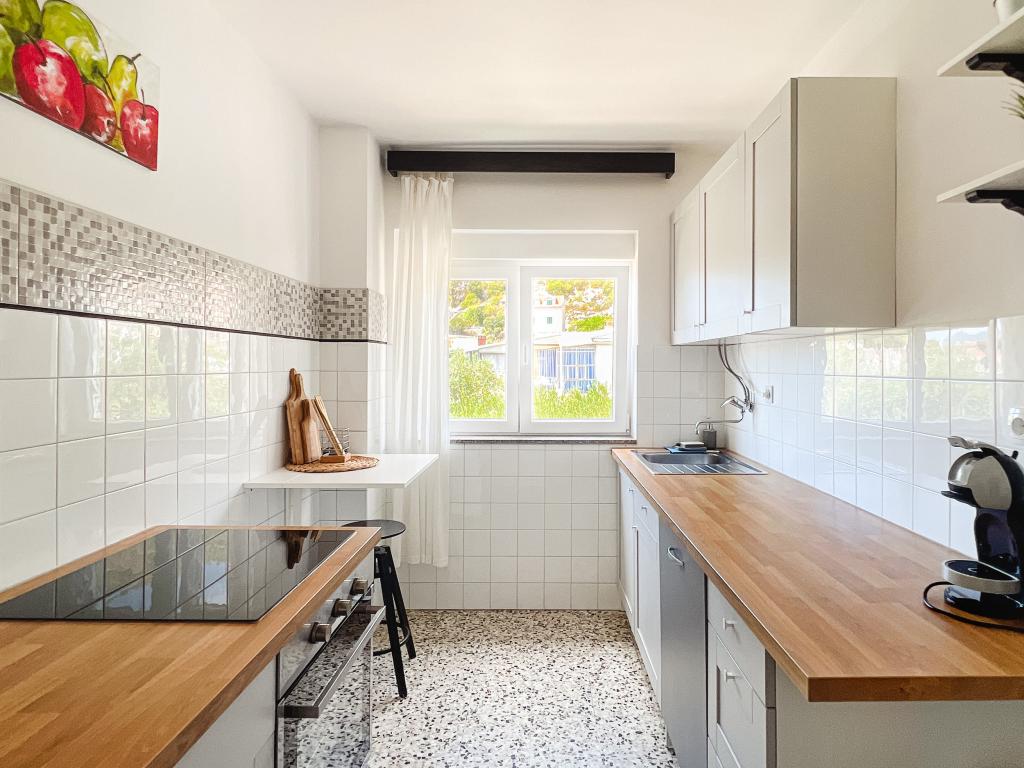 Az egyik legjobb szállásunk Horvátországban. A házigazdák nagyon kedvesek és vendégszeretők. Az apartmanok gyönyörűek, tengerre néző kilátással. Parkolás a ház udvarában (hárman voltunk, 6 felnőtt + 9 gyerek). Nagy árnyékolt pergola kandallóval grillezéshez és szabadtéri főzéshez. Mellette van még egy mosogató csapvízzel, a szobák teljesen felszereltek ágyneművel, törölközőkkel, edényekkel, mosogatógéppel, mosógéppel, kávéfőzővel. Közvetlenül a ház mellett és alatt két étterem található, ahonnan ételt tudunk vinni a lakásba. A ház mellett az udvaron strandszékek és felfújható napernyők tárolására is van lehetőség. Igazán remek szállás gyermekes családok számára, akik 50 métert egyedül tudnak elsétálni a strandig.