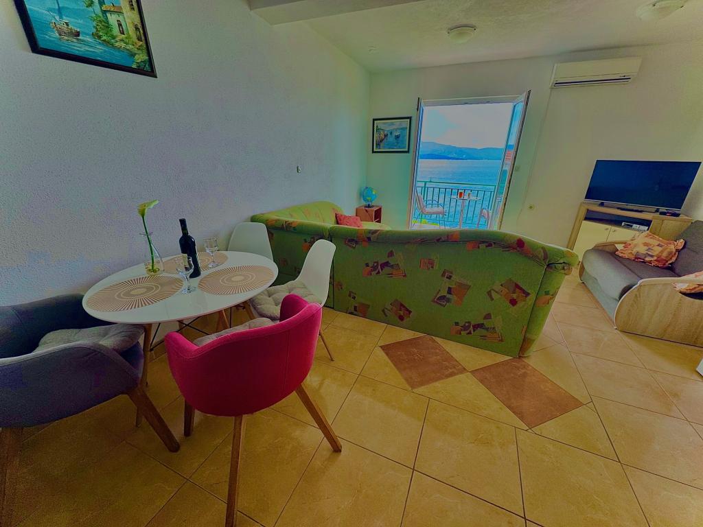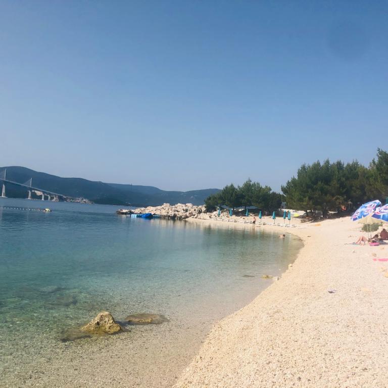 Ház 15 m-re a tengertől 70 km-re északra DUBROVNIK-tól, kavicsos strandok 1 perc sétára a háztól, élelmiszerbolt /kenyér, tej stb./ csak 50 m-re a háztól, játszótér 50 m stb. Minden apartmanhoz tengerre néző terasz tartozik /asztalok és székek/ tengerre néző kilátás, naplemente. Az apartmanok teljesen és korszerűen berendezettek, légkondicionáltak, ingyenes WIFI-internet, lapos SAT TV, parkolóhely vagy garázs egy autónak, kültéri grill és kert. Az apartmanokhoz tartozik: hálószoba, komplett konyha étkezővel, nappali, ahol van egy pótágy, fürdőszoba zuhanyzóval, wc (mosógép, hajszárító, ágynemű és törölköző. Hosszabb lakásbérlés esetén 1 hét /3 hét kedvezményt biztosítunk). Tiszta ágyneműt 7 nap után szállítunk HÍD és Storija éttermek halas és egyéb különlegességekkel a háztól 50 m-re, valamint híres pincészetek, tengerparti sétány, játszótér a háztól 100 m-re Üdvözöljük!