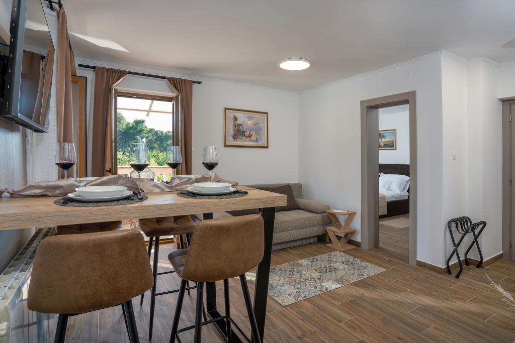 A villában hat teljesen felszerelt apartman található tengerre néző kilátással. A Villa Elizabeth apartmanjai aprólékosan berendezettek, figyelembe véve a funkcionalitást és a kényelmet. A fürdőszoba és egy teljesen felszerelt konyha, hálószoba és étkező mellett minden apartmanban műholdas TV-műsorok és légkondicionáló is található. Lakásaink elnyerték a Kvarner Family címkét, amely egy megbízható nyaralóhelyként ismer el bennünket, jól megtervezett környezettel, kényelmesen berendezett belsővel, hagyománytisztelettel, vendéghűséggel, otthonos, családias légkör élményével. . Számos lehetőség kínálkozik az aktív pihenésre, túrázásra, kerékpározásra vagy a medencében és a jakuzziban való úszásra