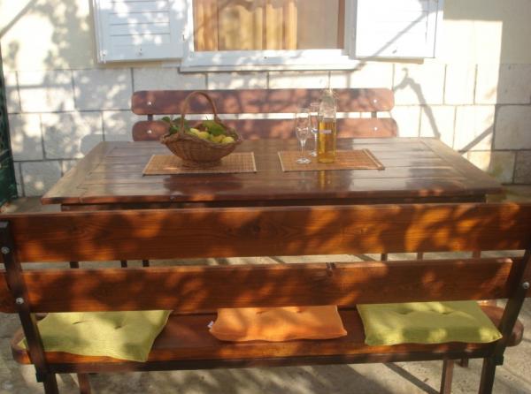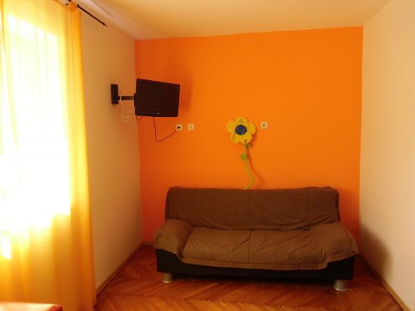 Apartmanok Ana - Mari apartmanok 100 méterre a strandtól. A földszinten egy stúdió lakás Sun - 27m2 + 10m2 terasz. Az első emeleten: Katica Apartman 20 m2 + 7m2 erkély és apartman Clover Studio - 25m2 + 7m2 erkély. A földszinten található a palota egy nagy terasz, ahol élvezheti a szél és a tenger illatát, a szőlőtőkék árnyékában, és főzzük a grill. Az apartmanokban légkondicionáló, TV-vel és vezeték nélküli internet.