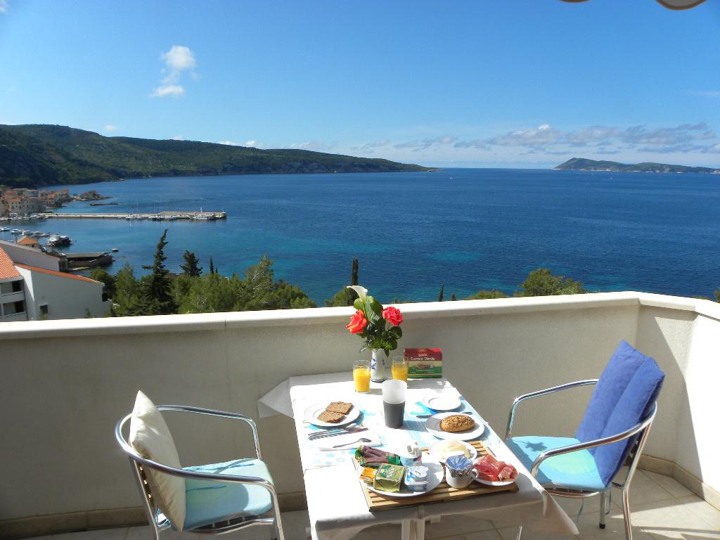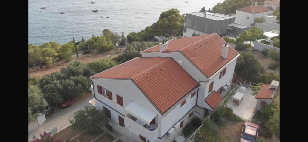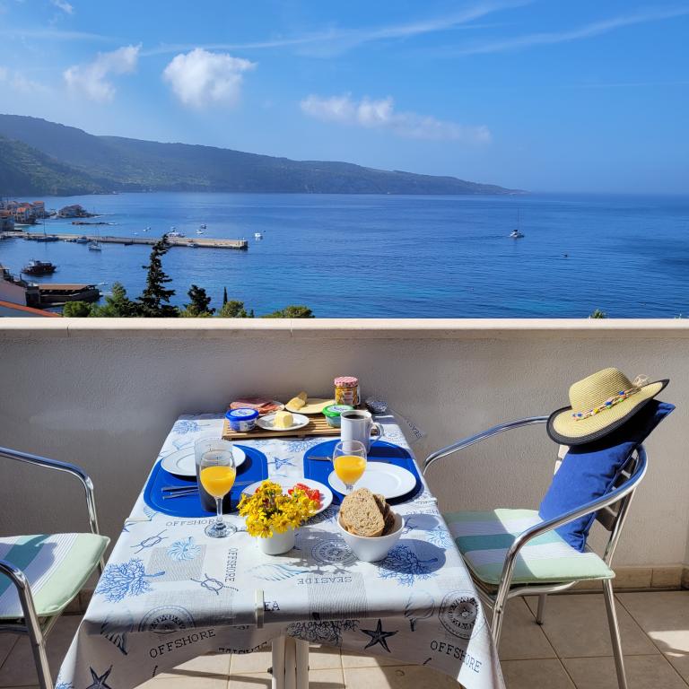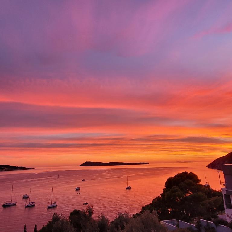 A Kolelastra ház a városi strand feletti dombon, zöld környezetben található (5 perc séta a fenyvesparkon keresztül a strandig, és mindössze 8-10 perc séta a Riváig, azaz a központig). A kedvező elhelyezkedésnek köszönhetően a Kolelastra ház összes apartmanjából széles kilátás nyílik az egész öbölre egészen az olasz hegyekig, amelyek jó időben is láthatók. A csatolt fotók hiteles kilátást nyújtanak az egyes apartmanok erkélyéről, és örömmel osztjuk meg azokat Önökkel, mert minket is gyakran lenyűgöznek a tüzes színek vagy az előttünk álló ezüst. Az apartmanok mindennel felszereltek, amire egy embernek szüksége van egy kellemes tartózkodáshoz és nyaraláshoz (a konyharuháktól a fagyasztókig). A házhoz saját parkoló tartozik a zöldövezetben, és egy 100 m3-es víztartály is tartozik, így száraz időjárás esetén a vendégek semmilyen módon nem fogják érezni a vízhiány esetleges kockázatát. Amit a vendégek különösen kiemelnek az értékeléseikben: a gyönyörű kilátást az összes apartman erkélyéről, a kifogástalan tisztaságot, a funkcionális felszereltséget és a barátságos házigazdákat.