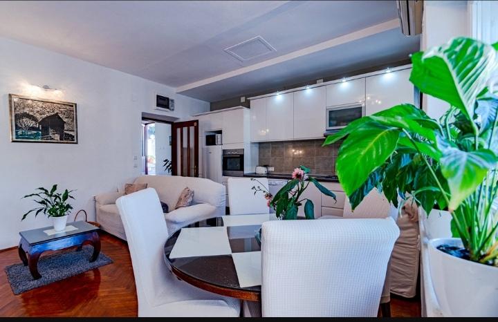 Luxus és teljesen felszerelt apartman 4 fő részére, közvetlenül a strand és a sétány közelében található. Az óváros hét percre található a lakástól. Az apartmanhoz tengerre néző terasz tartozik. A lakás első sorban található a tenger felé, közel minden kényelmi szolgáltatáshoz, és elég messze, hogy elkerülje az út zaját. A lakás négy fő számára alkalmas, és parkolási helyet biztosít a helyi garázsban, amely néhány percnyire van az apartmantól. A lakás 68 m2-es, 4 fő elszállásolására alkalmas.