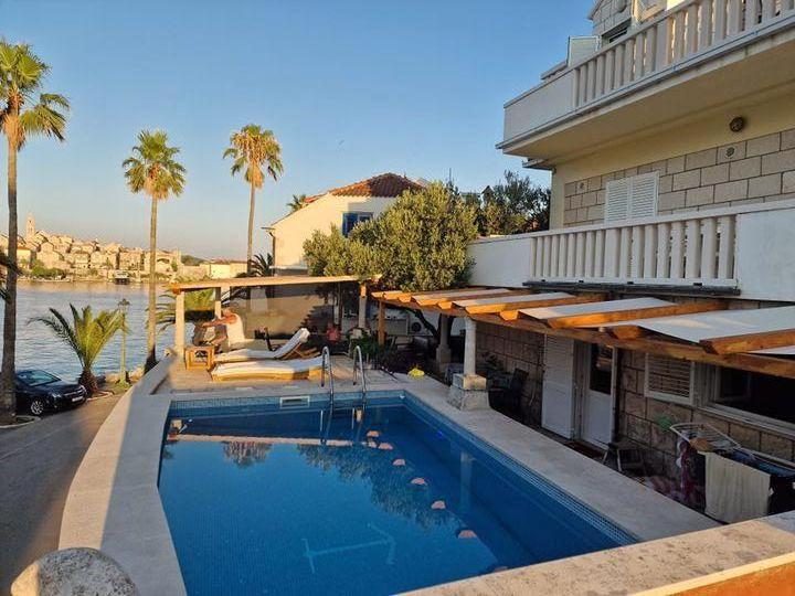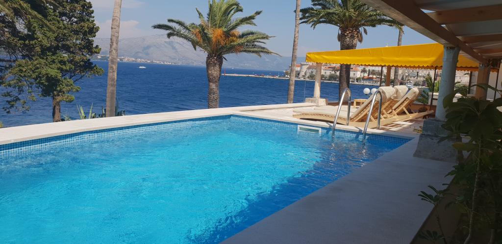 Az ID 759 apartman 86 m2-es. Luxusan berendezett és Korčula városának gyönyörű tengerparti részén található. Az apartmanhoz saját úszómedence, két nagy terasz és egy napozóterasz tartozik. Az apartmanban minden megtalálható, amire egy nyaraláshoz szüksége lehet. Két légkondicionáló, egy nagy fürdőszoba, két TV, kellemes, kényelmes tér, két szoba, és saját parkolóhely a járművének. Szó szerint 5 perc sétára van a városközponttól és 2 percre a strandtól. A teraszon grillezési lehetőség is biztosított a gasztronómiai élvezetekhez. Az apartmanban mosógép és szárítógép, mosogatógép, két kávéfőző, kenyérpirító, gyümölcslékészítő stb. található. Teljesen és modernül felszerelt apartmanok Korčula városának csendes részén, a tengertől első sorban; A létesítmény 5 perc sétára található a városközponttól, a strand és a parkolás közvetlenül előtte található. Az ID 760 és ID 761 apartmanok és szobák, valamint az ID 5589 és ID 5599 szobák luxus színvonalúak. A hátsó terasz pergolával és ponyvával van borítva. Saját parkolóval rendelkezik. Gépjárművek parkolása csak az apartmanok számára lehetséges.