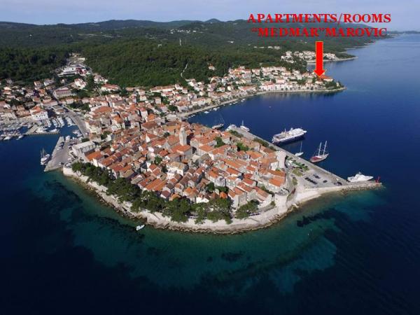 A feleségem és én utazik Korcula szeptember végén és volt szerencsénk már lefoglalt Medmar Marovic. A szobában, amire szükség van a jó zuhany és egy kis konyha. Mi különösen szerette az erkélyen a hihetetlen kilátás nyílik a hegyre a vízen és Korcula óvárosától. Valóban lenyűgöző, ami egy nagyon emlékezetes élmény. Azt nagyon ajánlom.