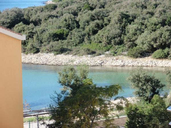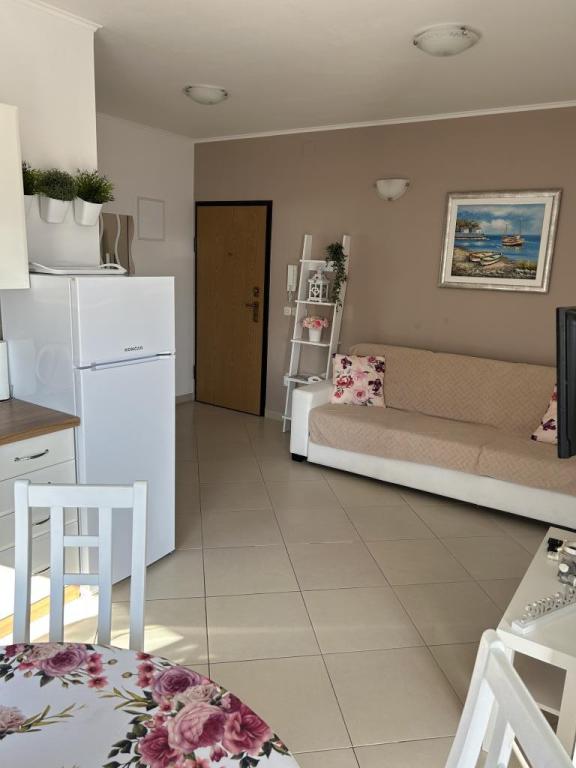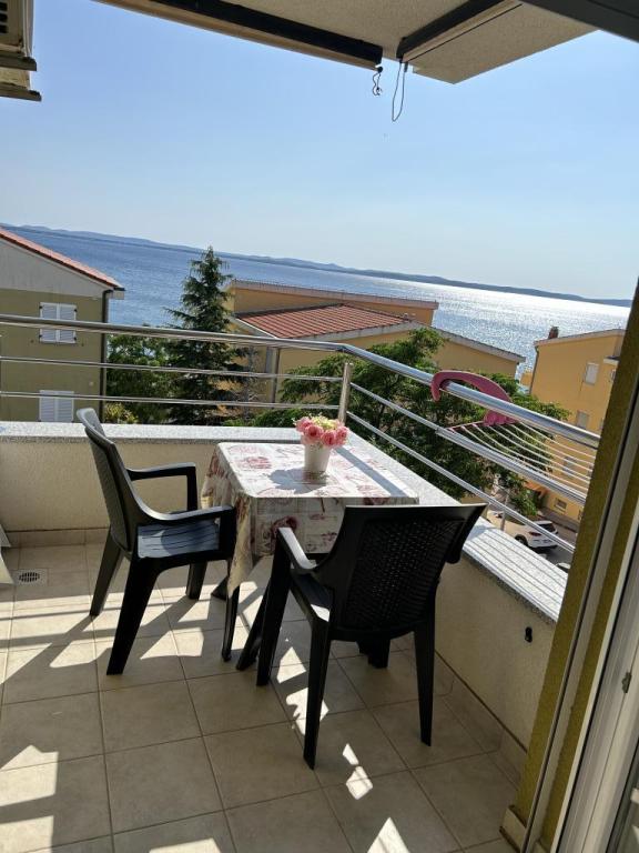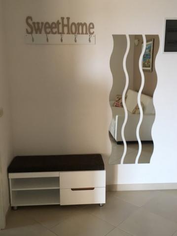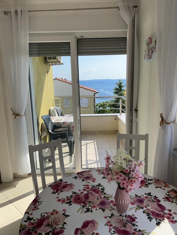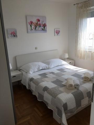 Modern apartman egy csendes lakóépület harmadik emeletén, gyönyörű kilátással a tengerre. Az apartmanban egy hálószoba franciaággyal, egy kihúzható kanapé, egy teljesen felszerelt konyha és egy terasz található gyönyörű kilátással a tengerre. Az apartman 50 méterre található a tengertől és a strandtól.