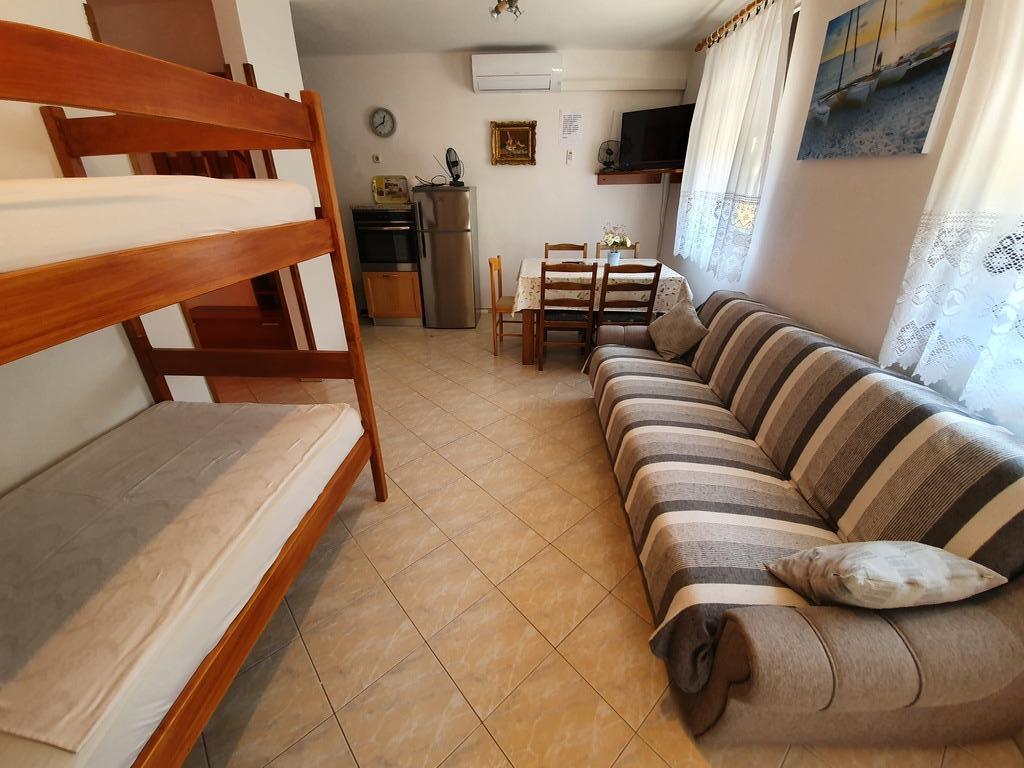 Az Apartments Jažo meghívja Önt, hogy töltse nyaralását Pašman szigetén, Kraj városában. Öt apartmanban kínálunk szállást. Minden apartmanban hálószoba, fürdőszoba, teljesen felszerelt konyha, nappali, TV, légkondicionáló, ágynemű, törölköző, pótágyak és terasz található. Parkolóhely biztosított, az udvaron grillező és pavilon a társasági élethez. Az apartmanok 8 perces sétára találhatók a legközelebbi Tratica strandtól, amely ideális kisgyermekes családok számára.