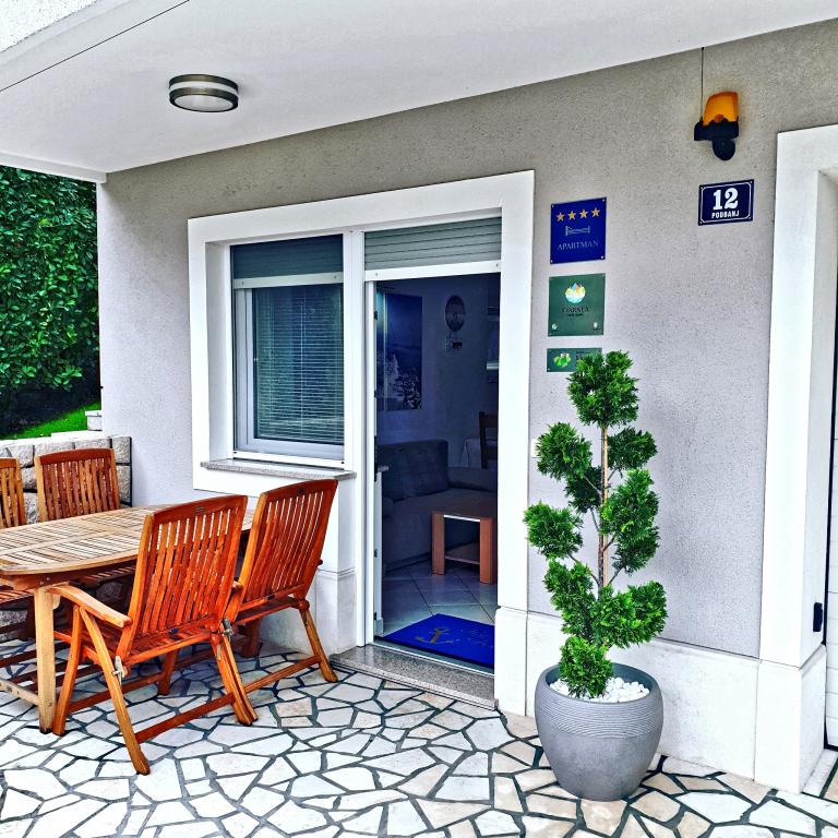 A május elsejei ünnepek alatt 4 éjszakát (5 napot) töltöttünk az apartmanban. A házigazdák csodálatos emberek, készek segíteni tanácsokkal, ajánlásokkal és minden mással. Az apartman remek helyen található, közel a strandokhoz (5 perc séta a kövezett úton), a gyönyörű kilátást nyújtó sétaösvényekhez (a Scott-öbölhöz, világítótoronyhoz...) és Kraljevica közelségéhez (4 perc autóval). A Krk felé vezető híd közelében található, így kirándulást tehet a szigetre. Volt velünk egy kutyánk, mivel itt szívesen fogadjuk a házi kedvenceket. Előnye az is, hogy minden be van kerítve, így a kutya szabadon rohangálhat az udvaron és az autó is biztonságosan parkolhat. A lakás mögött gyönyörű grillezési lehetőség (nyári konyha, kandalló), esőben is, mivel a tető alatt van és egy nagy medence, ha nem szereti a strandot. A lakás színvonalon felül felszerelt (mosogatógép, mosógép, kávéfőző, széf) és még szebb, mint a képeken. Összességében a lakás nagyon szépen berendezett. Határozottan ajánljuk.