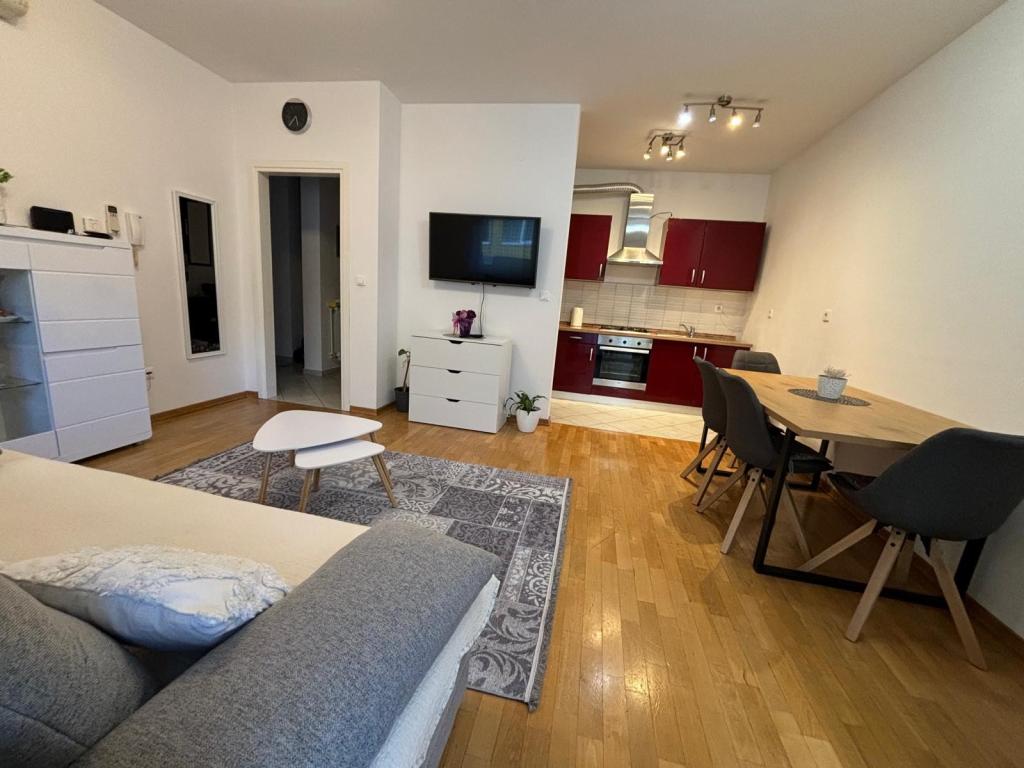 Az Apartment Dora Krapinske Toplice központjában található, közel minden fontos szolgáltatáshoz. 100 méterre az Aquae Vivae Termálfürdőtől, gyógyszertártól, klinikától. Bolt és bankautomata 50 méterre, Rehabilitációs Kórház, Magdalena szívsebészet, Acromion-ortopédia 200 méterre található. Az 50 m2 alapterületű lakás egy modern, liftes lakóépület 2. emeletén található. Ingyenes parkolás és WI-FI internet áll az apartmanok használói rendelkezésére.