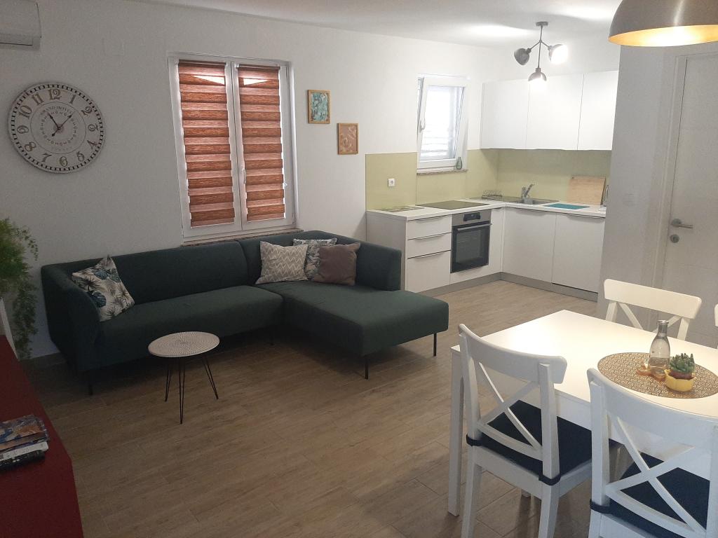A frissen felújított apartman egy családi ház földszintjén található Krk központjában. Az apartmanban két hálószoba, egy gazdagon felszerelt konyha étkezővel, egy nappali, egy fürdőszoba és egy terasz található grillezővel. A szállás ára tartalmazza az ingyenes wifit és a saját parkolót a létesítmény mellett. Az apartman elhelyezkedése rendkívül vonzó, mert nincs szüksége autóra Krk-i tartózkodása alatt. Az apartman közel található minden szükséges kényelmi szolgáltatáshoz, amit gyalog is meg lehet látogatni (strand, bolt, étterem, régi városközpont). Az alapfelszereltségű gépeken kívül mosogatógéppel és mosógéppel, valamint klímával felszerelt a lakás. Háziállat nem megengedett.