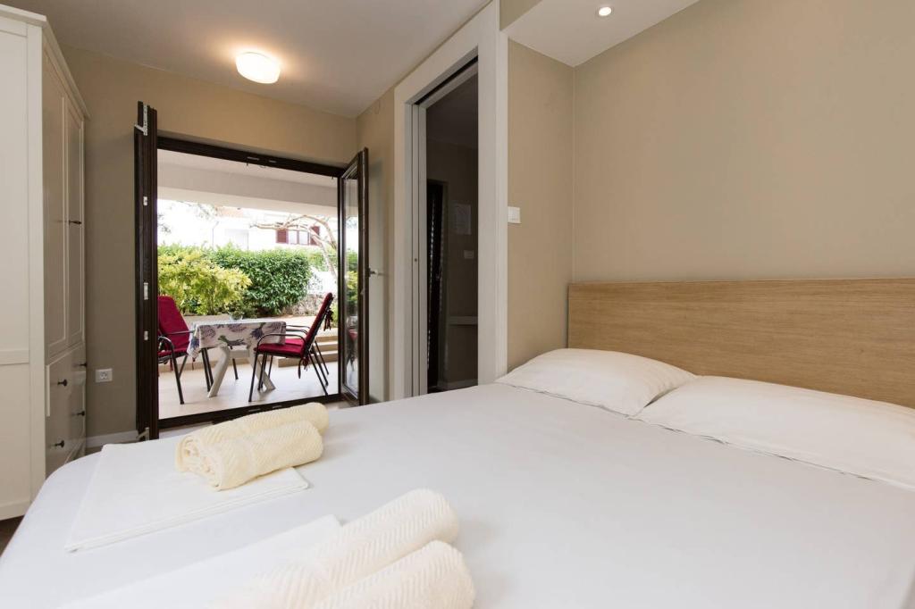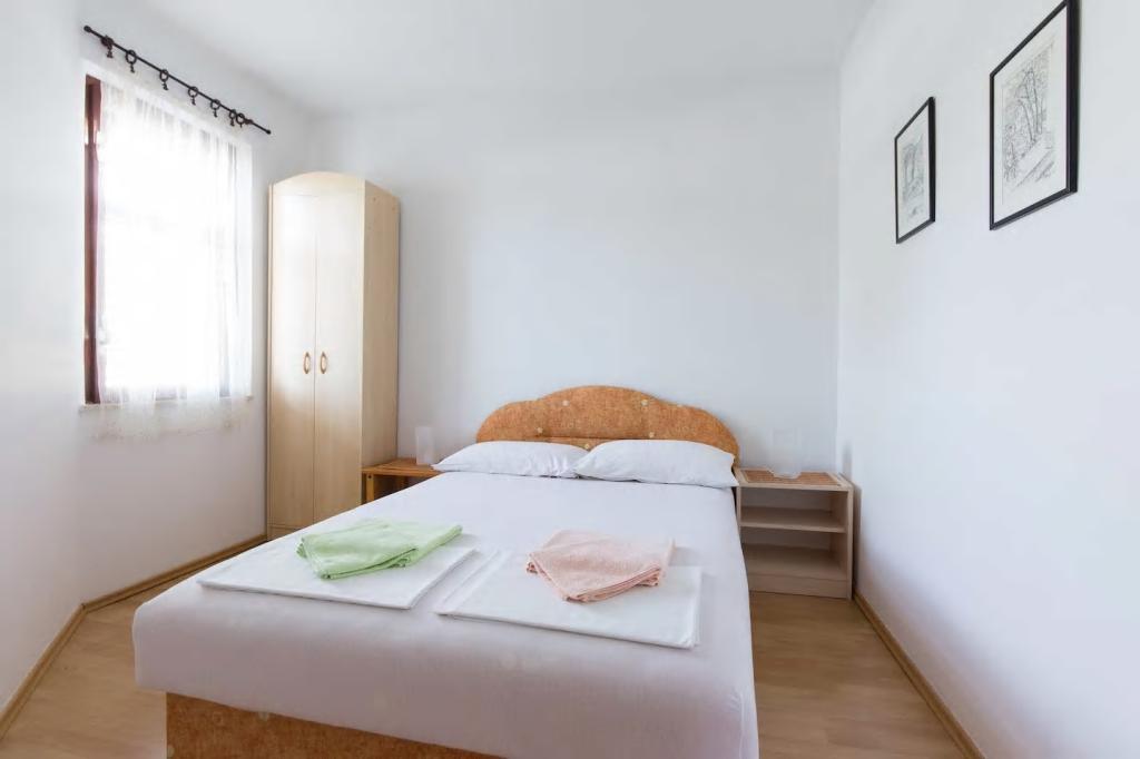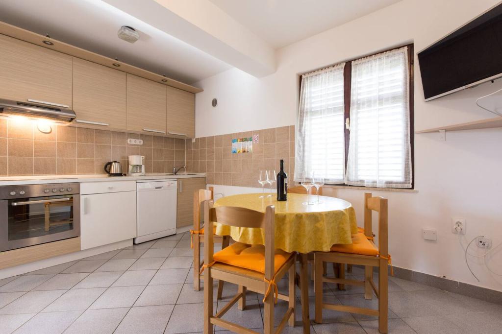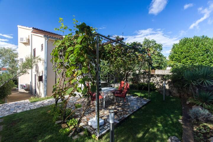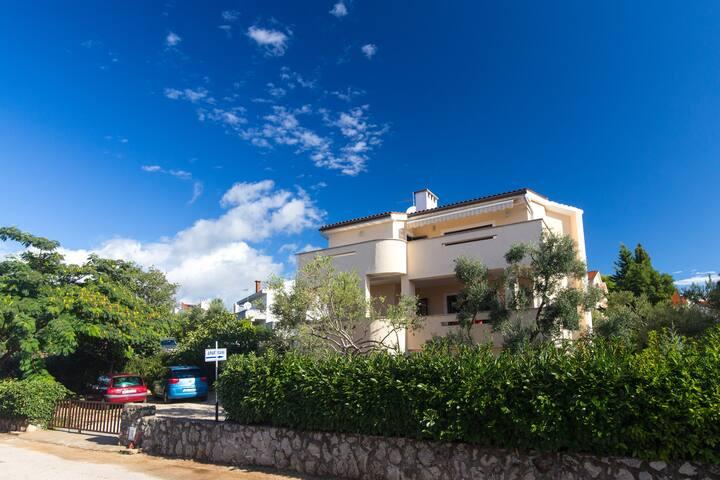 Apartmanjaink Krk városában találhatók, 200 m-re a strandtól (5 perc séta), és 900 m-re a város kulturális és történelmi központjától (15 perc séta). A közelben kavicsos, sziklás és homokos strandok és sportolási lehetőségek találhatók. A 3-as apartman 22 m2-es (stúdió) 2 fő részére alkalmas. Az apartman az első emeleten található, külön bejárattal, és a kertre nyílik, ahol csak a 3-as apartman vendégei állnak rendelkezésre ülőhelyek. Az apartman stúdió alaprajzú, franciaággyal 160x200 (2 fő részére). Fürdőszoba zuhanykabinnal és teljesen felszerelt konyha étkezőasztallal, hűtővel mélyhűtővel, tűzhellyel (elektromos), mikrohullámú sütővel, filteres kávéfőzővel, vízforralóval, evőeszközökkel. A lakásban van még: kábel TV, ingyenes WiFi lapos Internet, és kézi vezérlésű klíma, értéktár/személyes iratszéf.