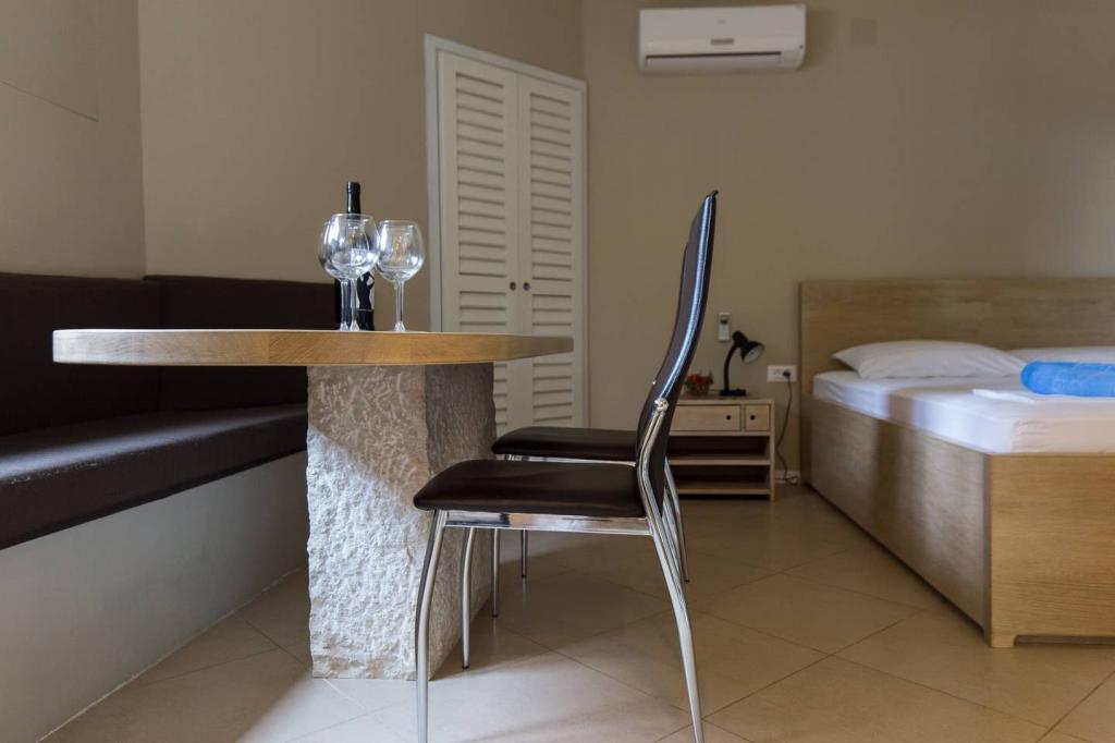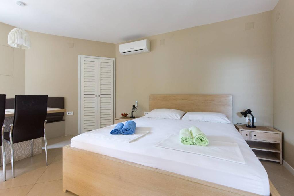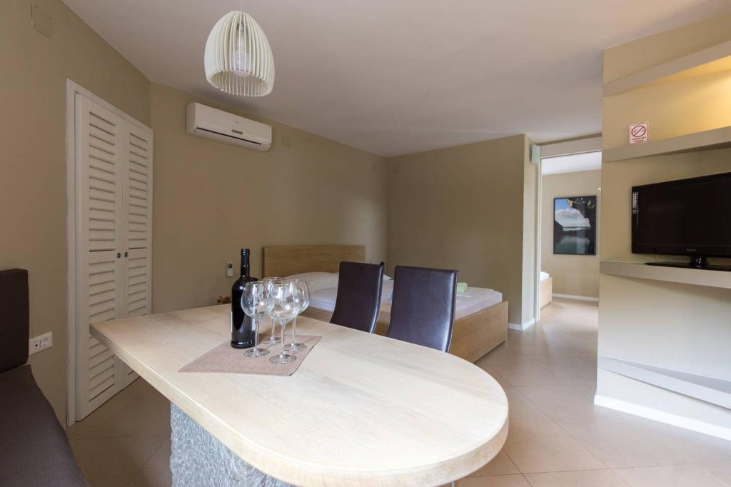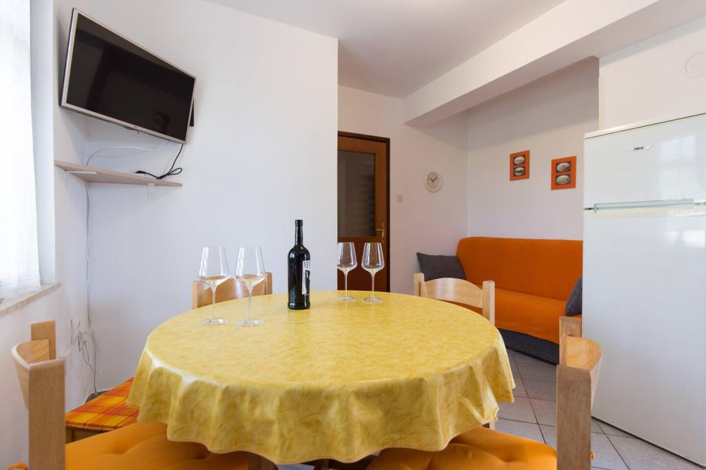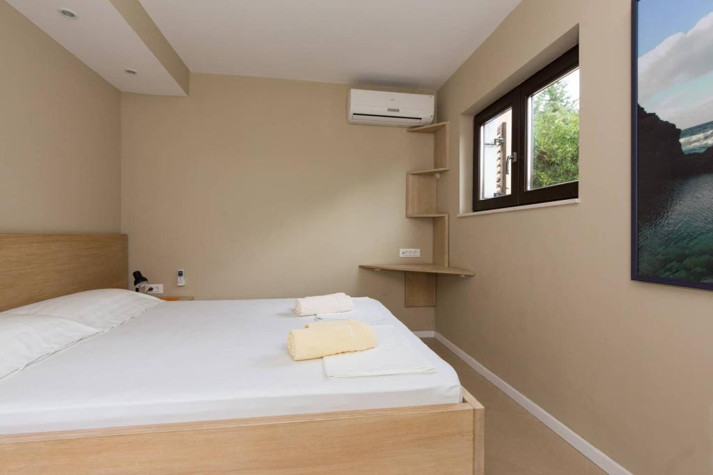 Apartmanjaink Krk városában találhatók, 200 m-re a strandtól (5 perc séta), és 900 m-re a város kulturális és történelmi központjától (15 perc séta). A közelben kavicsos, sziklás és homokos strandok és sportolási lehetőségek találhatók. A 3-as apartman 22 m2-es (stúdió) 2 fő részére alkalmas. Az apartman az első emeleten található, külön bejárattal, és a kertre nyílik, ahol csak a 3-as apartman vendégei állnak rendelkezésre ülőhelyek. Az apartman stúdió alaprajzú, franciaággyal 160x200 (2 fő részére). Fürdőszoba zuhanykabinnal és teljesen felszerelt konyha étkezőasztallal, hűtővel mélyhűtővel, tűzhellyel (elektromos), mikrohullámú sütővel, filteres kávéfőzővel, vízforralóval, evőeszközökkel. A lakásban van még: kábel TV, ingyenes WiFi lapos Internet, és kézi vezérlésű klíma, értéktár/személyes iratszéf.