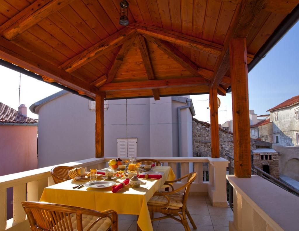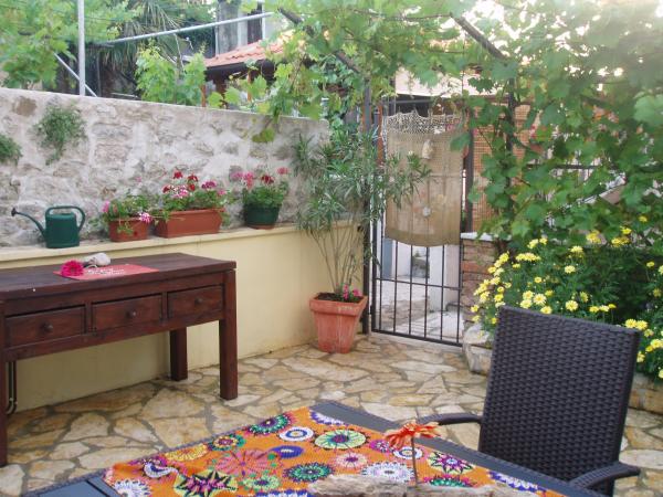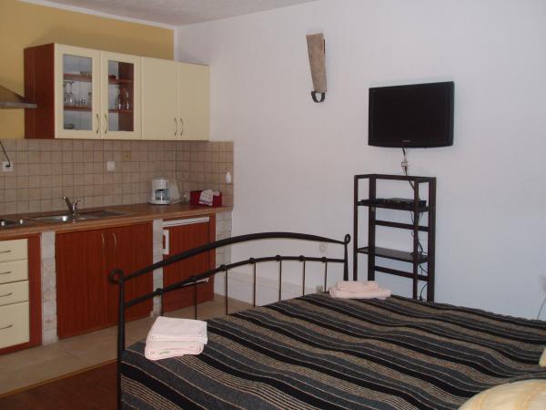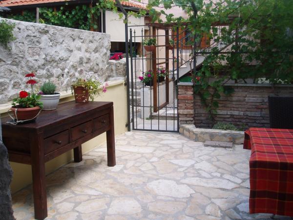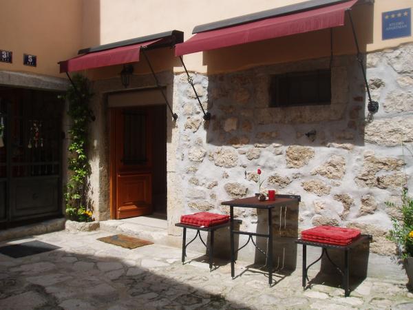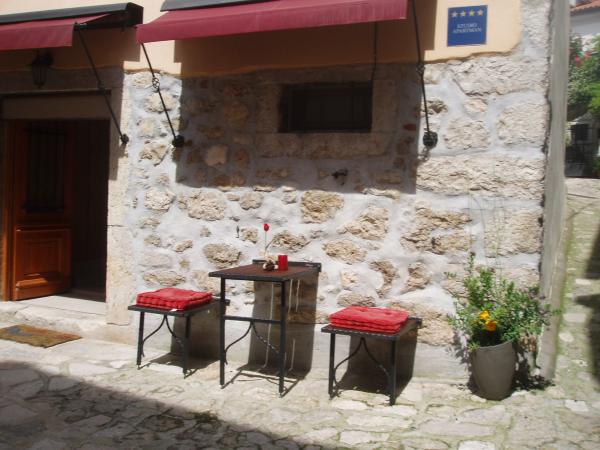 Krk központja, városi villa. 4 csillagos, rusztikus stílusban berendezett apartmanok, modern berendezéssel, konyhával, klímával, TV-vel. A villa az óváros szívében, az utca csendes részén található, mindössze 70 méterre a strandtól. Parkolás a közelben saját parkolóban.