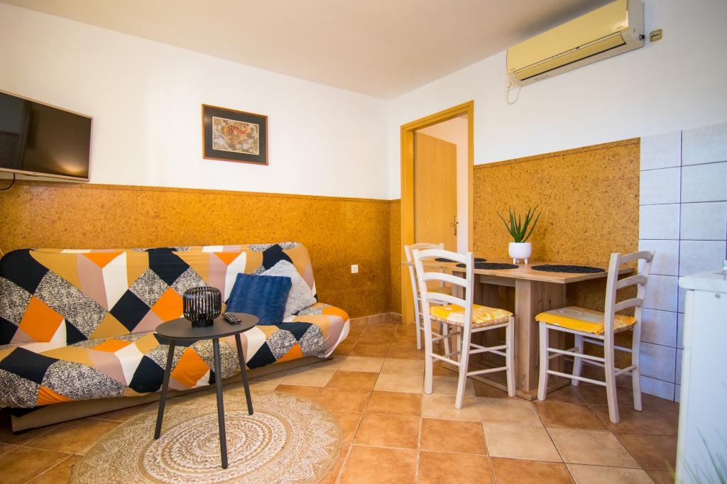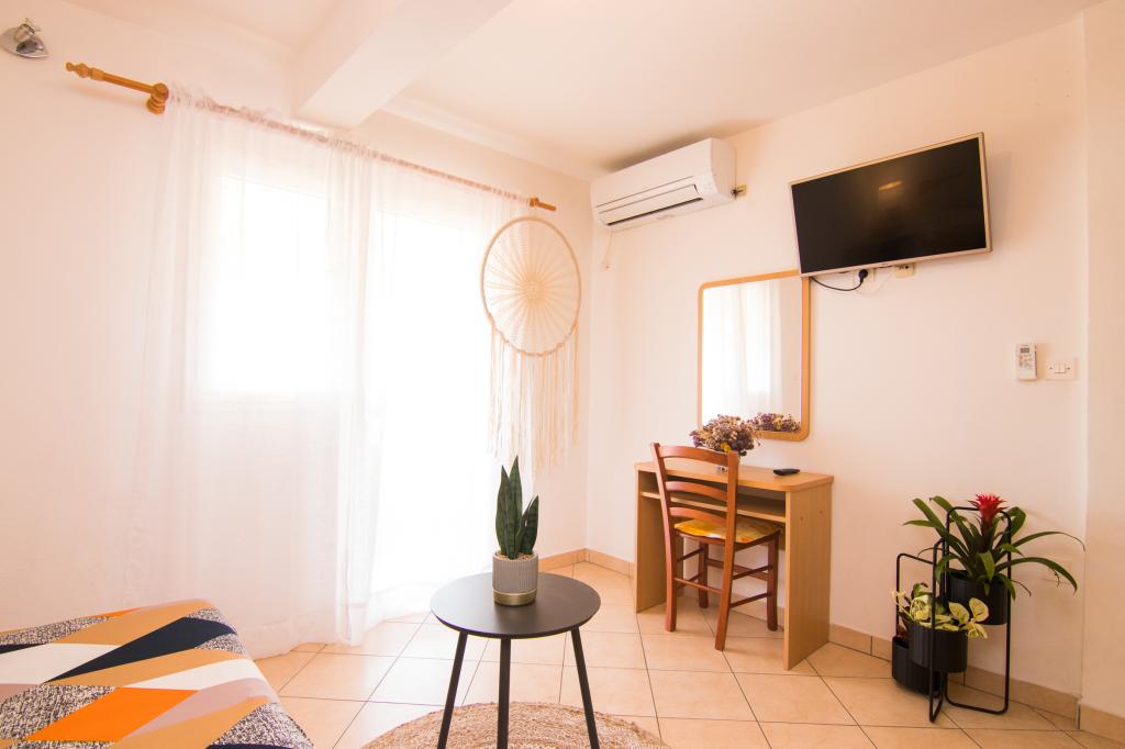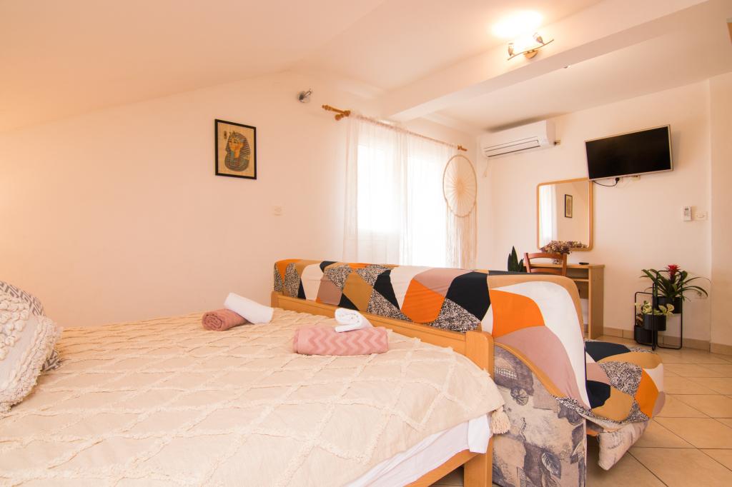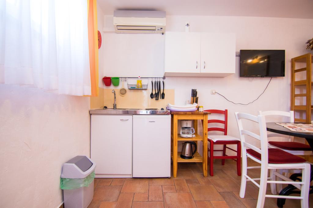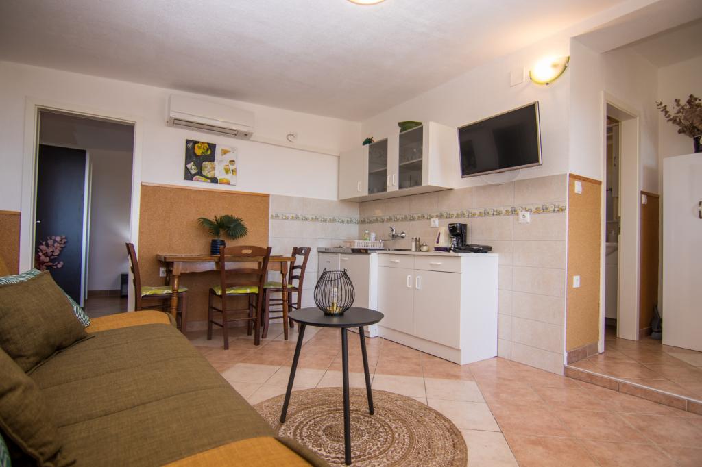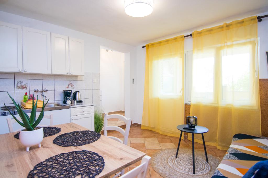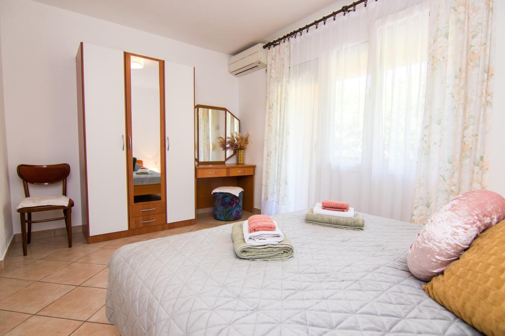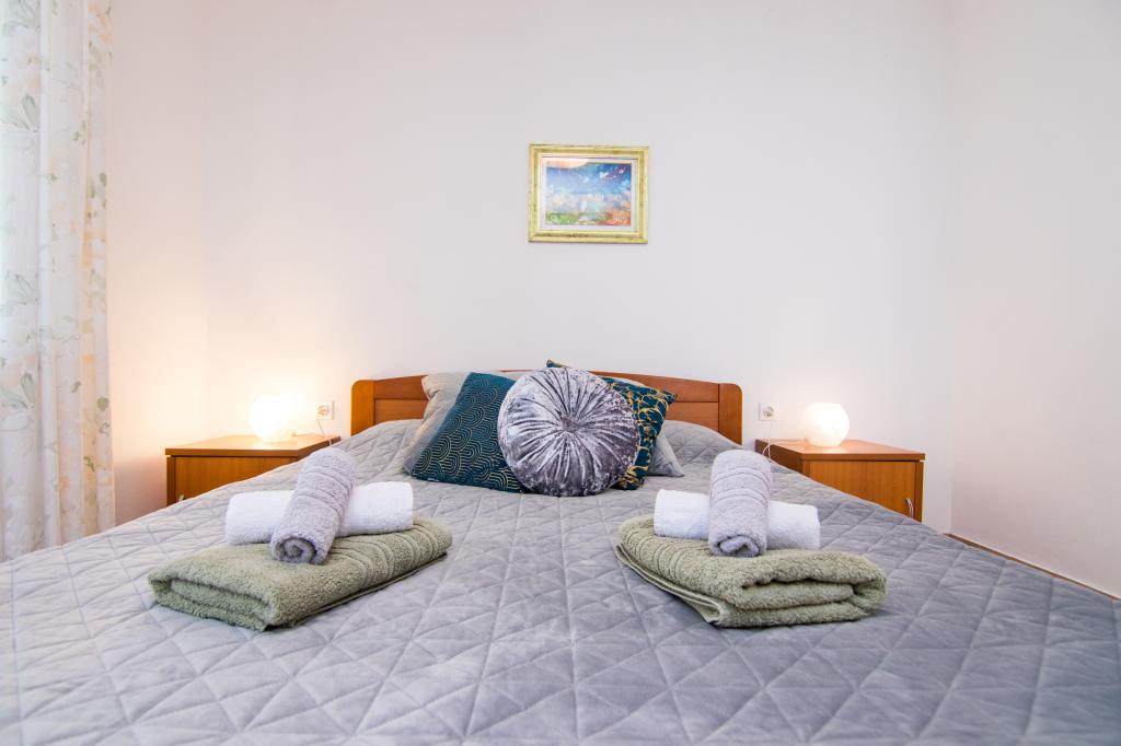 A ház a város központjában található, mindössze 90 méterre a tengertől és egy gyönyörű sétánytól, számos étteremmel, kávézóval és egyéb szolgáltatásokkal. A ház közelében üzletek, bank, posta, gyógyszertár és hasonlók találhatók. A ház udvara tágas, ahol elegendő hely van a vendégek autóinak parkolására. Mediterrán növények és virágok veszik körül. A vendégek a ház mögött található közös grillezőt is használhatják. Minden apartmanhoz tartozik terasz vagy erkély, sőt néhányhoz két terasz vagy két erkély is tartozik. A környék csendes és biztonságos. Néhány apartmanból kilátás nyílik a tengerre. Minden egység légkondicionált, műholdas TV-vel, internettel és filteres kávéfőzővel felszerelt.