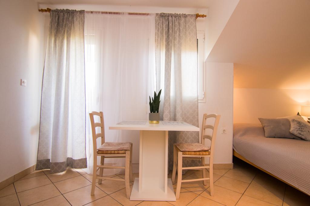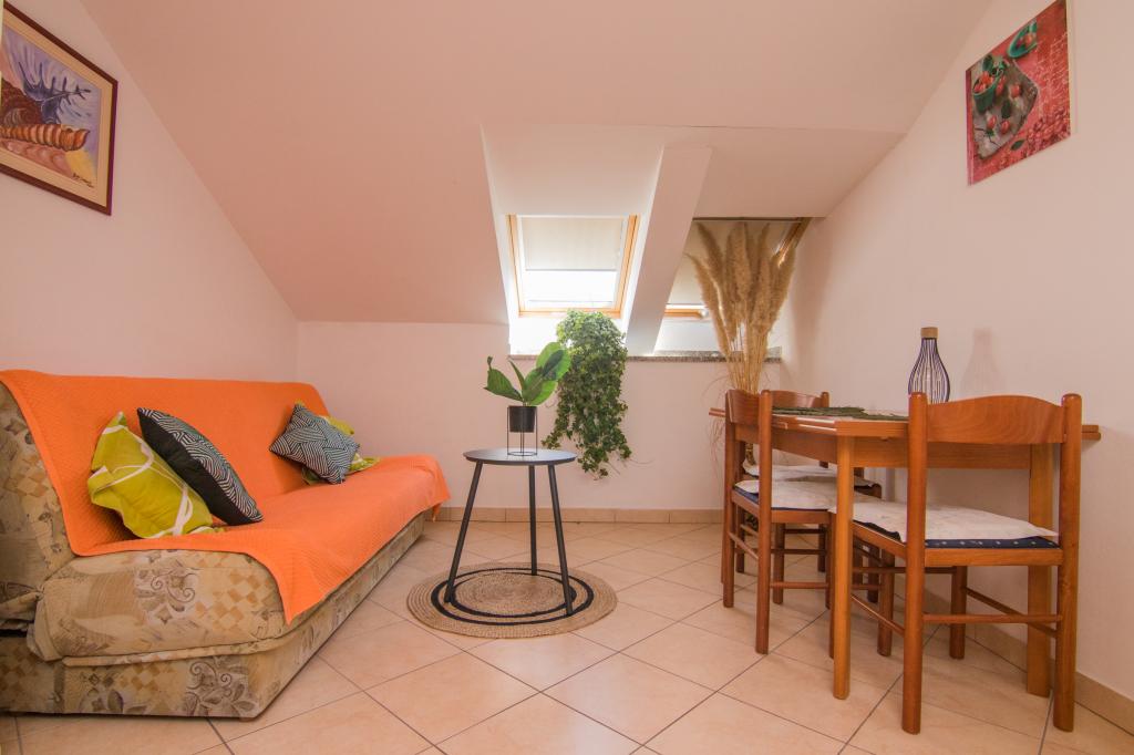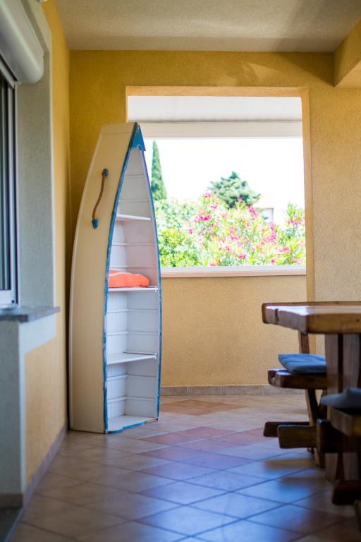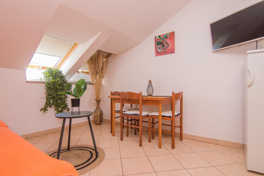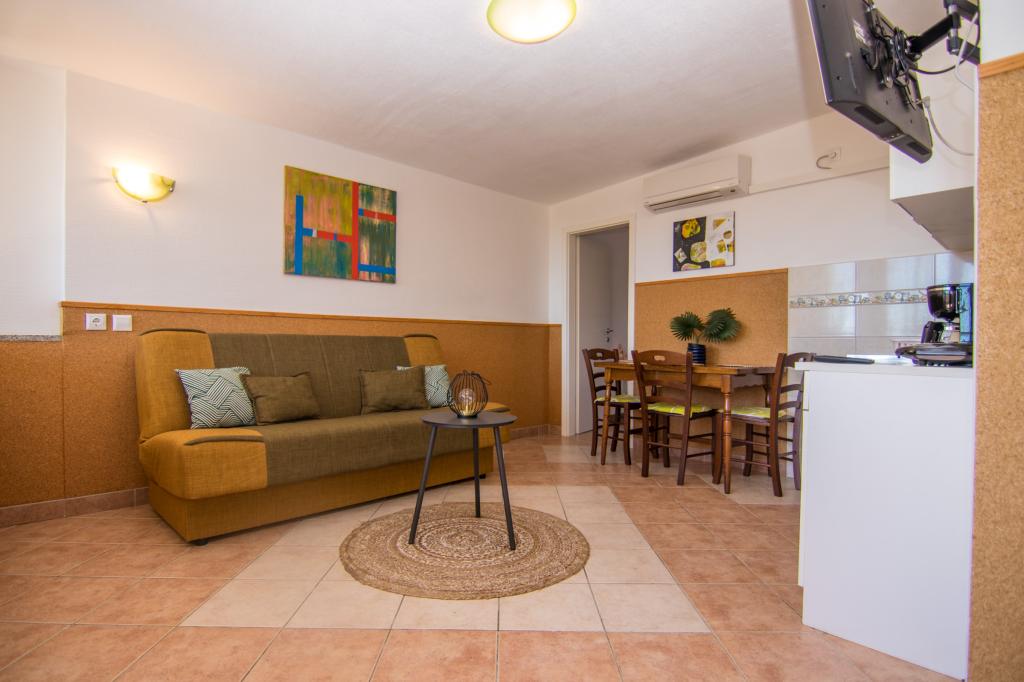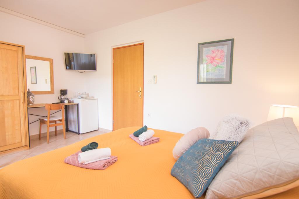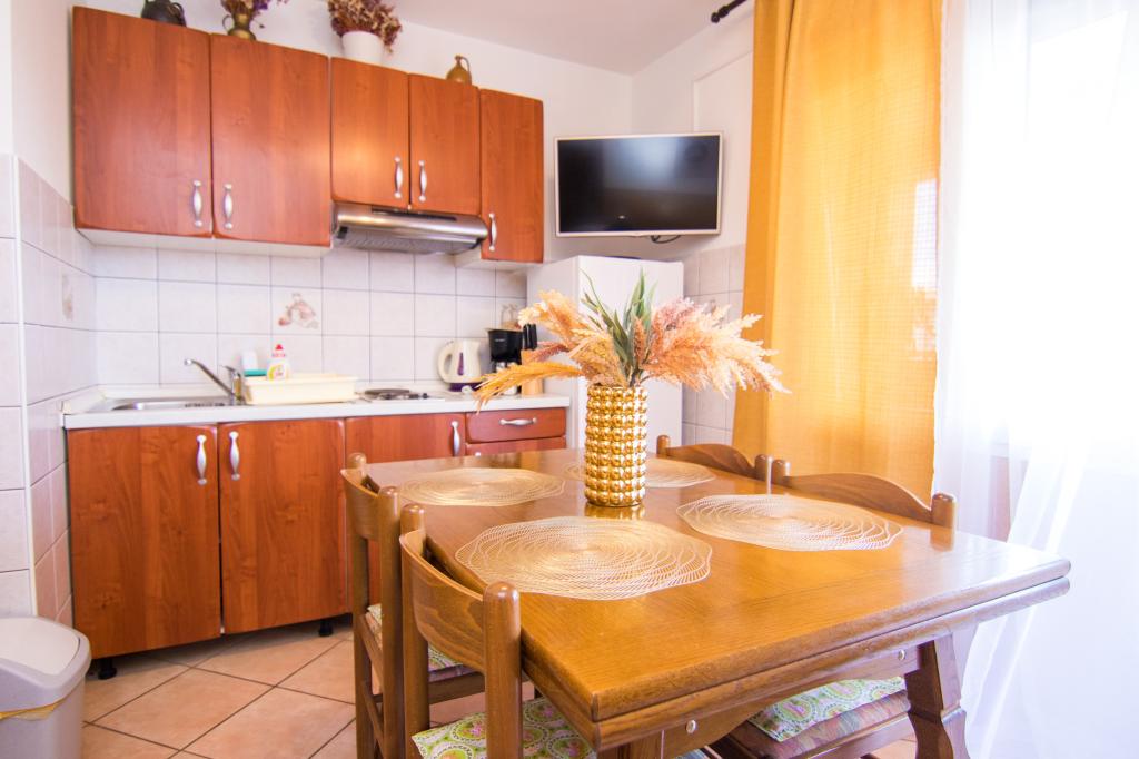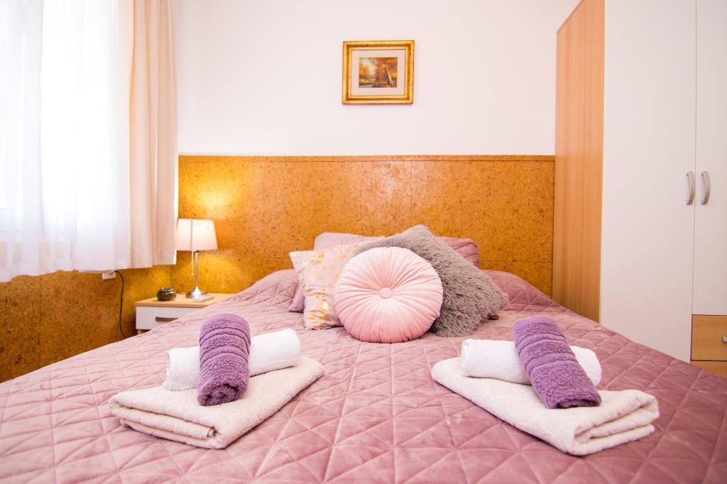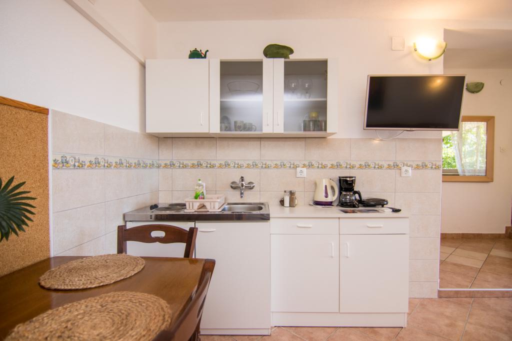 A ház a város központjában található, mindössze 90 méterre a tengertől és egy gyönyörű sétánytól, számos étteremmel, kávézóval és egyéb szolgáltatásokkal. A ház közelében üzletek, bank, posta, gyógyszertár és hasonlók találhatók. A ház udvara tágas, ahol elegendő hely van a vendégek autóinak parkolására. Mediterrán növények és virágok veszik körül. A vendégek a ház mögött található közös grillezőt is használhatják. Minden apartmanhoz tartozik terasz vagy erkély, sőt néhányhoz két terasz vagy két erkély is tartozik. A környék csendes és biztonságos. Néhány apartmanból kilátás nyílik a tengerre. Minden egység légkondicionált, műholdas TV-vel, internettel és filteres kávéfőzővel felszerelt.