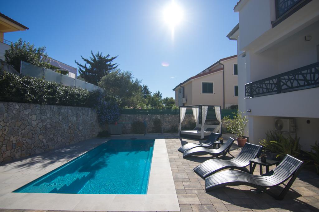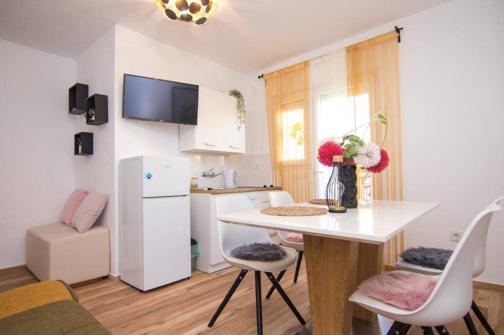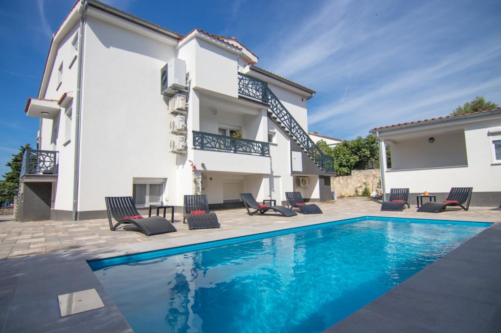 Ez a gyönyörű szálláshely kiváló helyen található, mindössze 400 méterre a strandtól és mintegy 500 méterre Krka óvárosának bejáratától, így ideális választás azoknak a vendégeknek, akik a tenger, a történelem és a város hangulatának kombinációját szeretnék élvezni. A szálláshely fantasztikus fűtött úszómedencével és napozóval várja a vendégeket, amely ideális a pihenésre és a nap élvezetére. Egyes egységek gyönyörű kilátást nyújtanak a tengerre, és tágas teraszokról nyílnak, míg mások erkéllyel rendelkeznek, vagy közvetlenül a medence mellett helyezkednek el, így tökéletesek azoknak a vendégeknek, akik a közösségi létesítmények közelében szeretnének lenni. Minden egység saját parkolóval, műholdas csatornákkal, ingyenes internettel, vízforralóval és filteres kávéfőzővel rendelkezik, biztosítva a vendégek kényelmes és praktikus tartózkodását.