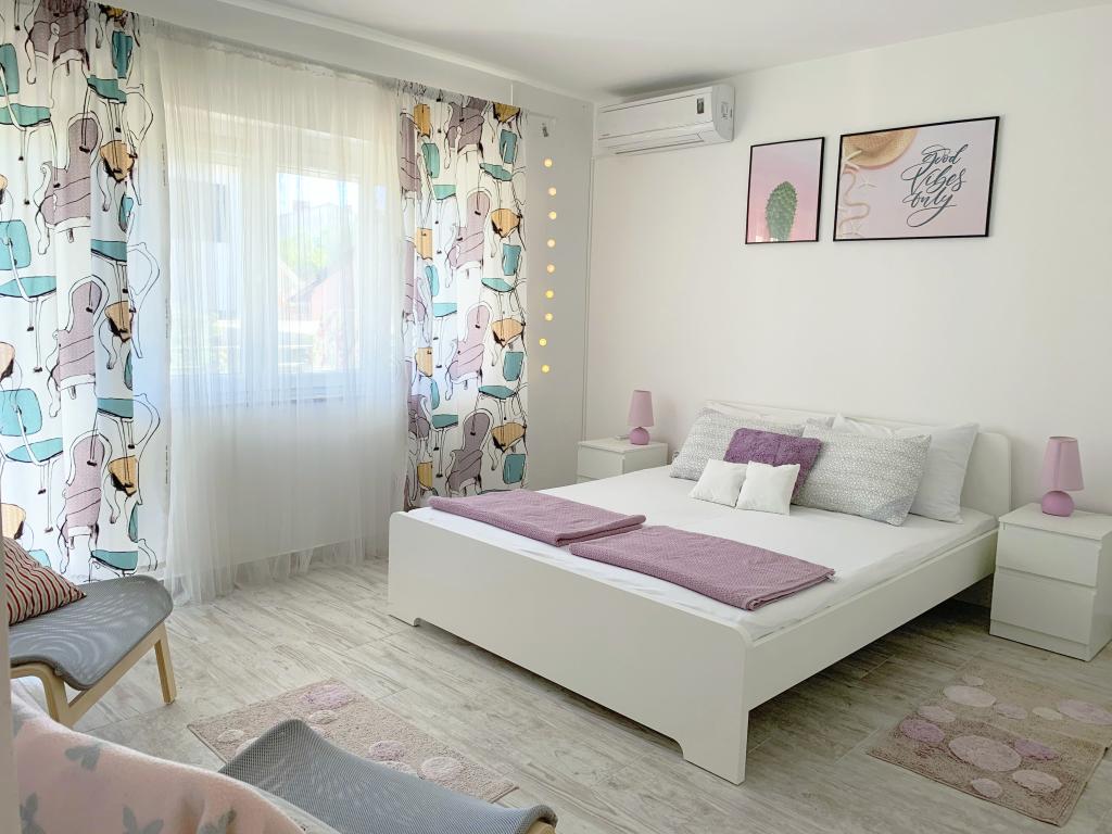 Ez a lakás teljesen felújított (2019) és új - konyhával, fürdőszobával és minden bútorral. A földszinten található, 5 percre a városközponttól. Nagy és tágas, egyik oldalán kis erkély, másik oldalán terasz található. Két hálószoba franciaággyal és egy nappali kanapéval. Mivel nyáron nagyon meleg lehet, két klímával ellátott lakást biztosítottunk. Ingyenes wifi elérhető :)
