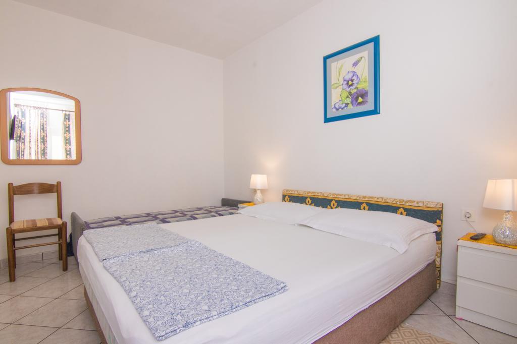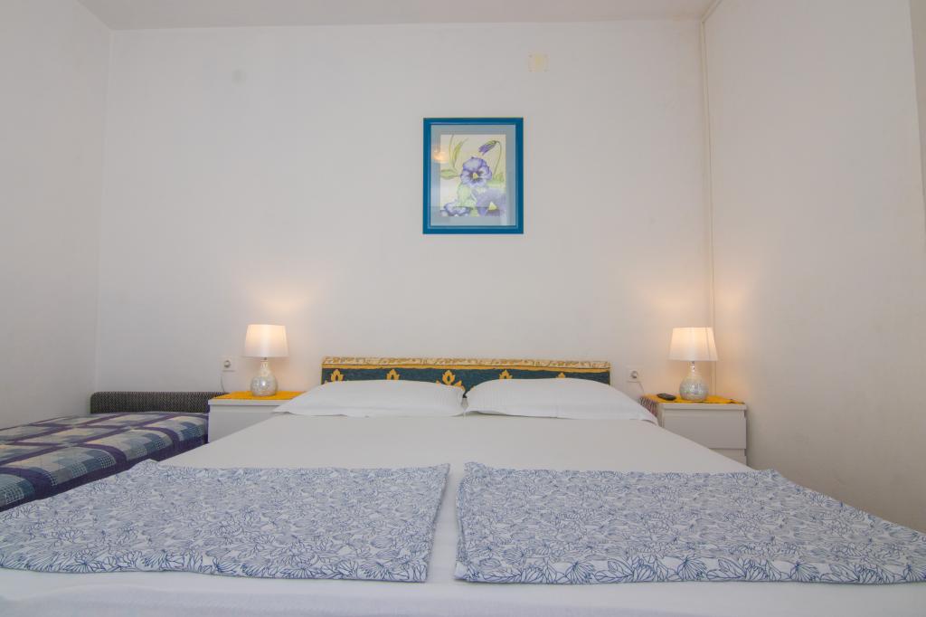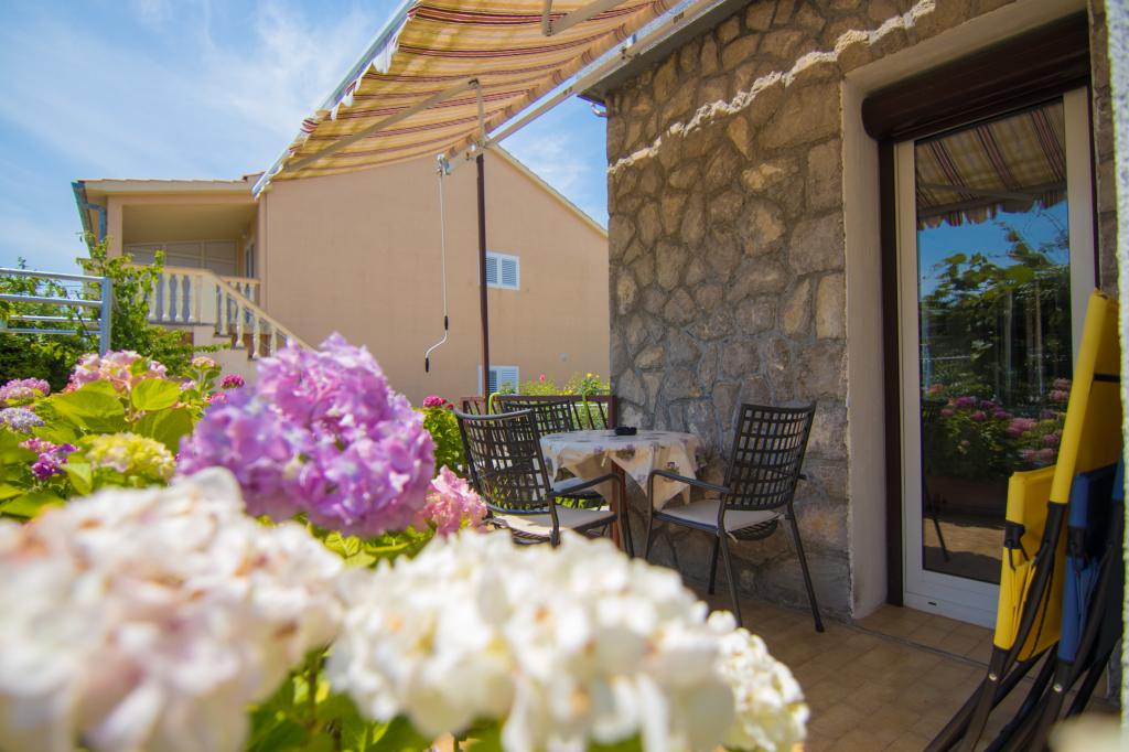 Az apartmanházunk Krk egyik csendes részén található. Az apartmanok a földszinten helyezkednek el, egymás mellett. Korszerűen felszereltek. Mindegyikhez saját terasz tartozik, hortenzia virágokkal körülvéve. , kilátással a kertre. A parkoló az udvarban van, napellenzővel borítva. A PLAV strand 2-3 perces sétára található a házunktól. A tulajdonosok a ház első emeletén laknak.