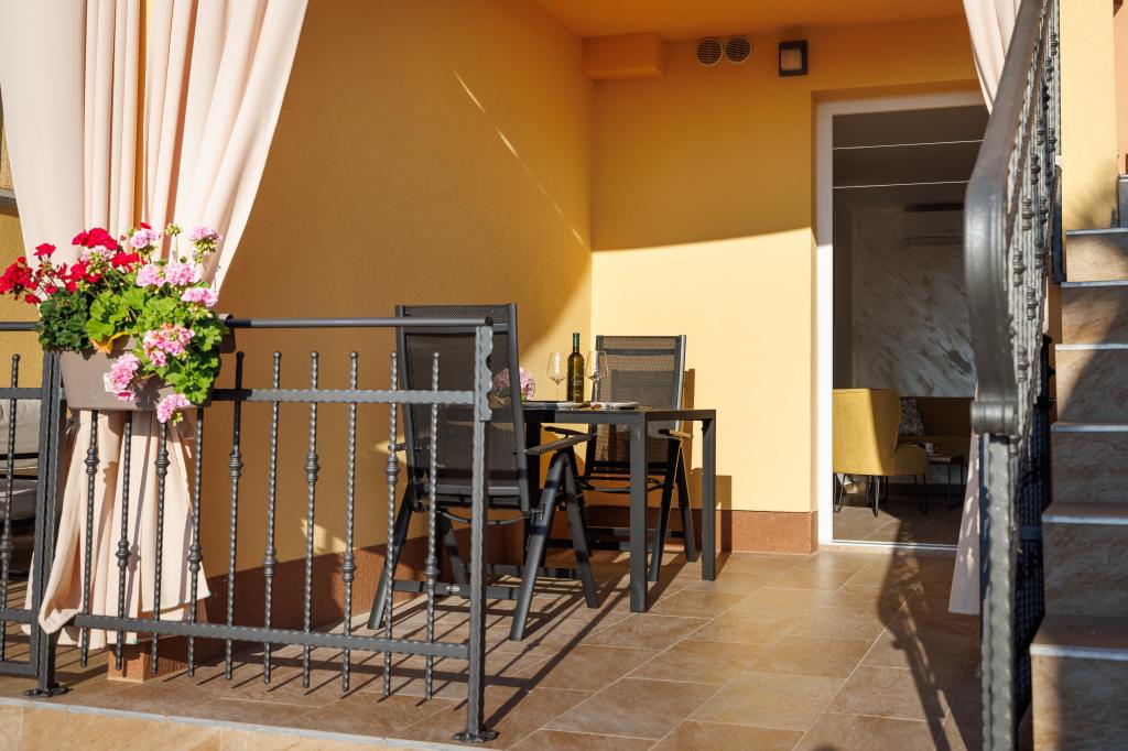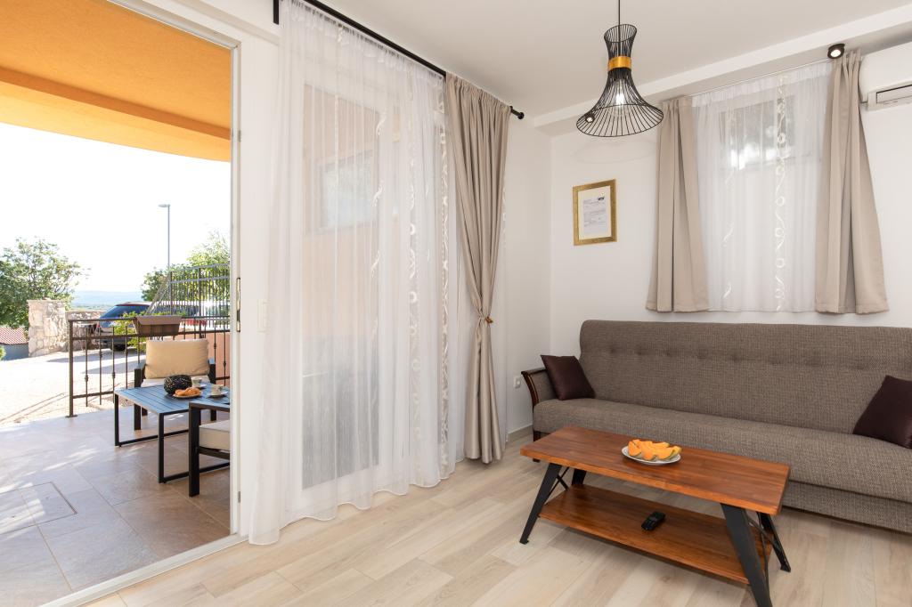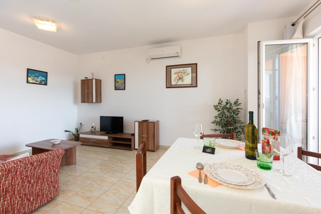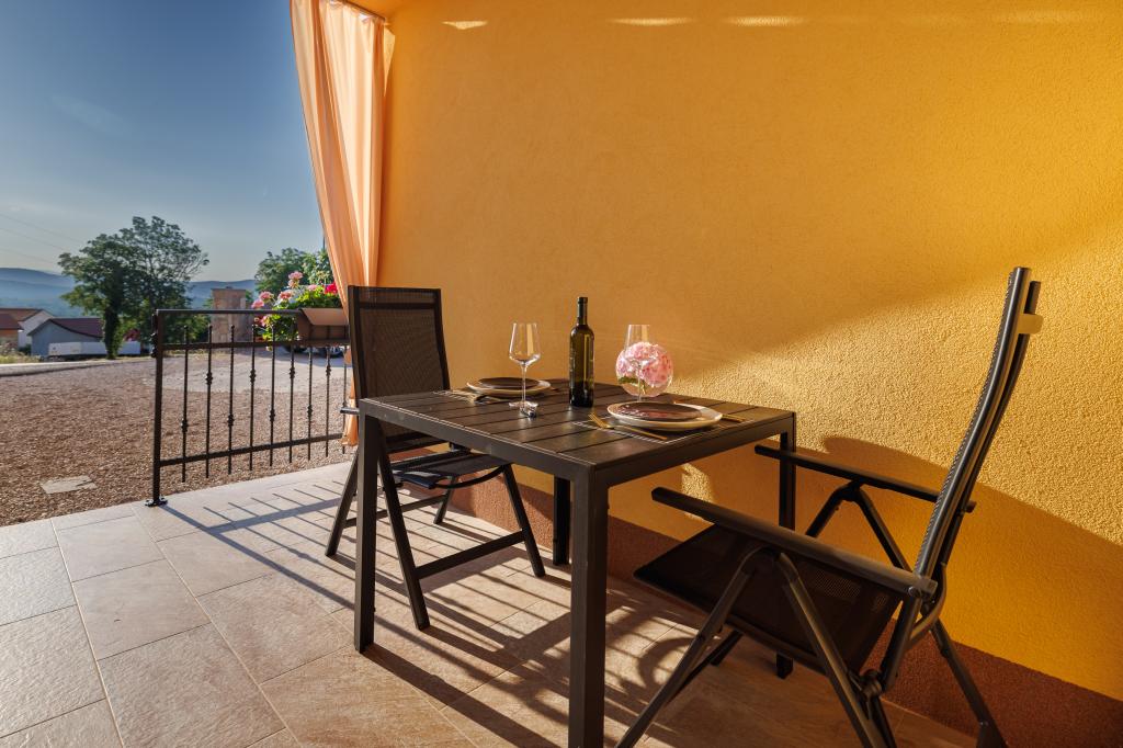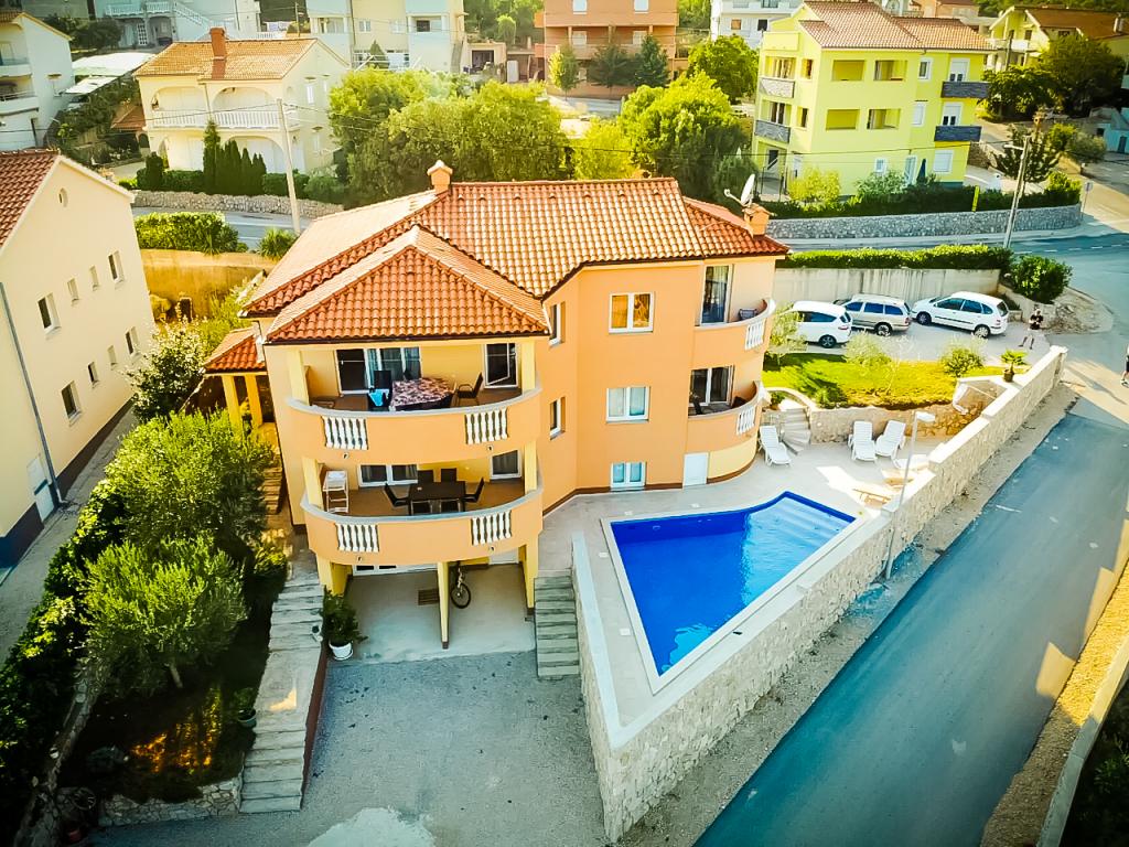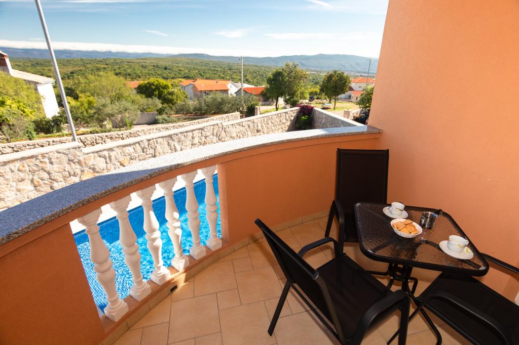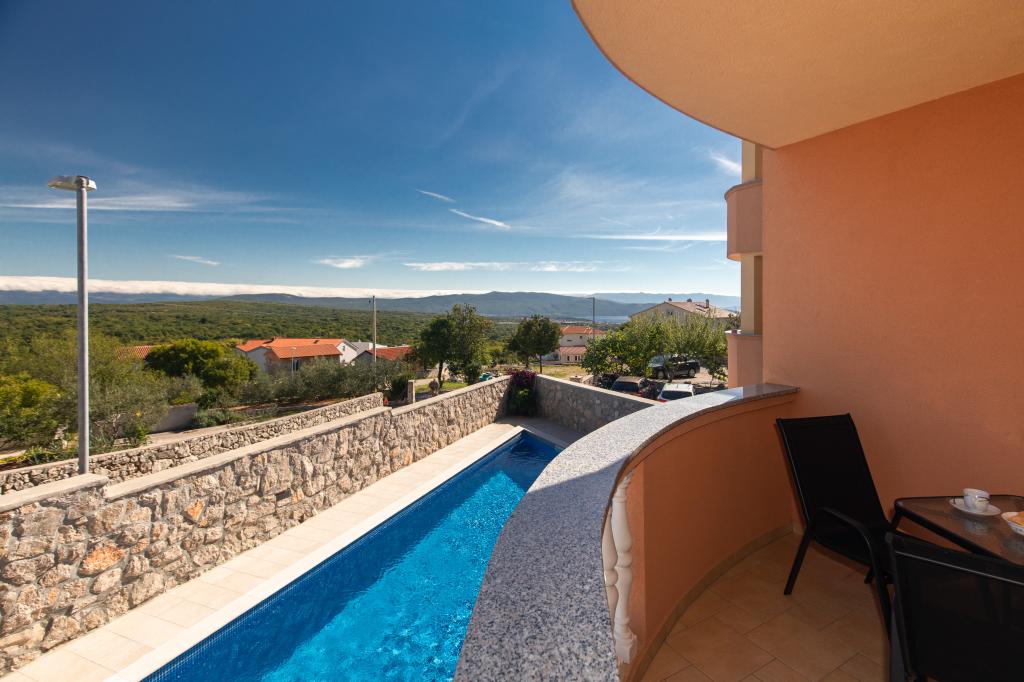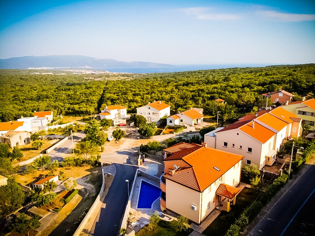 Salatić falu körülbelül 3 km-re található Krk városától, körülbelül 140 m tengerszint feletti magasságban, kellemes enyhe klímával és friss levegővel. Innen csodálatos kilátás nyílik Učkáról, Velebit felett egészen a csodálatos kék tengerig és a Kvarner-szigetvilágig (Golog otok, Grgura, Cres...) Az apartmanok egy (A2 2) vagy két (A4 2) kétágyas szobából állnak. , konyha, étkező , nappali, fürdőszoba és erkély. ) A már említett csodálatos kilátást nyújtó erkélyek tökéletes helyszínek a vacsorával egybekötött társasági élethez vagy egy csendes délutáni pihenéshez. Minden szükséges eszközzel fel van szerelve, ami még kellemesebbé és szebbé teszi az itt-tartózkodást. Egy nagy, sós vizű medencét is kínálunk, amely tökéletes hely a pihenésre, szórakozásra és a strandok tömegének elkerülésére. Az apartmanok mindössze 5 percnyi autóútra találhatók Krk központjától (3,5 km) és számos városi strandtól. A település nagyon jó közlekedési kapcsolattal rendelkezik, ami nagyban segíti a sziget vidéki részeinek felfedezését