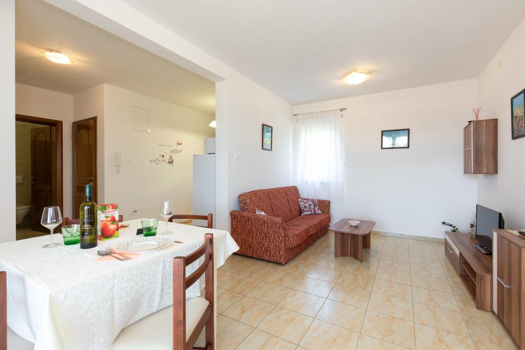 A 3 km-re Krk, kényelmes azok számára, akik azt jelenti, hogy mozog, a lakás felújított, felszerelt, minden amire szüksége lehet egy pihentető nyaraláshoz szervezett. A konyhában is van egy vízforraló és mikrohullámú sütő, valamint hűtőszekrénnyel és elektromos főzés. Vannak textíliák ágy, fürdőszoba és konyha, tisztítószerek és szappanok. Saját parkoló használatával vízzel autómosó. Barbecue. Tomislav és gyönyörű család számára rendelkezésre állnak, hogy meghallgassák az udvarias, anélkül, hogy tolakodó valaha! Ajánlott 3 felnőtt vagy 2 felnőtt és 2 kisgyermek, mert a kanapé nem kétszer.