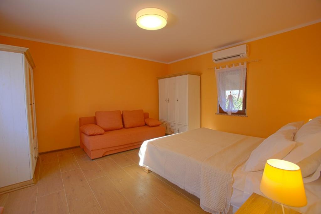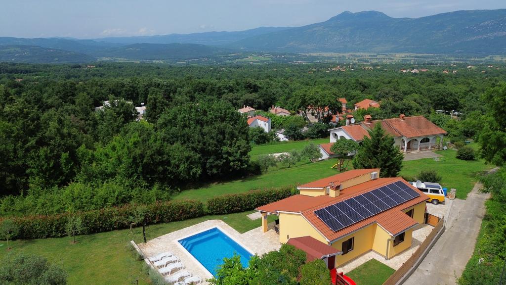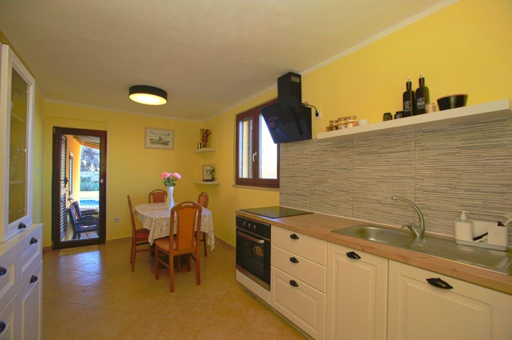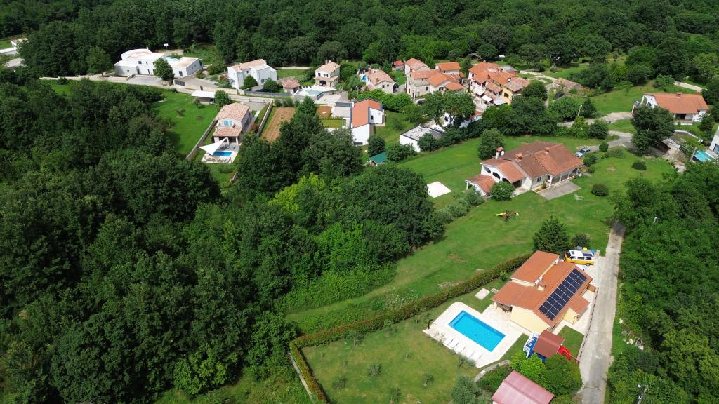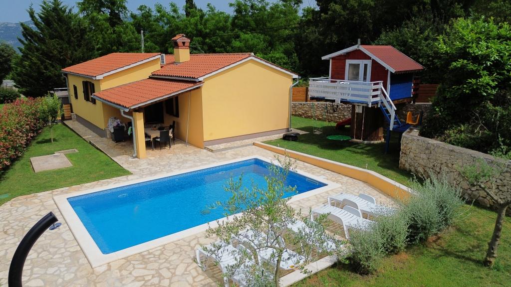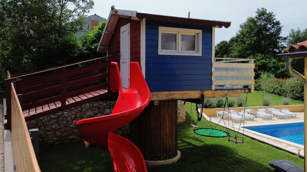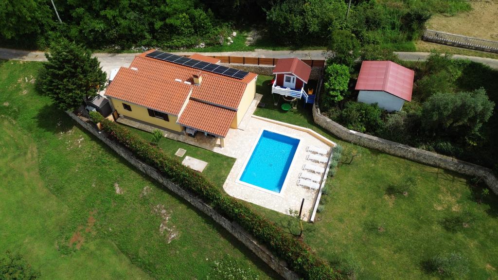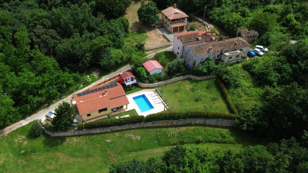 Üdvözöljük nyaralóházunkban, amely Kršan közelében, Vlašići kis, csendes falujában található, kilátással a természetre és az Učka-hegyre. Ideális oázis családi nyaraláshoz vagy baráti nyaraláshoz. Reméljük, élvezni fogja a csendet és a nyugalmat, miközben gyermekei a faházban, a csúszdákban és a hintákban gyönyörködnek. A ház 98 m2-es lakótérrel rendelkezik (előszoba, nappali, konyha, fürdőszoba, hálószoba egy 160 x 200-as franciaággyal és egy hálószoba egy 160 x 200-as franciaággyal és egy 160 x 200-as futonággyal), és egy 870 m2-es, bekerített kertben található, parkolási lehetőséggel a ház telkén. A házhoz kültéri, fűtött medence tartozik. A medence mérete 7x4 hüvelyk, mélysége pedig 140 cm. A medence vizét maximum 25 Celsius-fokra melegítik abban az időszakban, amikor fűtésre van szükség. A falu közelében található első nagyobb város Kršan, amely gazdag kulturális és történelmi örökséggel büszkélkedhet. A falu közelében (15 percre) található Labin városa, amely Rabac felett egy dombon fekszik. Labin a kulturális turizmust kereső vendégek és az antik tárgyak szerelmeseinek kedvelt úti cél, számos galériájáról, kiállításáról és szabadtéri rendezvényéről ismert. Rabac (25 percre) gyönyörű strandjaival, amelyeket Isztria egyetlen legszebb strandjainak tartanak kristálytiszta tengerrel, valamint az Isztriai-félsziget városaival, amelyeket szintén érdemes meglátogatni: Pula, Rovinj, Umag, Poreč szintén 1-1,30 percre találhatók, Cres és Lošinj szigetei, a Pula közelében található Brioni Nemzeti Park és Rijeka városa, Horvátország harmadik legnagyobb városa pedig 1 órányira található a falutól. Útban Rijeka felé a tengerparton, ahonnan gyönyörű kilátás nyílik a Kvarner-öbölre és a szigetekre, érdemes ellátogatni Abbáziába is - a horvát turizmus leghosszabb hagyományával rendelkező turisztikai célpontba
