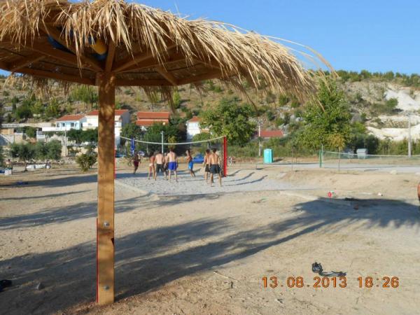 A strandon labdarúgás, tenisz, bagminton, gyermekek számára szolgáló hinták, bowlingozási lehetőség biztosított. Maga a strand enyhén bejut a tengerbe (gyermekek és alacsonyabb szintű úszók számára), és kavicsos. A kőpartnak egy olyan része is van, ahol kevesebb és mélyebb a búvárkodás, és ahol lépcsők vannak a tenger felől. A strandnak természetesen egy sziklás partja van, ahol úszni és napozni is lehet. Kávézó közvetlenül a tengerparton. 1000 méterre van Zrmanja torkolata, ahol rafting lehetséges. A gyönyörű Cerovec-barlangok (17 km) cseppkövekkel. Látogatás Zadarban, számos múzeummal és régiséggel, tengeri szervekkel (mint ritka ritka a világon) és üdvözlettel a nap felé (30 km). A Plitvicei-tavak körülbelül 70 km-re találhatók. Paklenica Nemzeti Park, Krka-vízesés. .