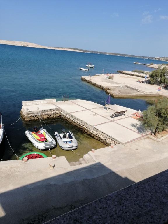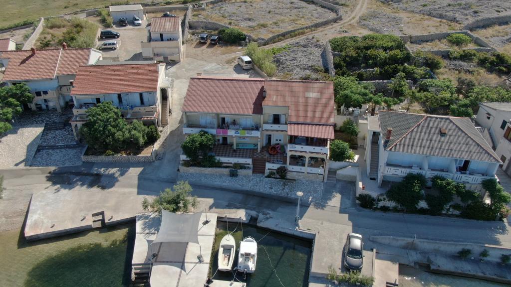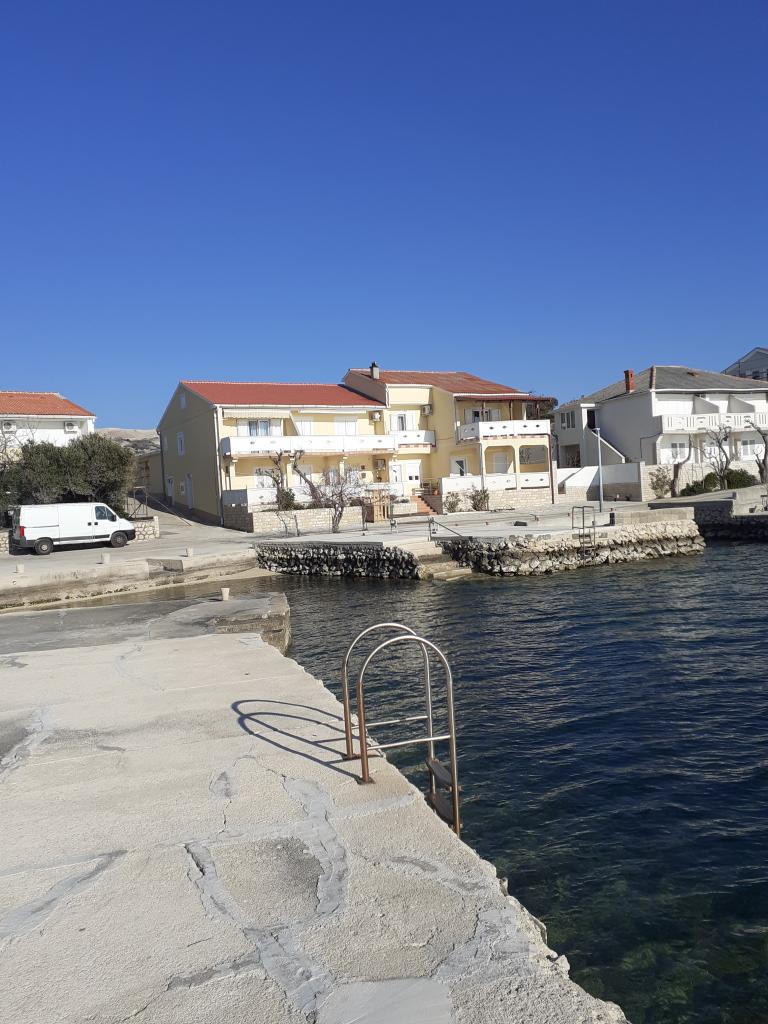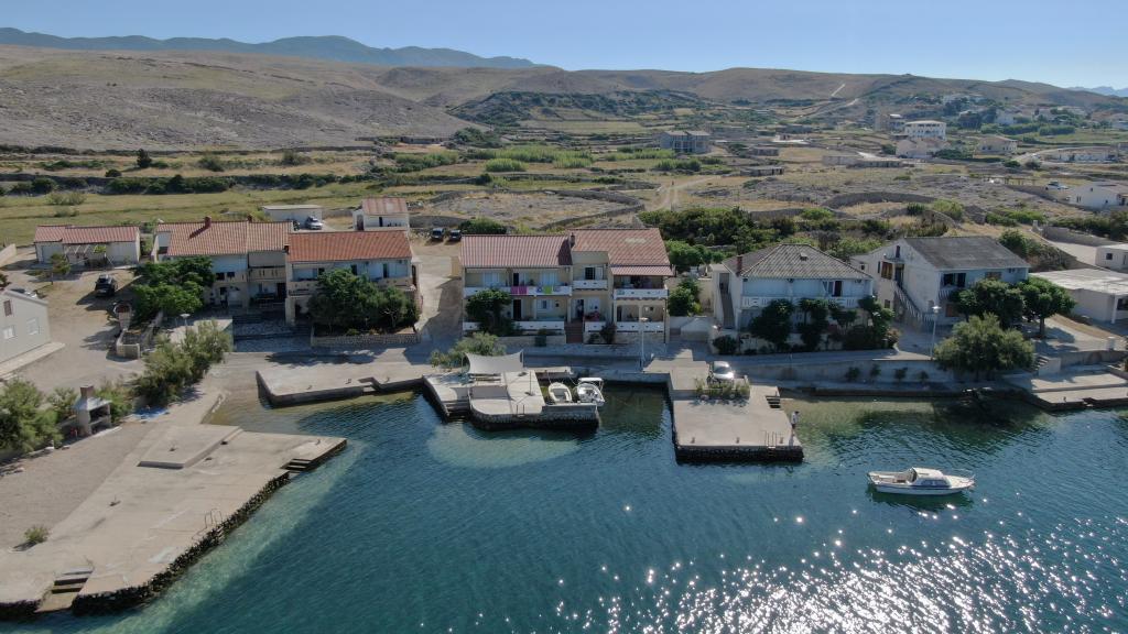 A Katica apartmanok a tenger melletti első sorban találhatók, csendes környéken, ideális családi turizmushoz. A faluban bolt, pékség és számos étterem található, Novalja városától 6 km-re található. Az apartmanokhoz nagy terasz tartozik, ahonnan csodálatos kilátás nyílik a Pag-öbölre és a naplementére.
