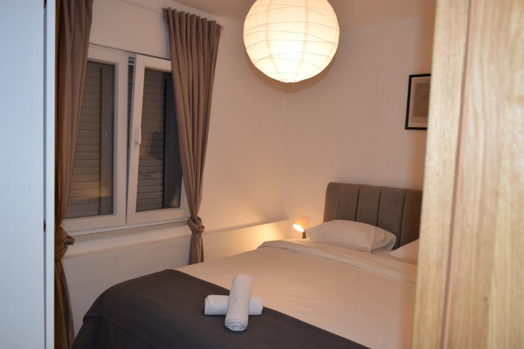 Az újonnan felújított apartman Krneza kisvárosában található. A BEE apartmanban két szoba, egy WC, egy konyha és egy nappali pótággyal. Az apartman udvarán medence, nyugágyak és kerti bútorok találhatók. 1,5 km-re van a homokos strandtól.