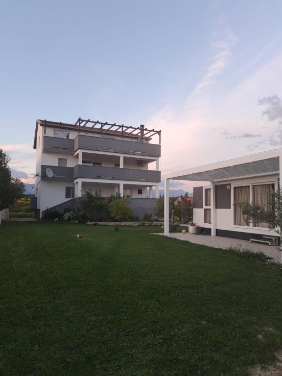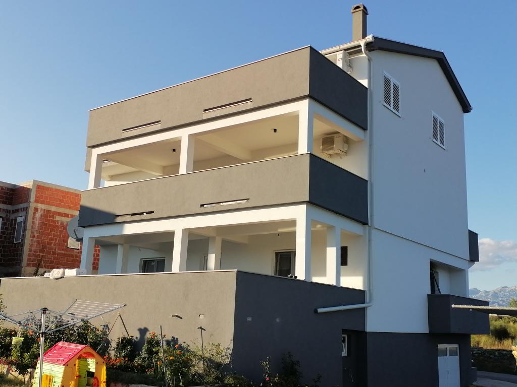 Az apartmanok egy családi házban találhatók. Mindkettő 100 négyzetméteres és egy 30 négyzetméteres terasszal rendelkezik. Az 1. apartman a ház 1. emeletén található. Két szobával és két pótággyal rendelkezik. Két fürdőszobával rendelkezik. A 2. apartman a ház második emeletén található. 3 szobával és egy pótággyal rendelkezik. 2 fürdőszobával rendelkezik. Az udvar tágas és alkalmas játékra (hinták, csúszda, kapuk). Árnyékos parkolóhely biztosított. A strand homokos, a tenger sekély és meleg, ideális kisgyermekes családok számára.