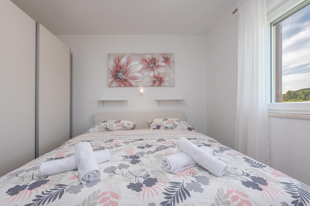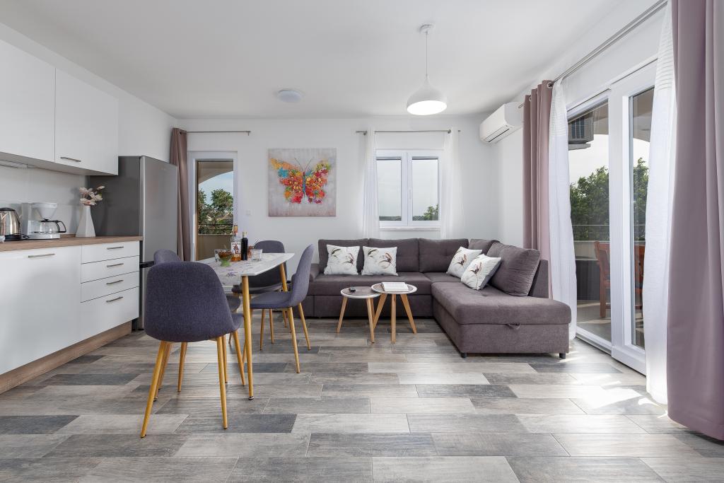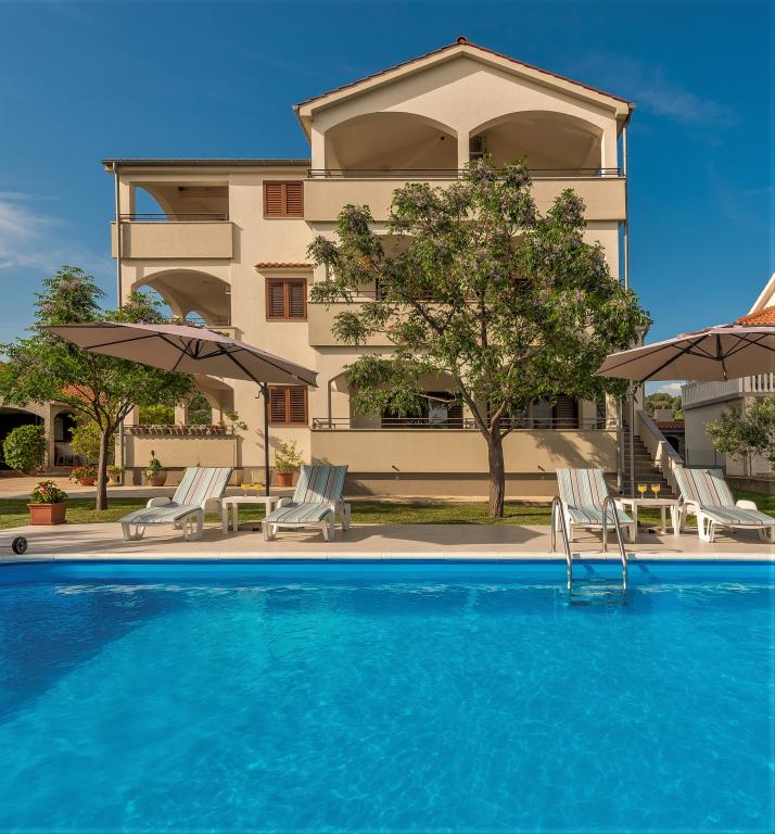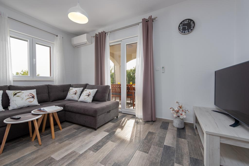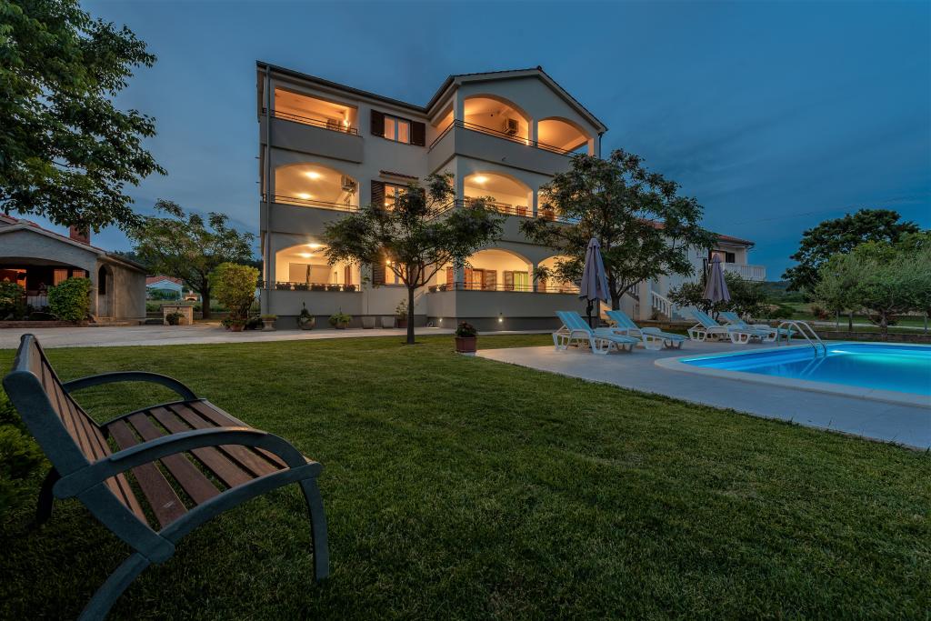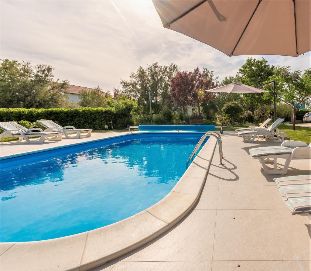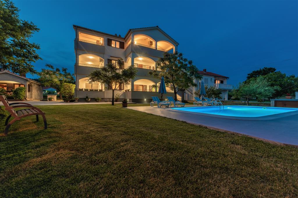 Az apartmanok Ljubač csendes városában találhatók, 16 km-re Zadar városától. 150 méterre vannak az első strandtól. Más strandok is a közelben találhatók. Az apartman 2+2, azaz 4 személyes - egy franciaággyal plusz egy pótággyal - egy kanapéval. Szükség esetén kiságy is rendelkezésre áll. A lakás alapterülete 46 m2 plusz egy nagy terasz. Az apartmanok teljesen felszereltek: klíma, SAT TV, WIFI, mosogatógép, mosógép, kenyérpirító, kávéfőző, mikrohullámú sütő, stb.. Szúnyogvédelem minden ablakon. Előtte egy 8x4m-es medence található, 1,5m mélységgel. Parkolóhely áll rendelkezésre. Idegenforgalmi adót az ár tartalmazza!