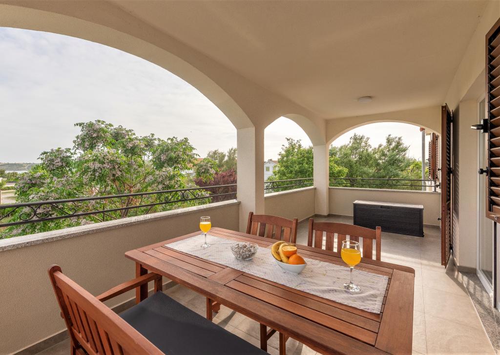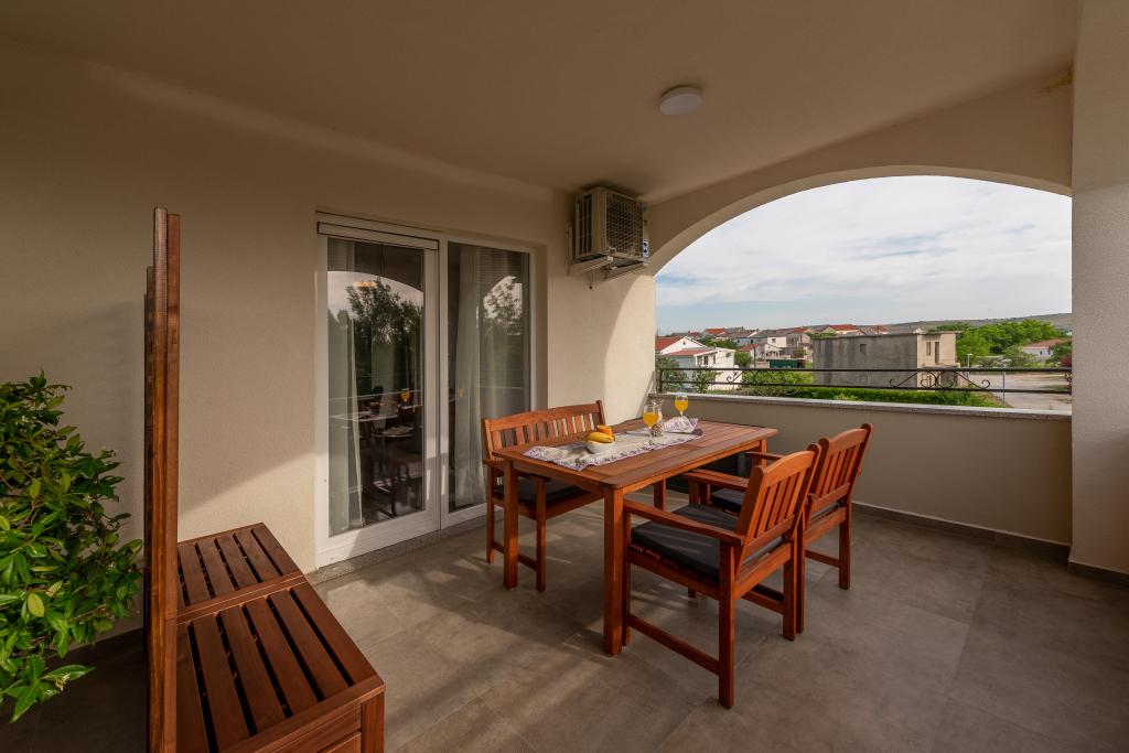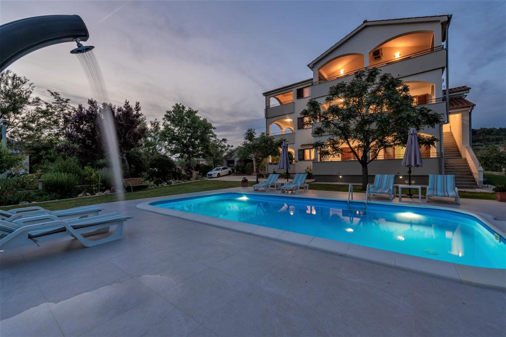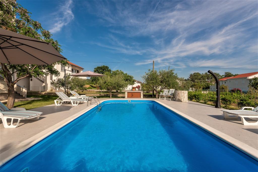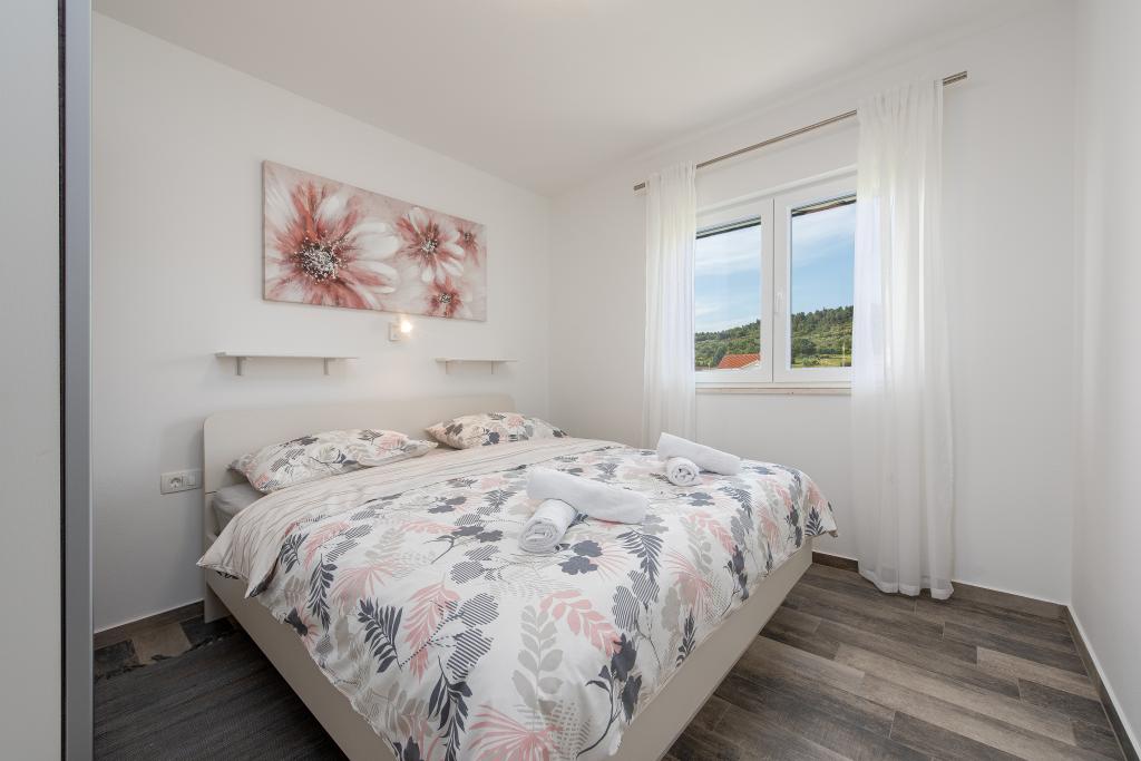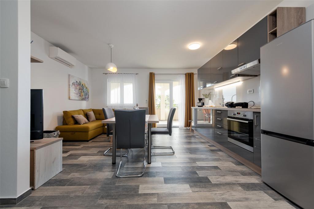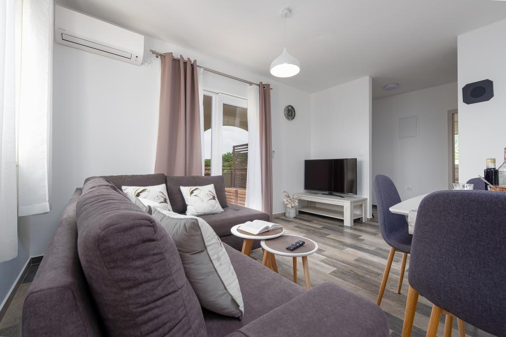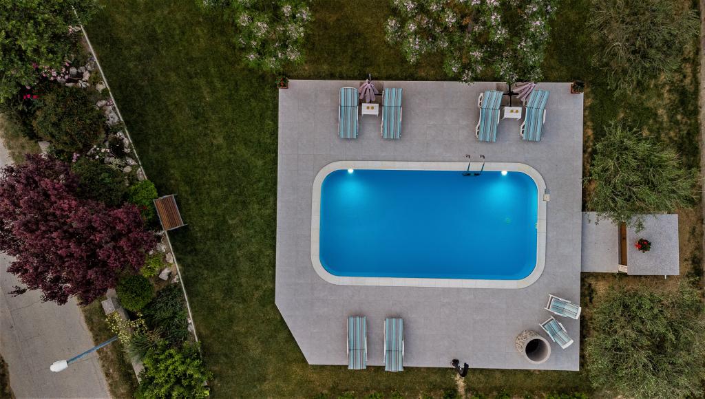 Az apartmanok Ljubač csendes városában találhatók, 16 km-re Zadar városától. 150 méterre vannak az első strandtól. Más strandok is a közelben találhatók. Az apartman 2+2, azaz 4 személyes - egy franciaággyal plusz egy pótággyal - egy kanapéval. Szükség esetén kiságy is rendelkezésre áll. A lakás alapterülete 46 m2 plusz egy nagy terasz. Az apartmanok teljesen felszereltek: klíma, SAT TV, WIFI, mosogatógép, mosógép, kenyérpirító, kávéfőző, mikrohullámú sütő, stb.. Szúnyogvédelem minden ablakon. Előtte egy 8x4m-es medence található, 1,5m mélységgel. Parkolóhely áll rendelkezésre. Idegenforgalmi adót az ár tartalmazza!