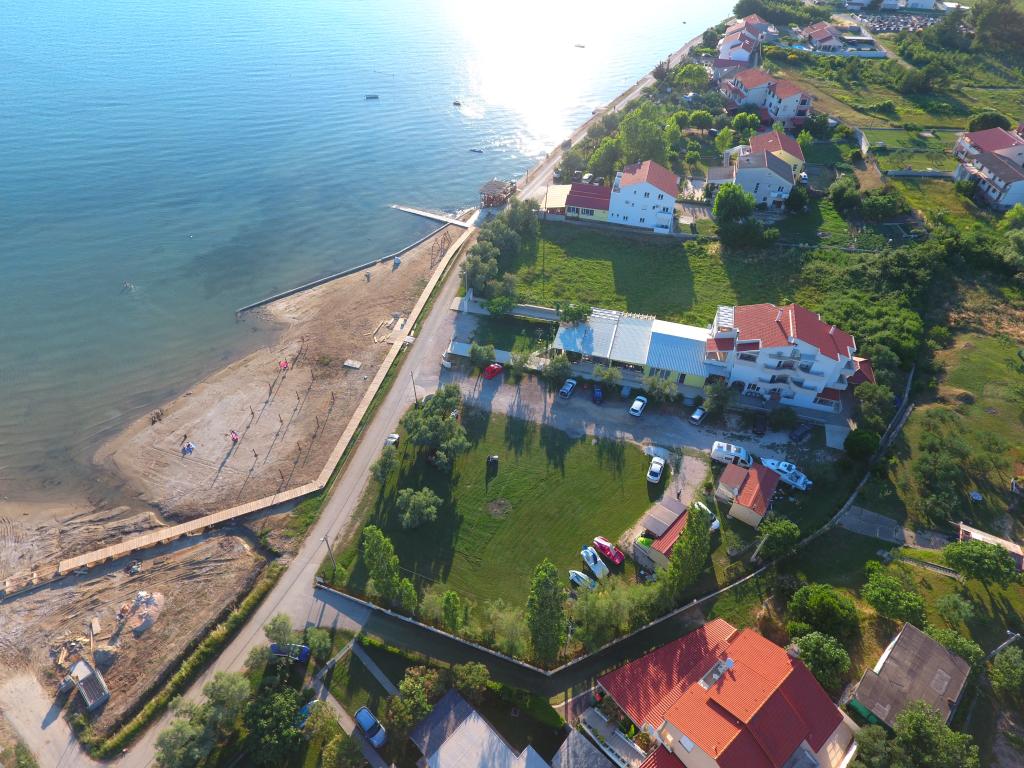 Újonnan berendezett apartmanok az első sorban a tengerhez, egy gyönyörű homokos tengerparton. A létesítményhez tartozik egy nagy udvar saját parkolókkal és gyereklétesítményekkel (hinták, körhinta...) Az épületen belül egy kávézó is található gyorsétteremmel. 5 napnál rövidebb tartózkodás esetén az ár 30%-kal magasabb.
