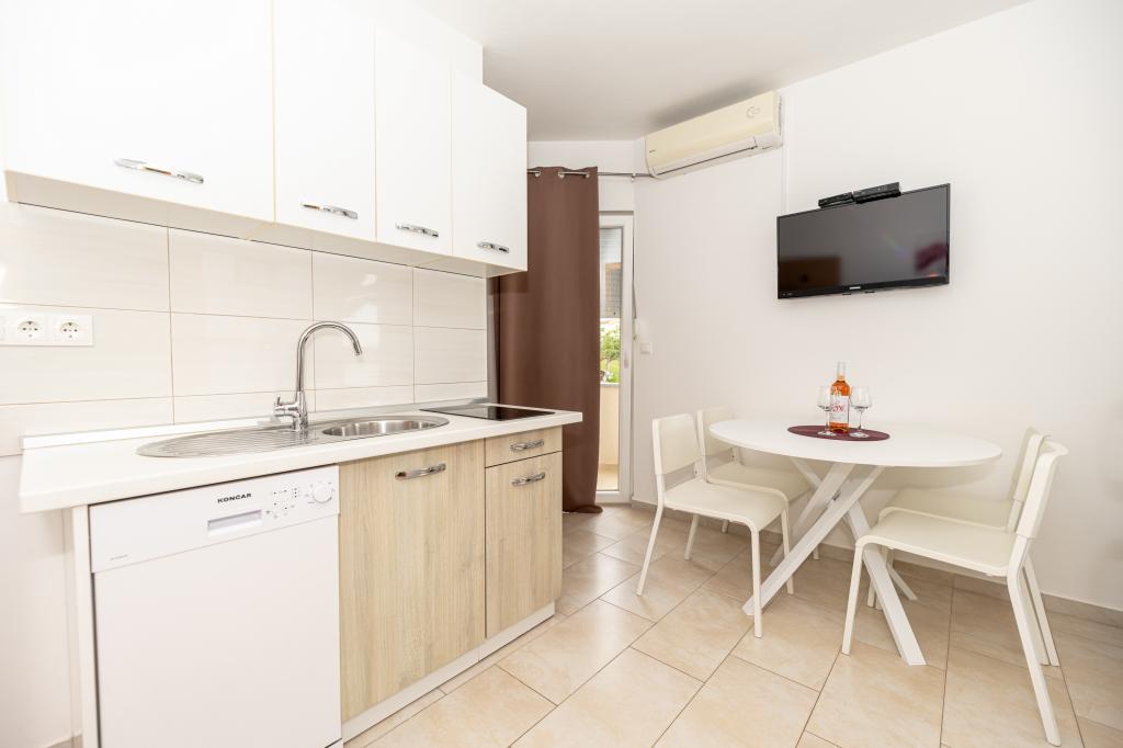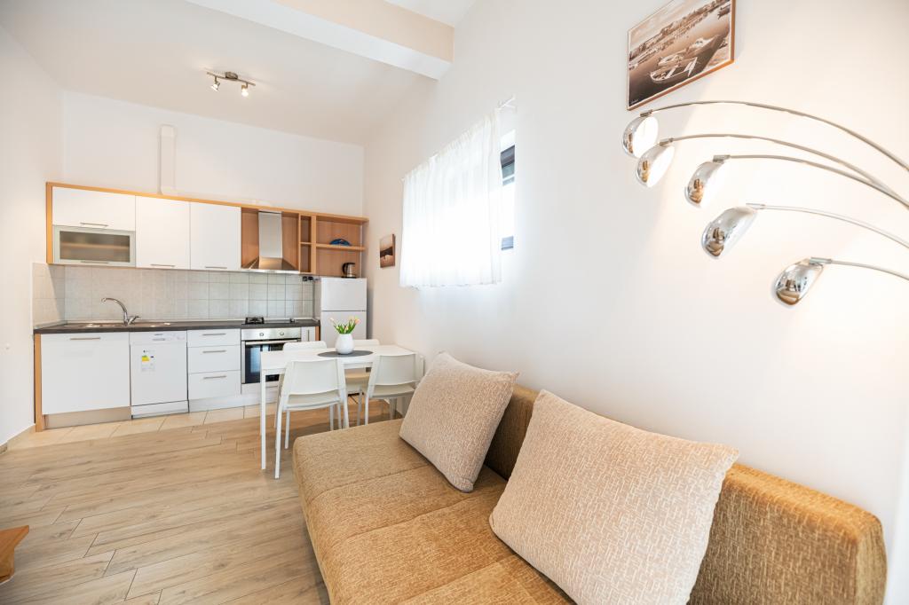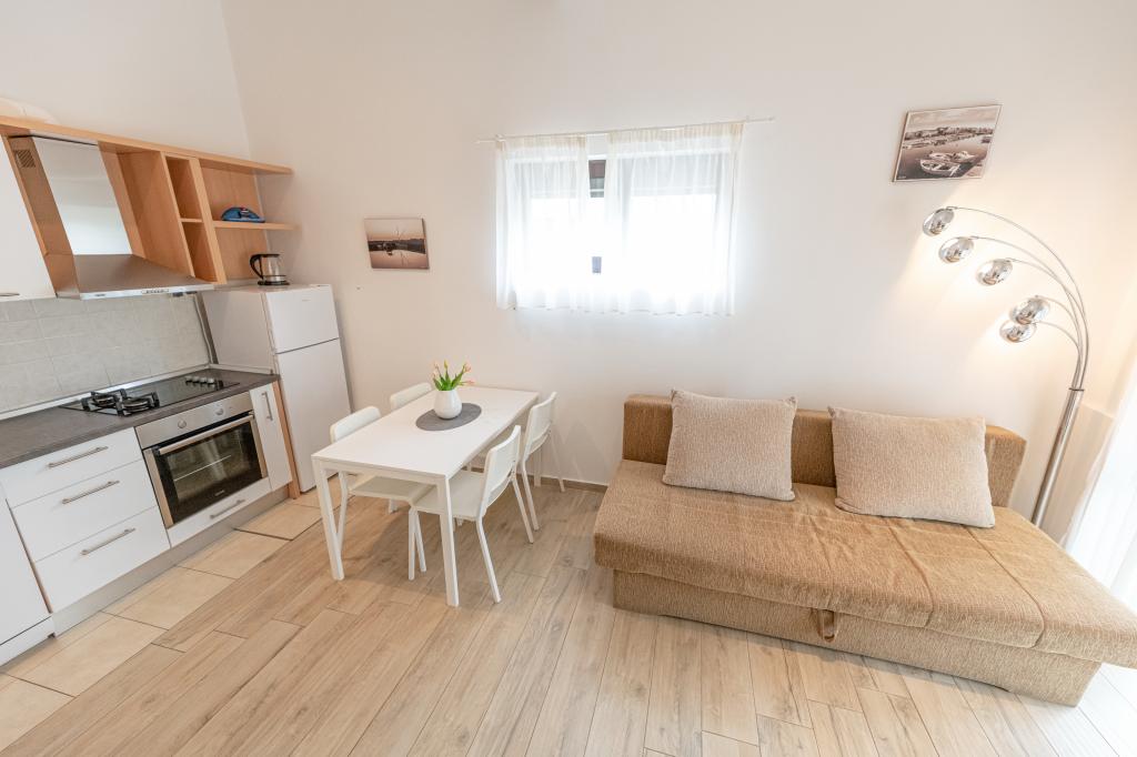 A lakás jól felszerelt, nagyon tiszta, gondozott környezet. A tulajdonos nagyon barátságos és segítőkész. Az apartmanok részét képező fogadóban kiváló, nagyon finom pizzák. A strand közvetlenül az apartmanok előtt, nagyon alkalmas kisgyermekek számára. Nagyon békés falu egy nyugodt, nyugodt nyaraláshoz. Kiváló, üdv.