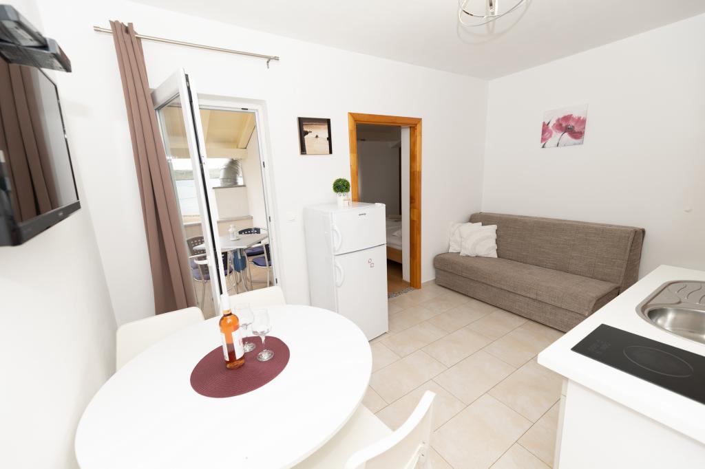 Ez egy szép és tiszta lakás, soha nem bérelt. Azonnal érkezéskor kapunk egy italt dobrodošlice.Vlasnici nagyon barátságos, megközelíthető és nem tolakodó. Mi volt az összes elérhető a grill, külső asztal padokkal, székekkel és egy nagy parkoló. Erősen ajánlott mindenkinek, különösen a gyermekes családok, mert igaza előtt egy nagy, homokos strand.