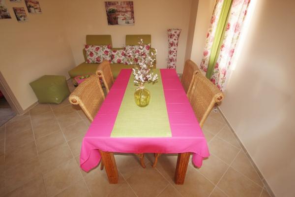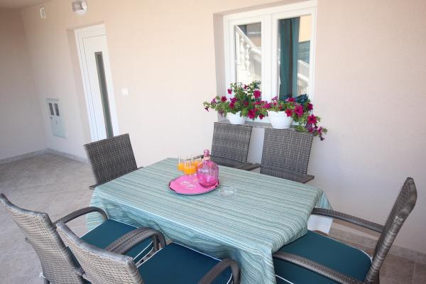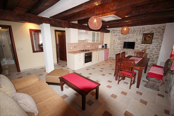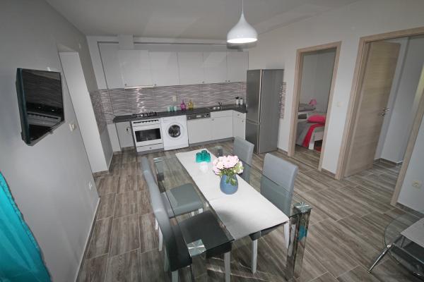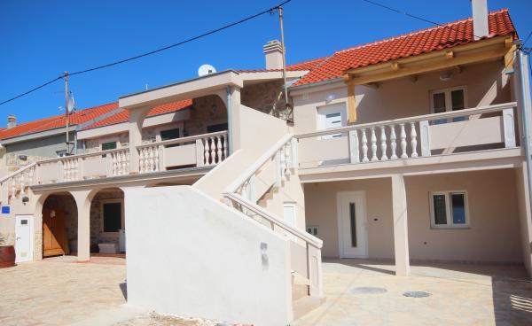 Frissen felújított apartmanok klímával és internettel, egy dalmát kőházban, a homokos strand közelében. Földszint – A1, 80nm-es, 3 hálószoba franciaággyal, nagy nappali konyhával és étkezővel, 2 személyes kanapé, 2 fürdőszoba (twc), fedett terasz 30 nm. 1. emelet – A2, 80nm-es, 3 hálószoba franciaággyal, nagy nappali konyhával és étkezővel, 2 személyes kanapé, 2 fürdőszoba (twc), 30 nm-es fedett terasz részleges kilátással a tengerre. Az új házrészben a 2017-es szezonra több apartmant kínálunk: Földszint B1 / emelet B2, 54nm-es, 2 hálószoba franciaággyal, nappali konyhával és étkezővel, 2 személyes kanapé, 2 fürdőszoba, terasz. Felszereltség: SAT-TV, klíma, internet, mosógép, konyha tűzhellyel, sütővel, nagy hűtő fagyasztóval, mosogatógép, mikrohullámú sütő, kávéfőző. A vendégek a ház előtt őrzött parkolót és grillezőt is használhatnak.