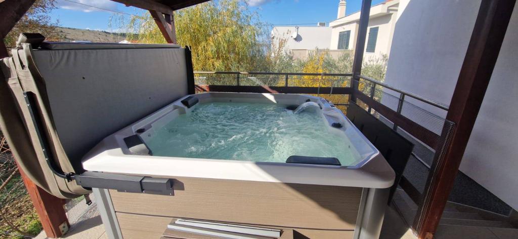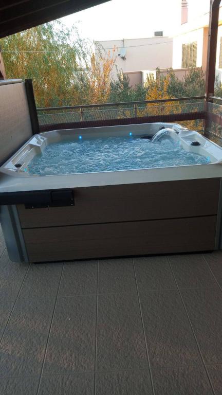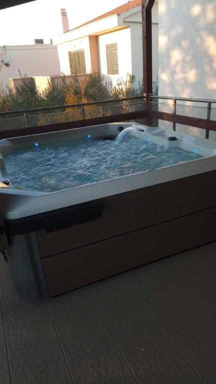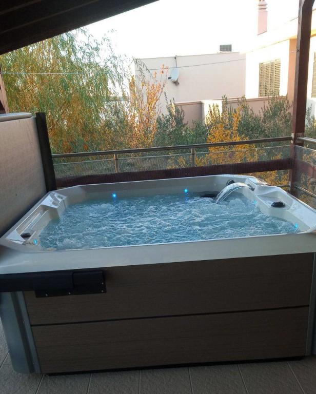 Lakossági adót az az ár tartalmazza. Foglalási visszaigazolás dokumentum foglalás eseténAz egyik fő ok, amiért érdemes apartmanunkat választani, a luxus jakuzzi, amely tökéletes hely a kikapcsolódásra a tengerparton eltöltött napsütéses napok vagy a környező természeti szépségek felfedezése után. A privát wellness-sarok élvezete lehetővé teszi, hogy teljesen felépüljön és újraéledjen, akár a hullámok zajára, akár a csillagos égbolt alatt pihen. A jakuzzi a magánélet és a kényelem egyedülálló élményét nyújtja, és még különlegesebbé teszi az üdülést. Akár egyedül, akár párjával pihen, vagy családjával és barátaival pihen, jakuzzink ideális lehetőséget kínál felejthetetlen pillanatok megteremtésére. Miért ne tenné bele nyaralásába a teljes kikapcsolódást a meleg vízben, miközben élvezi apartmanunk békés környezetét? Ez a plusz luxus ideális választássá teszi apartmanunkat mindazok számára, akik a kényelmet, a magánéletet és a wellness élményt szeretnék kombinálni úticéljukon. A teljes kényelem és kényelem érdekében a bérleti díj tartalmazza az üdvözlő italt, a mosó- és mosogatógép használatát, így még kényelmesebbé és pihentetőbbé válik az itt-tartózkodás. Ezen kívül a csónakázás szerelmeseinek kínálunk kikötést a kikötőben, amely mindössze 50 méterre található az apartmantól, ideális az Ön hajójához. Ez a kiegészítés még élvezetesebbé teszi az üdülést, lehetővé téve, hogy teljes mértékben élvezze az Adriai-t